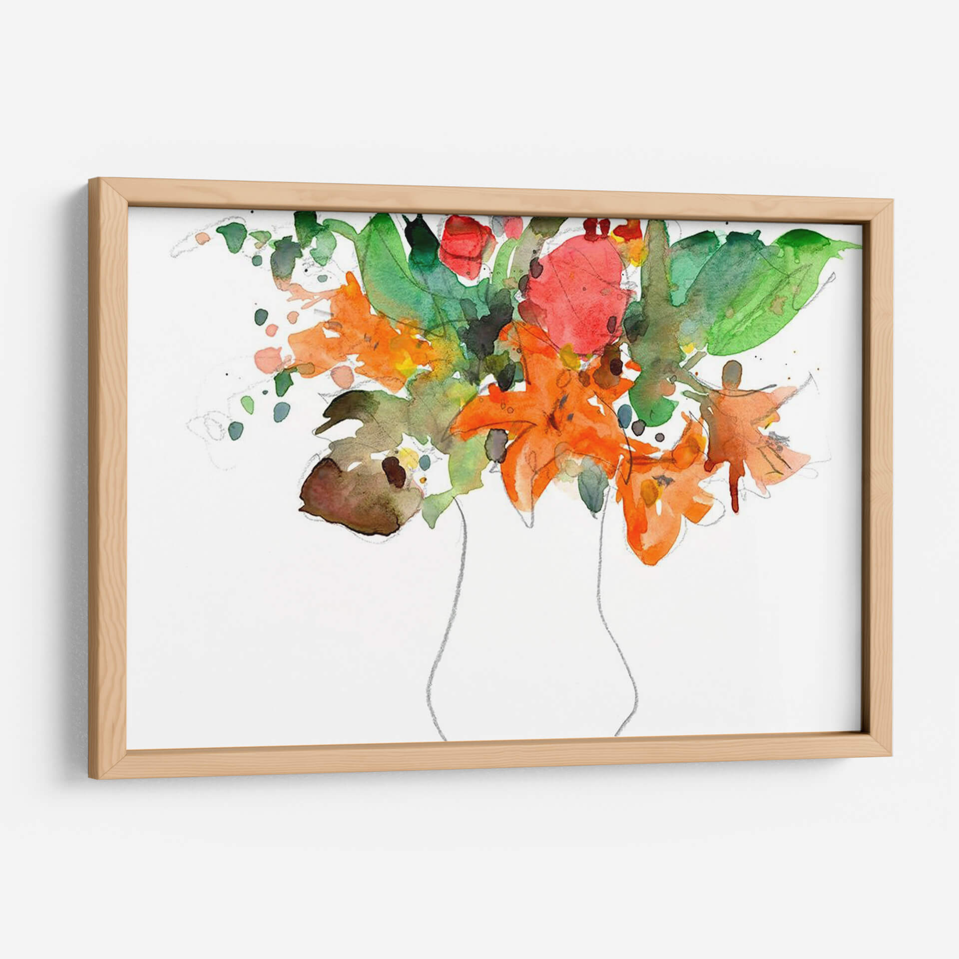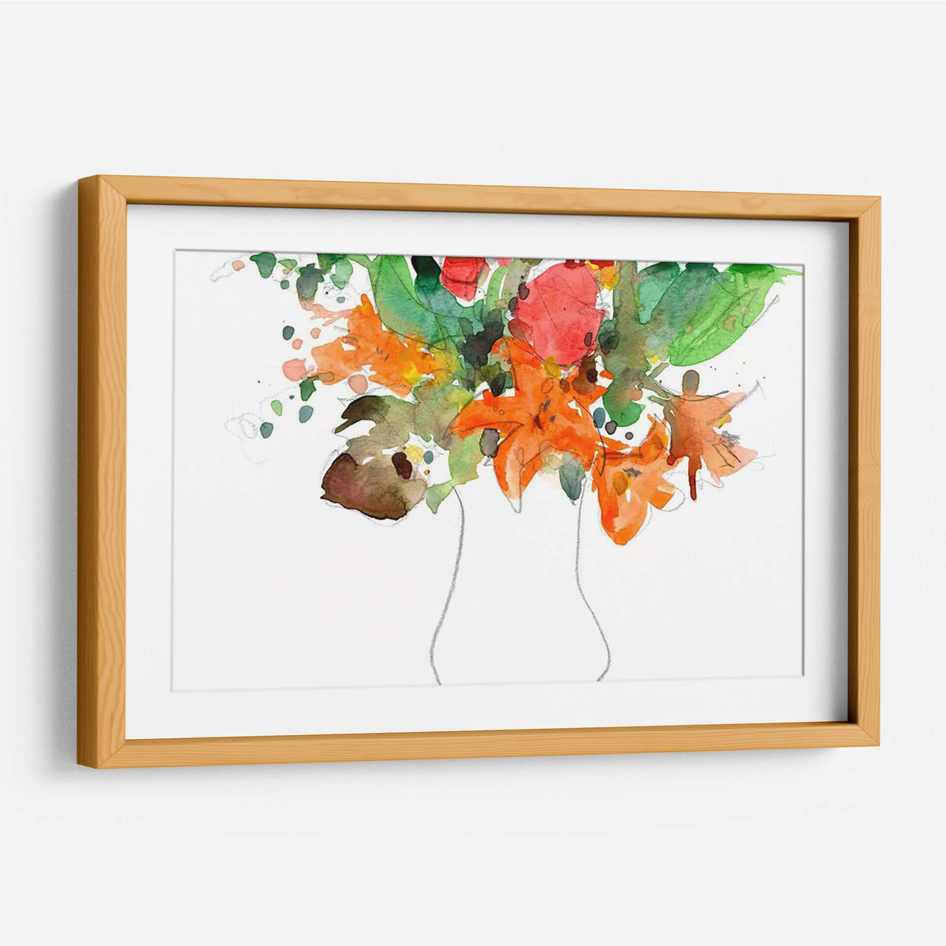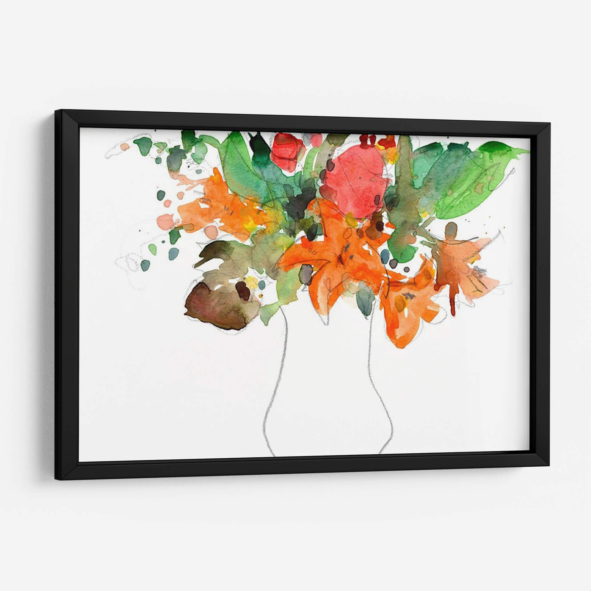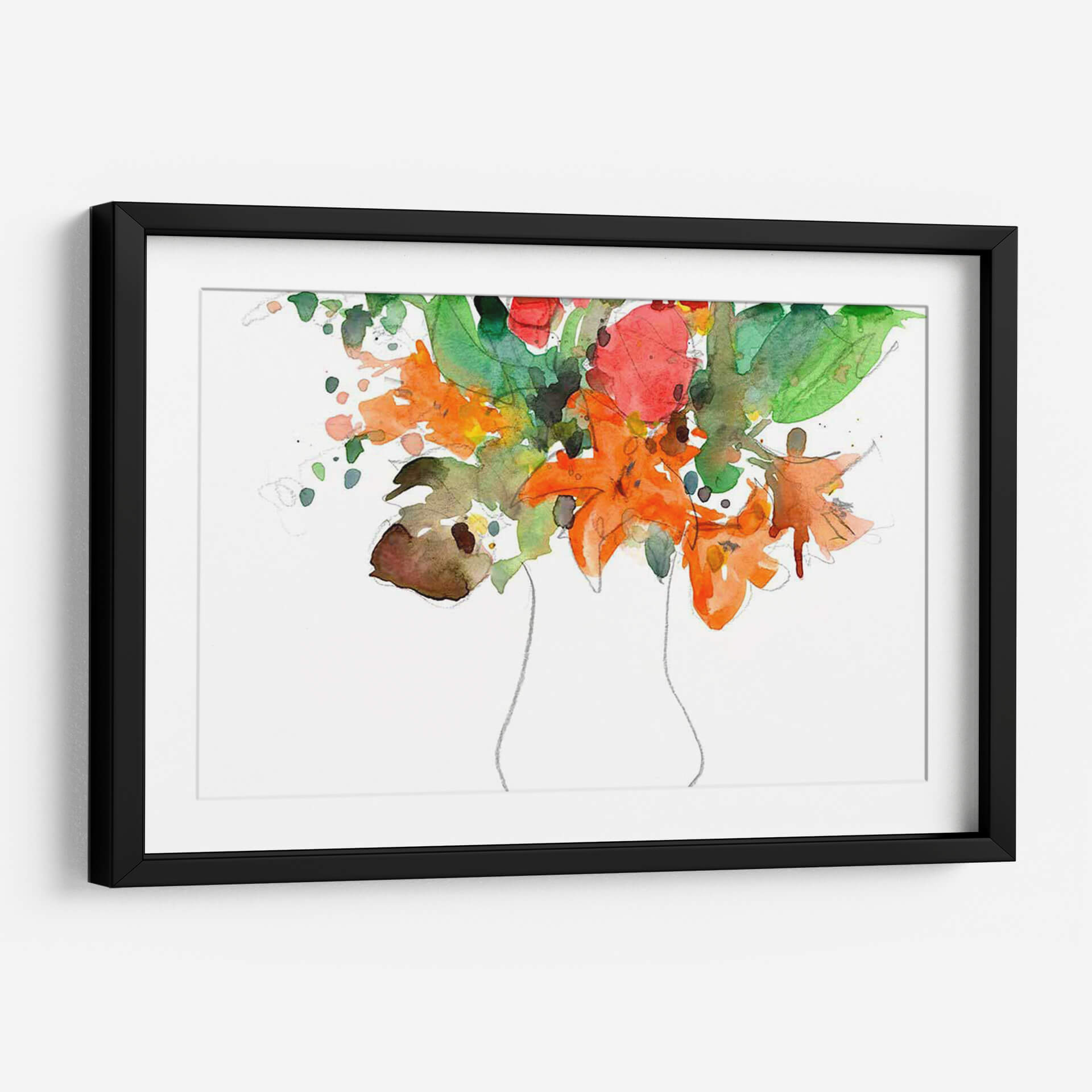 Transforma tu espacio con el vibrante "Ramo Expresivo I" de Samuel Dixon, una obra de arte que captura la esencia de la naturaleza en un estilo acuarela contemporáneo. Esta pieza se caracteriza por su audaz uso del color, con vibrantes naranjas, rojos intensos y verdes exuberantes que se fusionan en una composición dinámica y fluida. Las pinceladas sueltas y expresivas evocan una sensación de movimiento y vida, como si las flores estuvieran capturadas en el instante de su máximo esplendor. La delicada línea de boceto que define el jarrón añade un toque de simplicidad y modernidad al conjunto, contrastando con la riqueza cromática del ramo. "Ramo Expresivo I" es perfecto para añadir un toque de alegría y sofisticación a cualquier habitación, ya sea una sala de estar moderna, un comedor elegante o un estudio inspirador. Su estilo versátil se adapta a diversas decoraciones, desde la bohemia hasta la contemporánea, invitando a la contemplación y al disfrute de la belleza floral. Descubre cómo esta acuarela puede infundir energía y color en tu hogar, convirtiéndose en un punto focal que cautivará a tus invitados y reflejará tu aprecio por el arte vibrante y lleno de vida.