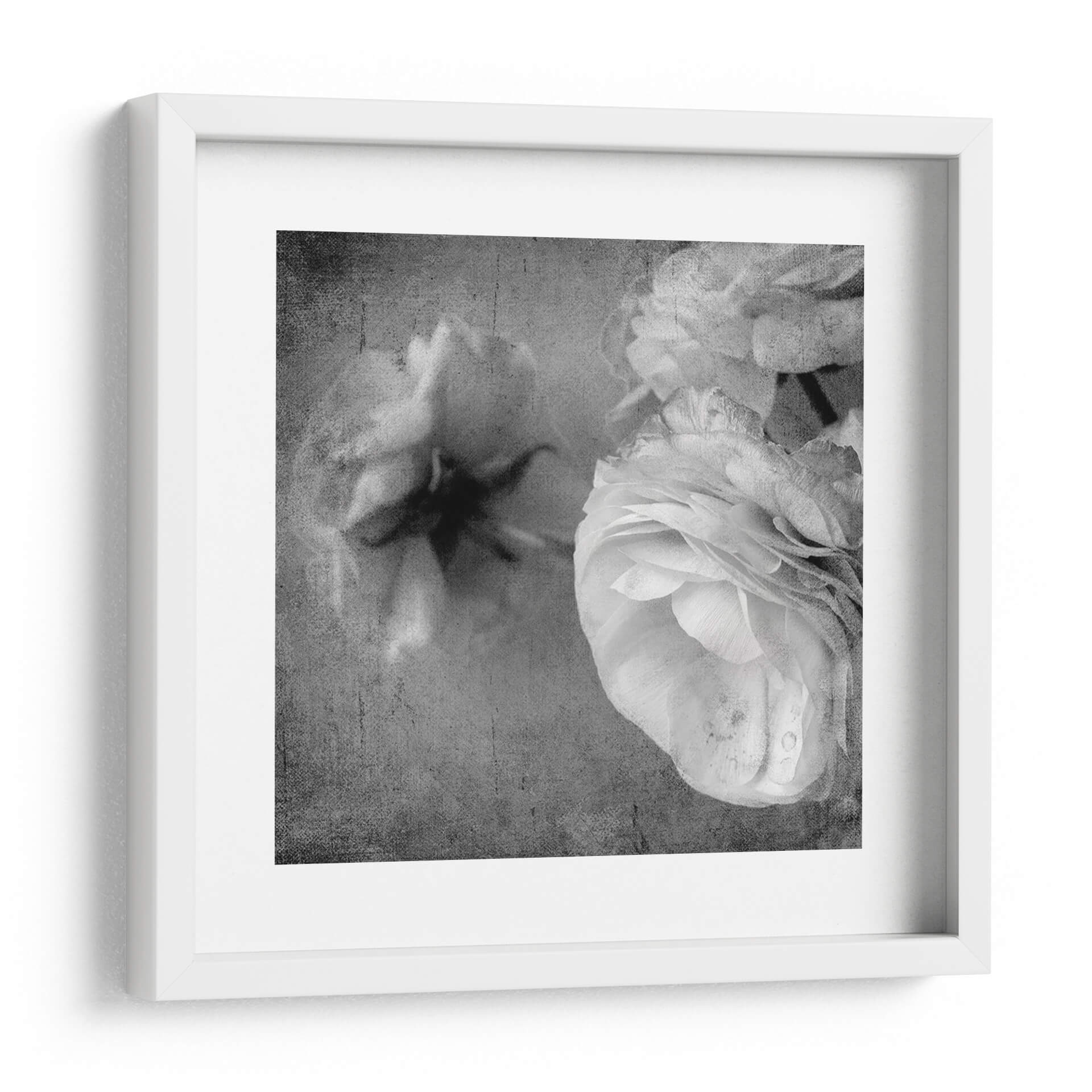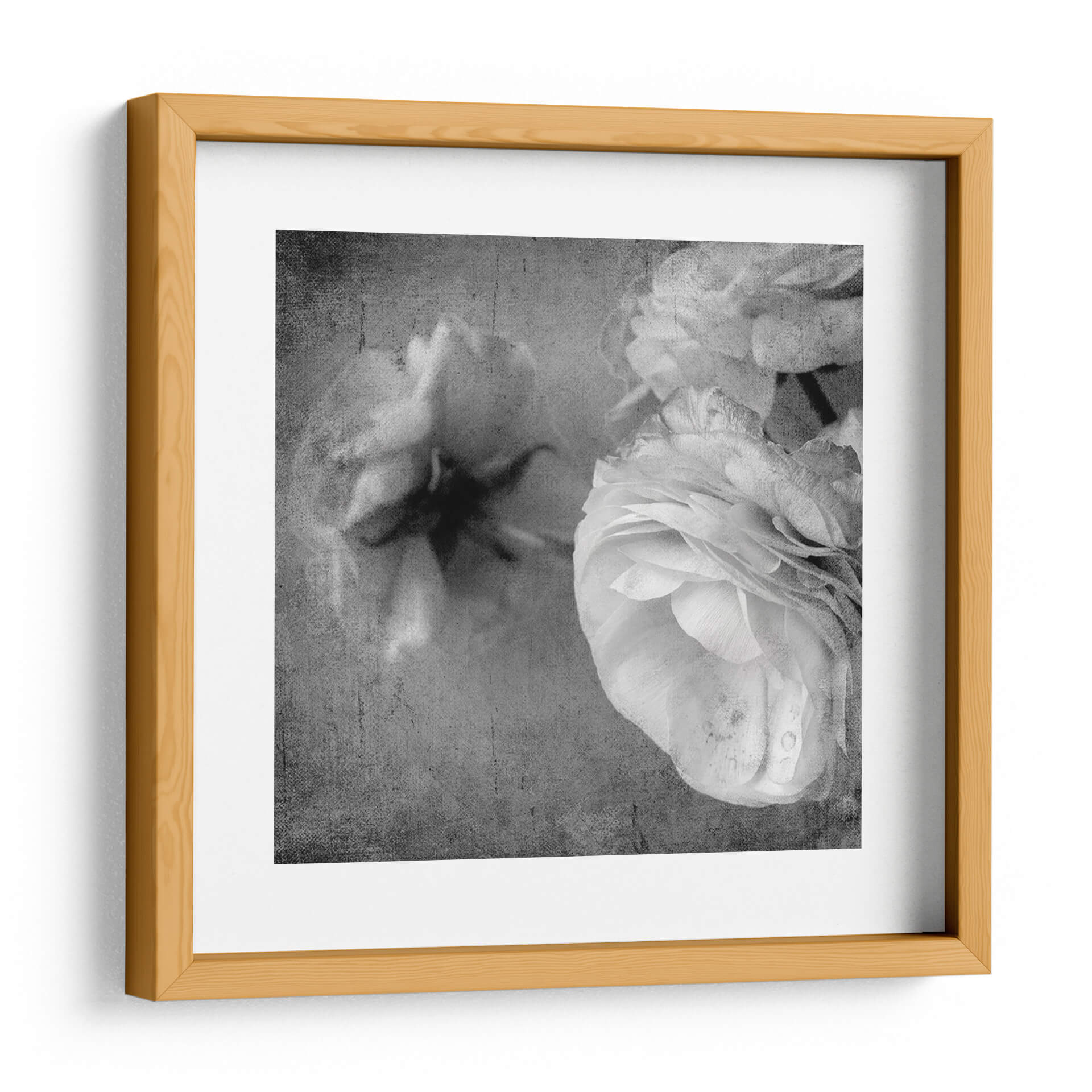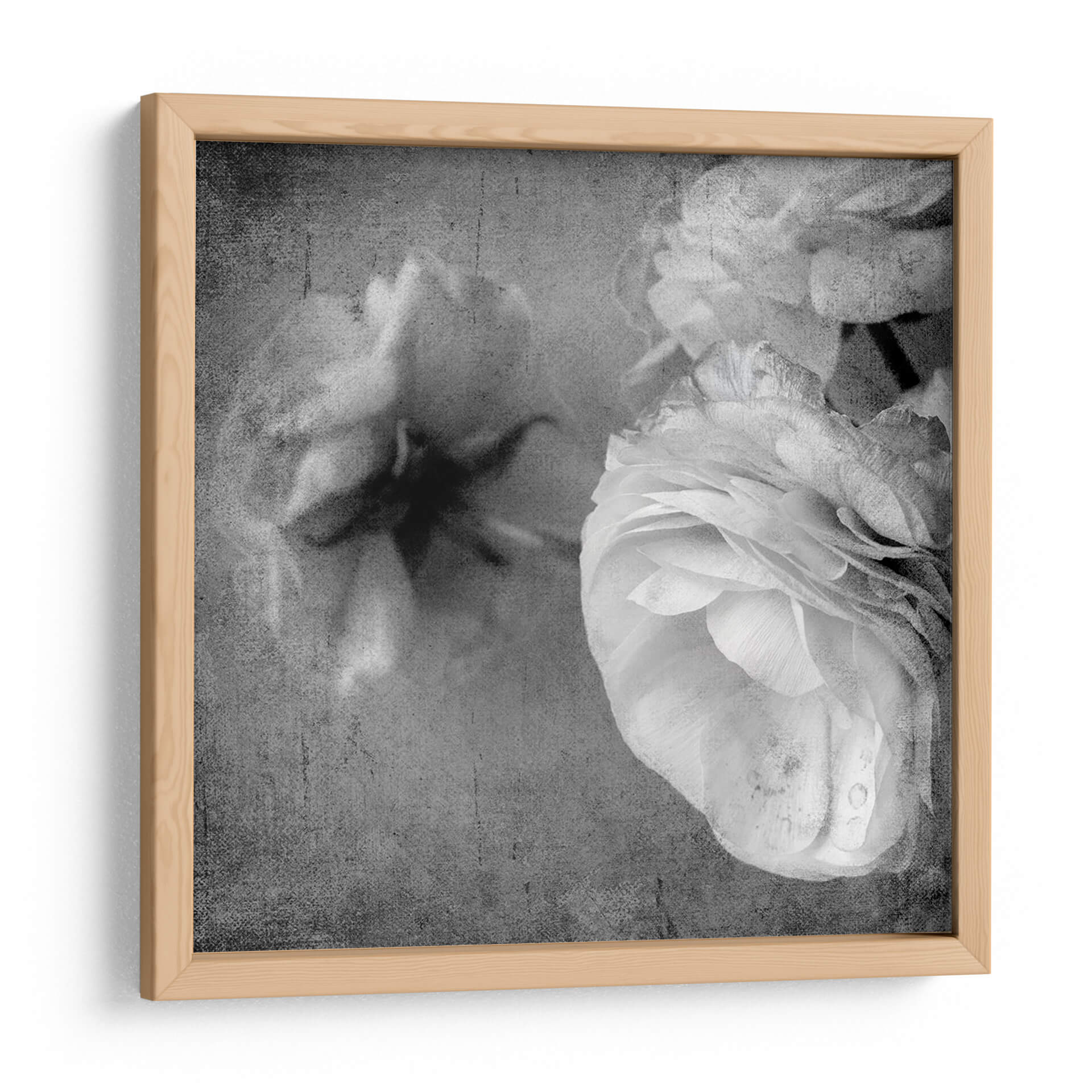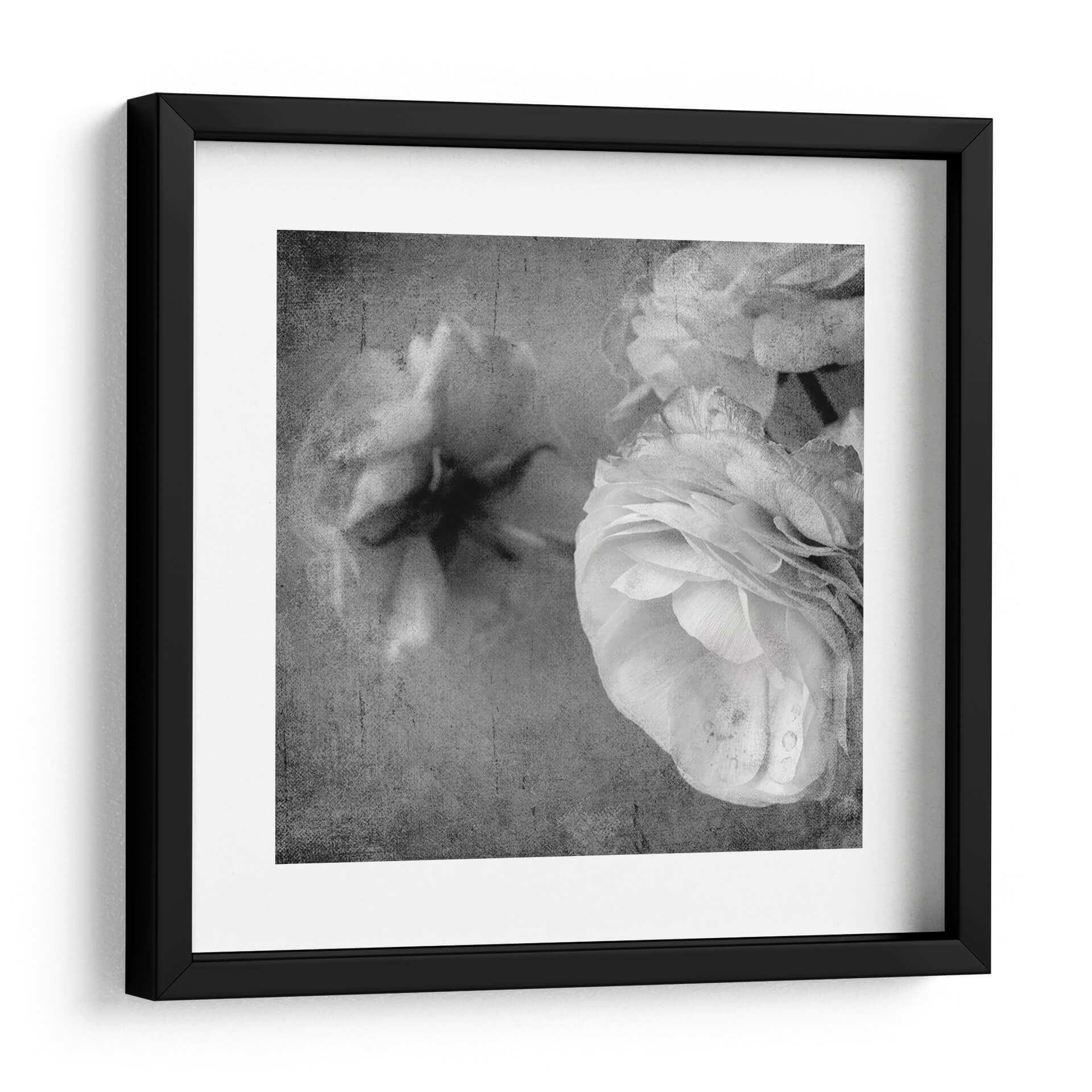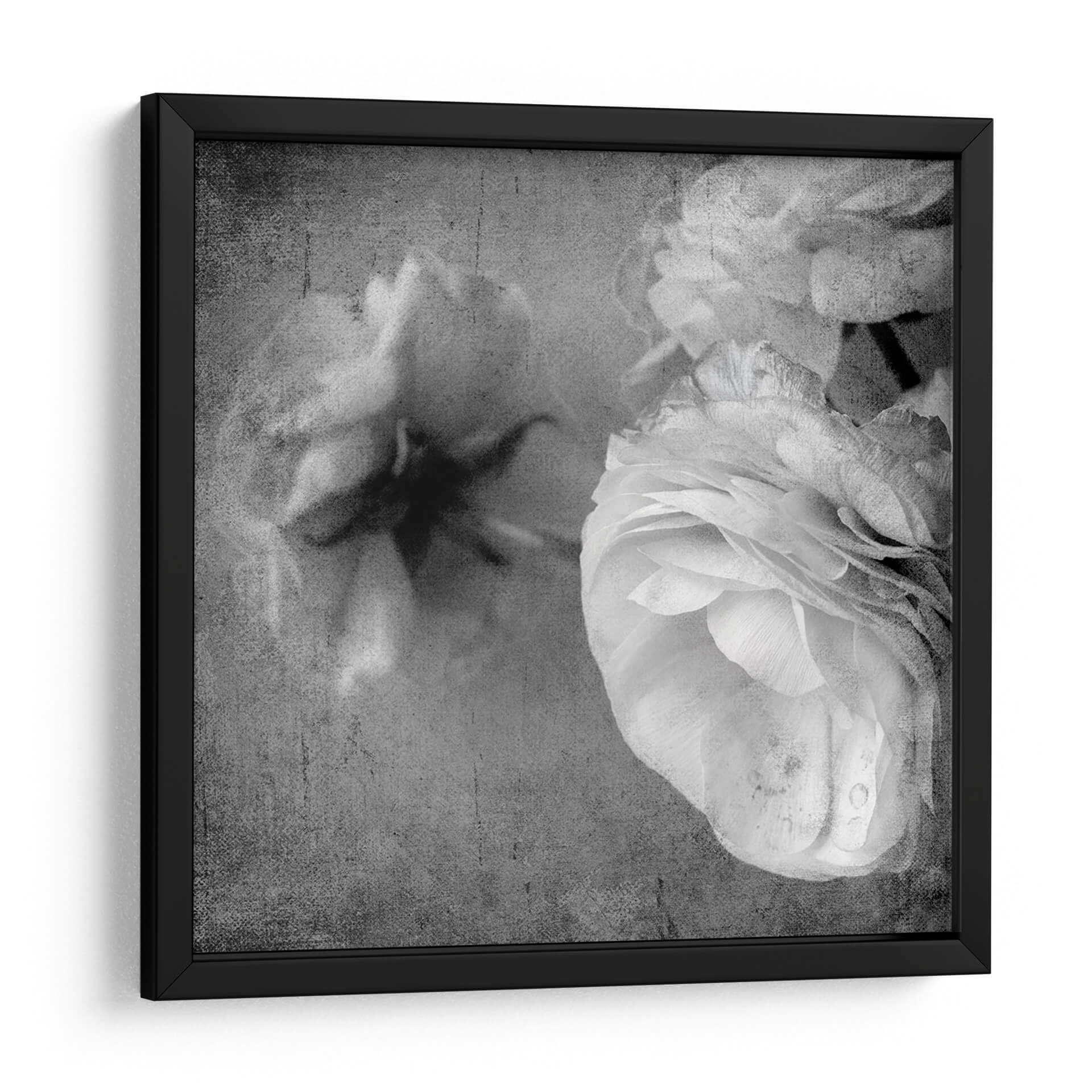 Sumérgete en la delicadeza y el misterio de "Ranunculus Oscuro Iii", una obra de arte contemporáneo de Judy Stalus que captura la esencia de las flores con una sensibilidad única. Este cuadro decorativo en blanco y negro presenta un primer plano íntimo de ranúnculos, con pétalos suaves y texturizados que se despliegan en una composición elegante y etérea. La paleta monocromática, acentuada por un sutil grano y texturas reminiscentes de un lienzo antiguo, aporta una profundidad visual y un aire de nostalgia, creando una atmósfera de calma y contemplación. La suave iluminación resalta los detalles sutiles de las flores, invitando a la reflexión y a la apreciación de la belleza efímera. "Ranunculus Oscuro Iii" es una pieza versátil, perfecta para añadir un toque de sofisticación atemporal a cualquier espacio. Su estilo minimalista y su temática floral lo hacen ideal para dormitorios serenos, salas de estar elegantes o incluso como un acento contemplativo en una oficina moderna. Este cuadro decorativo es más que una simple imagen; es una invitación a pausar y admirar la delicada danza de las formas y las sombras, un testimonio del arte que trasciende el tiempo y embellece tu hogar con una elegancia serena y profunda.