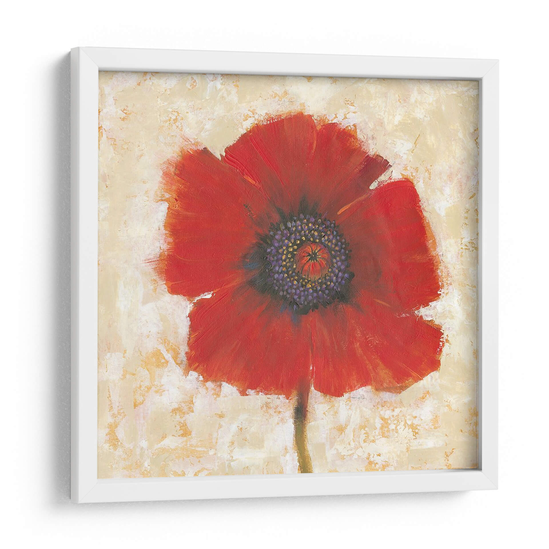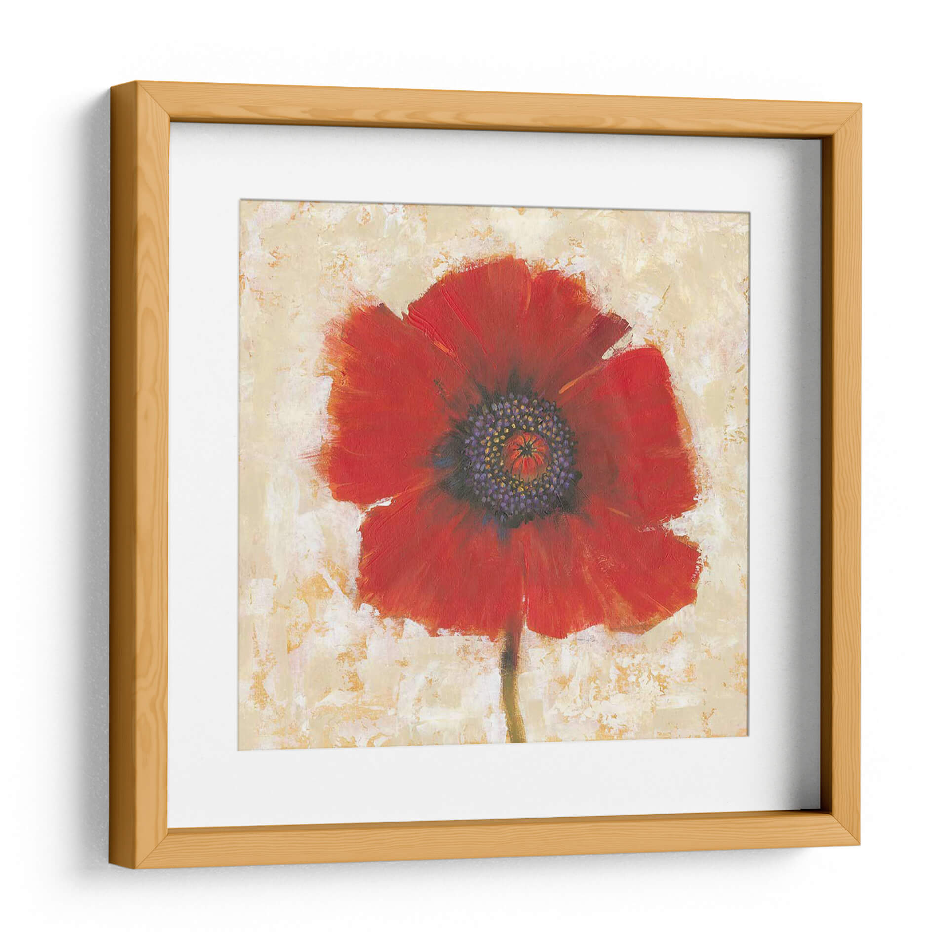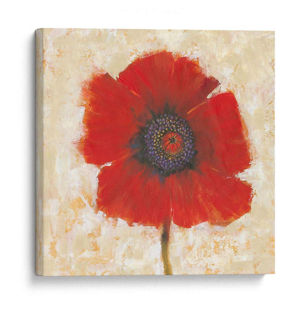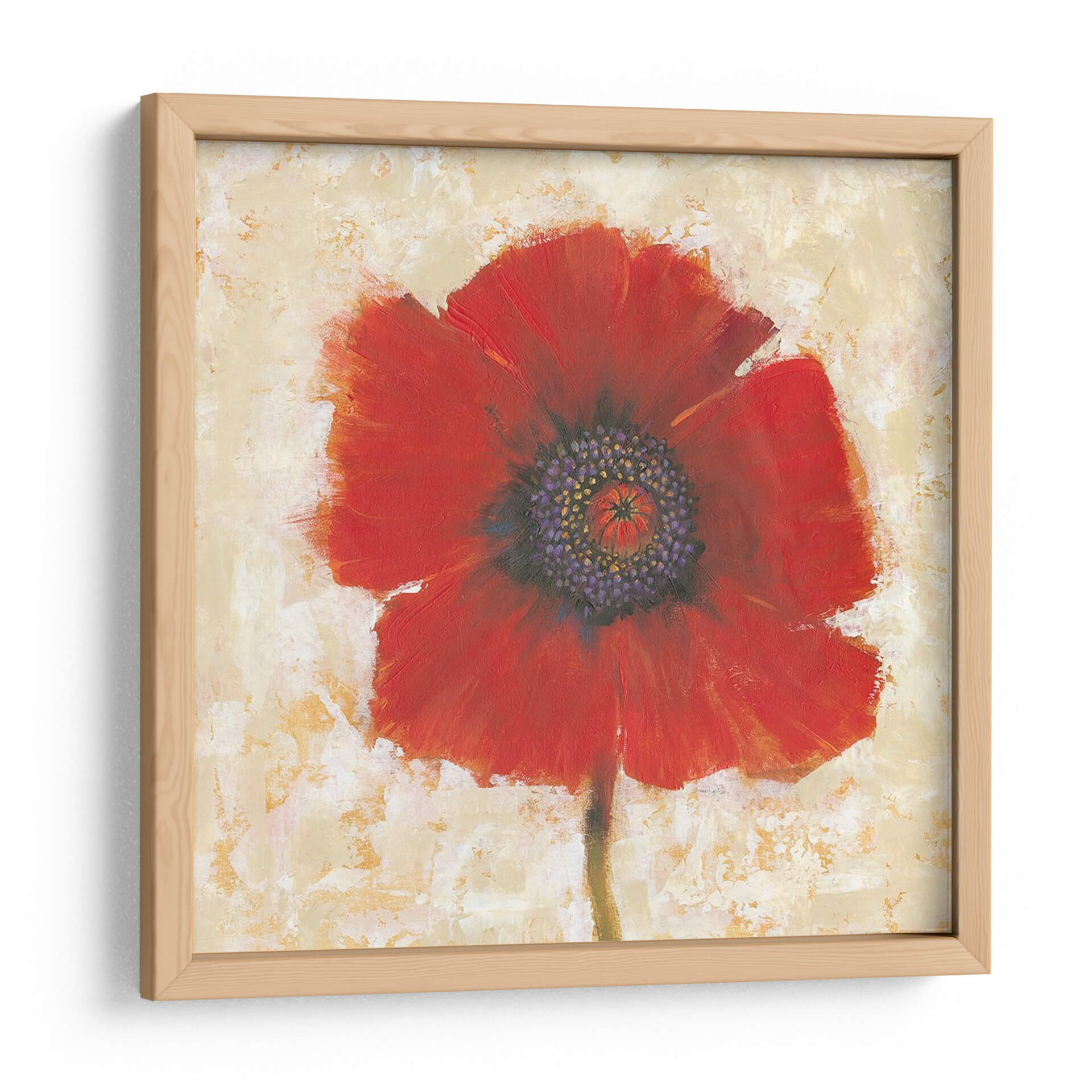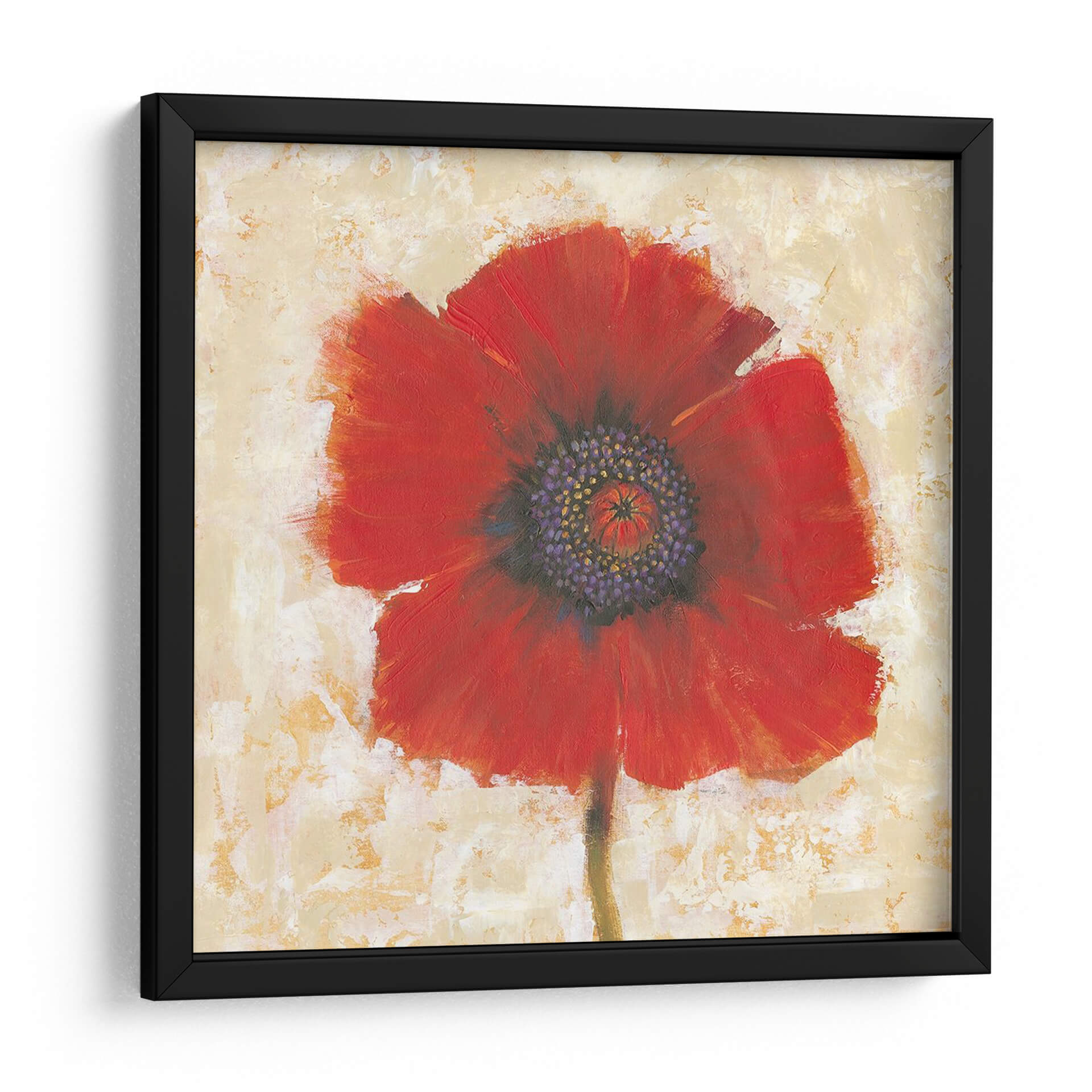 Inyecta vitalidad y elegancia a tu espacio con el cautivador cuadro "Retrato de Amapola Roja II" de Tim O'Toole. Esta obra maestra floral captura la esencia vibrante de una amapola en su máximo esplendor, presentando pétalos de un rojo intenso que parecen danzar sobre un lienzo texturizado en tonos crema y ocre. El detallado centro de la flor, con sus matices púrpuras y amarillos, ofrece un contraste fascinante que invita a la contemplación. La técnica pictórica, con pinceladas audaces y una rica aplicación de color, confiere a la pieza una profundidad y un carácter únicos, evocando una sensación de energía natural y belleza efímera. Ideal para quienes buscan añadir un toque de color audaz y sofisticación a su hogar u oficina, este cuadro decorativo se convierte en un punto focal impresionante en cualquier estancia. Su versatilidad permite que se integre perfectamente en decoraciones modernas, clásicas o bohemias, aportando calidez y un aire artístico inconfundible. Transforma tu pared en una galería personal con esta representación icónica de la naturaleza.