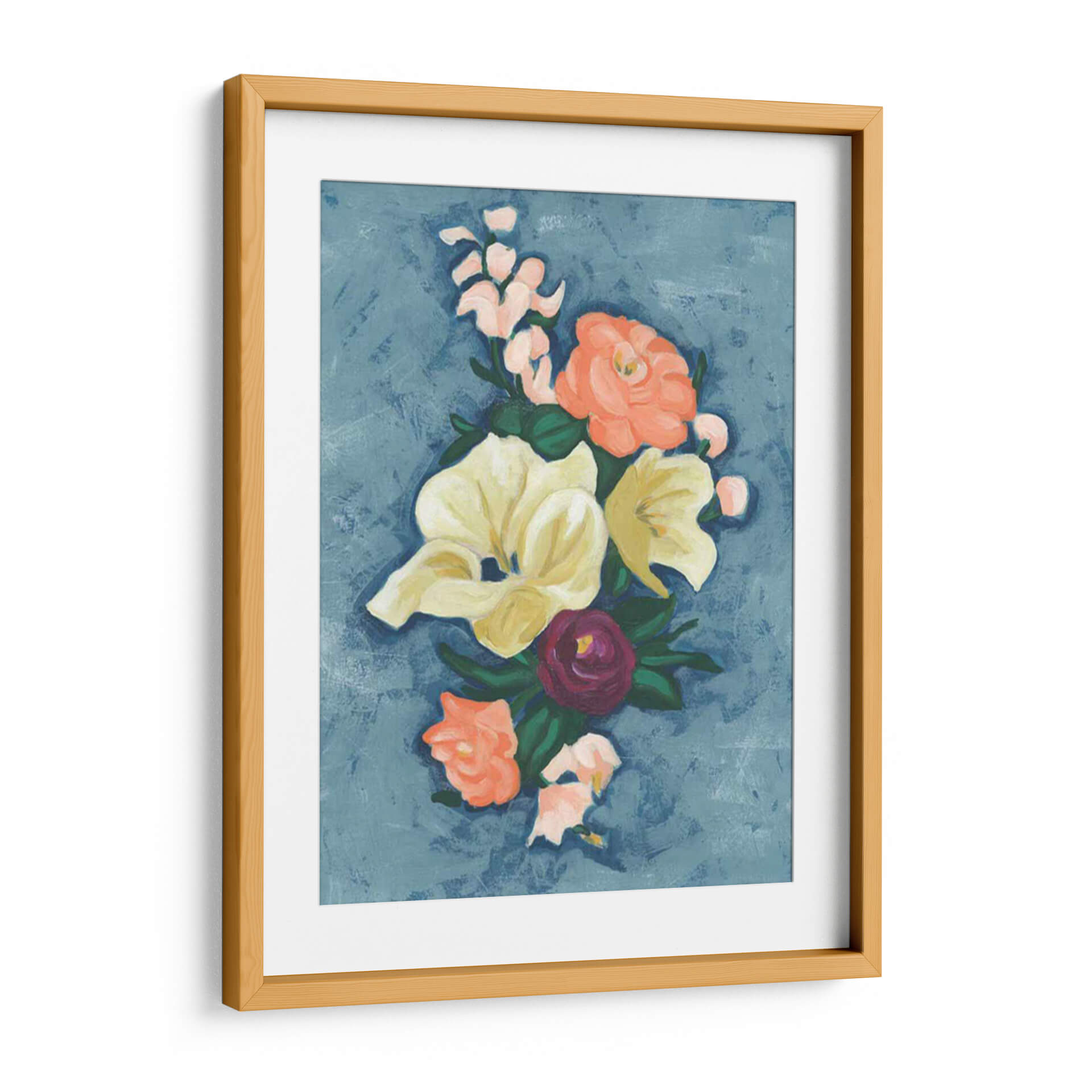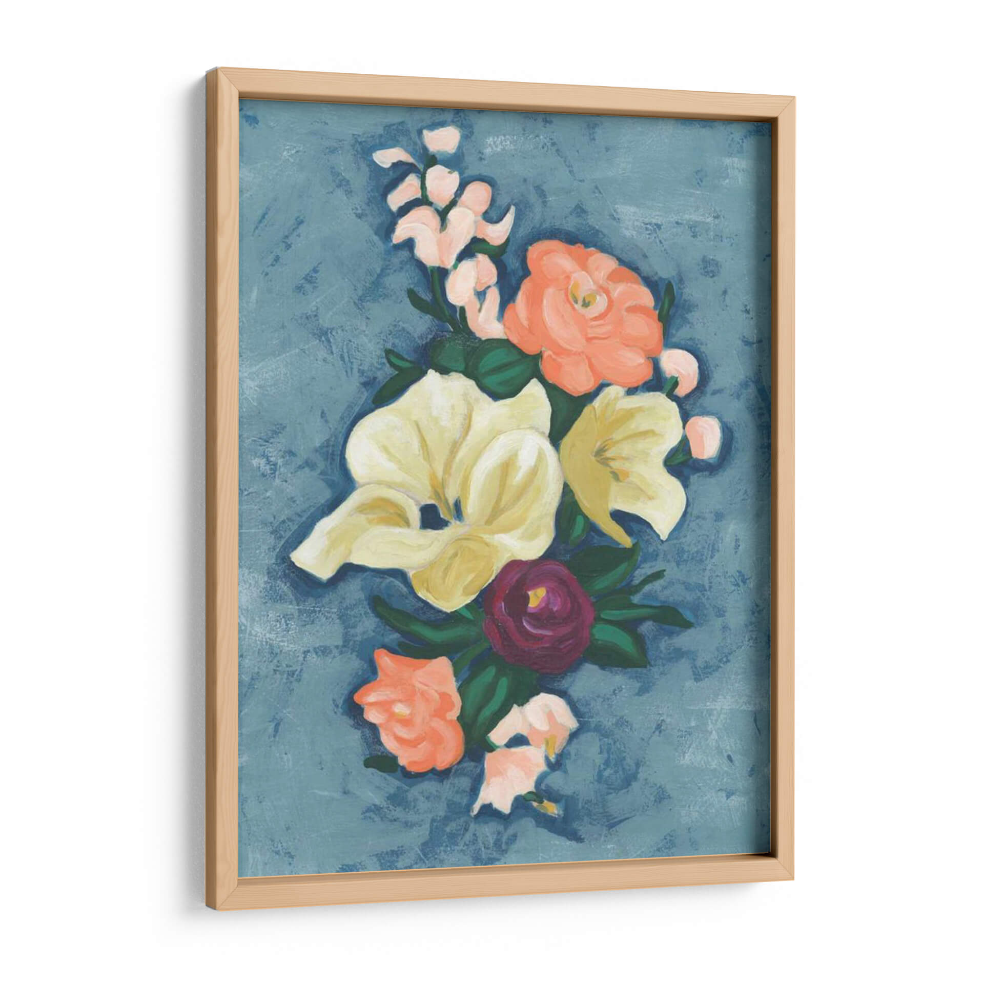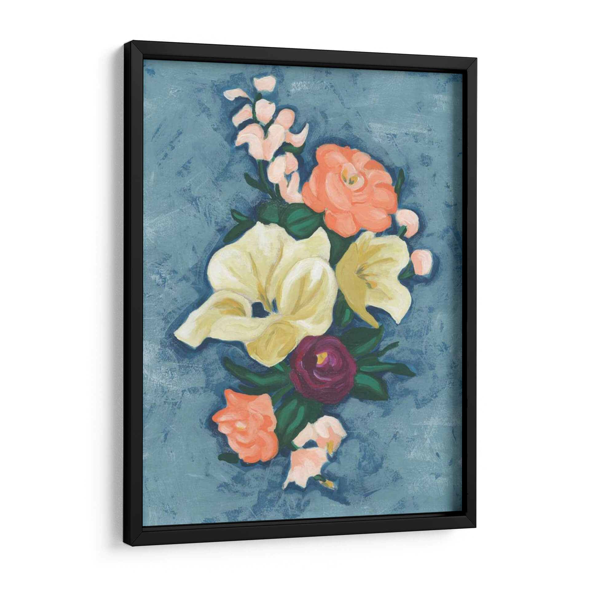 Sumérgete en la delicadeza y el encanto de "Retrato Floral II", una obra de arte que captura la belleza efímera de la naturaleza con un toque contemporáneo. Este cuadro decorativo presenta un vibrante ramo de flores en tonos pastel y vibrantes sobre un fondo azul texturizado que evoca la serenidad del cielo o la profundidad del mar. Las flores, pintadas con pinceladas sueltas y expresivas, transmiten una sensación de movimiento y vida, invitando a la contemplación. Predominan los amarillos cremosos, naranjas cálidos y un profundo borgoña, contrastando armoniosamente con el azul de fondo, creando una paleta de colores equilibrada y cautivadora. Ideal para añadir un toque de color y sofisticación a cualquier espacio, desde una sala de estar moderna hasta un dormitorio acogedor o una oficina elegante. "Retrato Floral II" es más que una simple decoración; es una ventana a un jardín interior, una pieza que inspira calma y realza la belleza de tu hogar u oficina. Su estilo pictórico, que fusiona lo figurativo con toques abstractos, la hace versátil y atractiva para una amplia gama de gustos. Haz de este cuadro el punto focal de tu decoración y disfruta de su impacto visual y emocional.