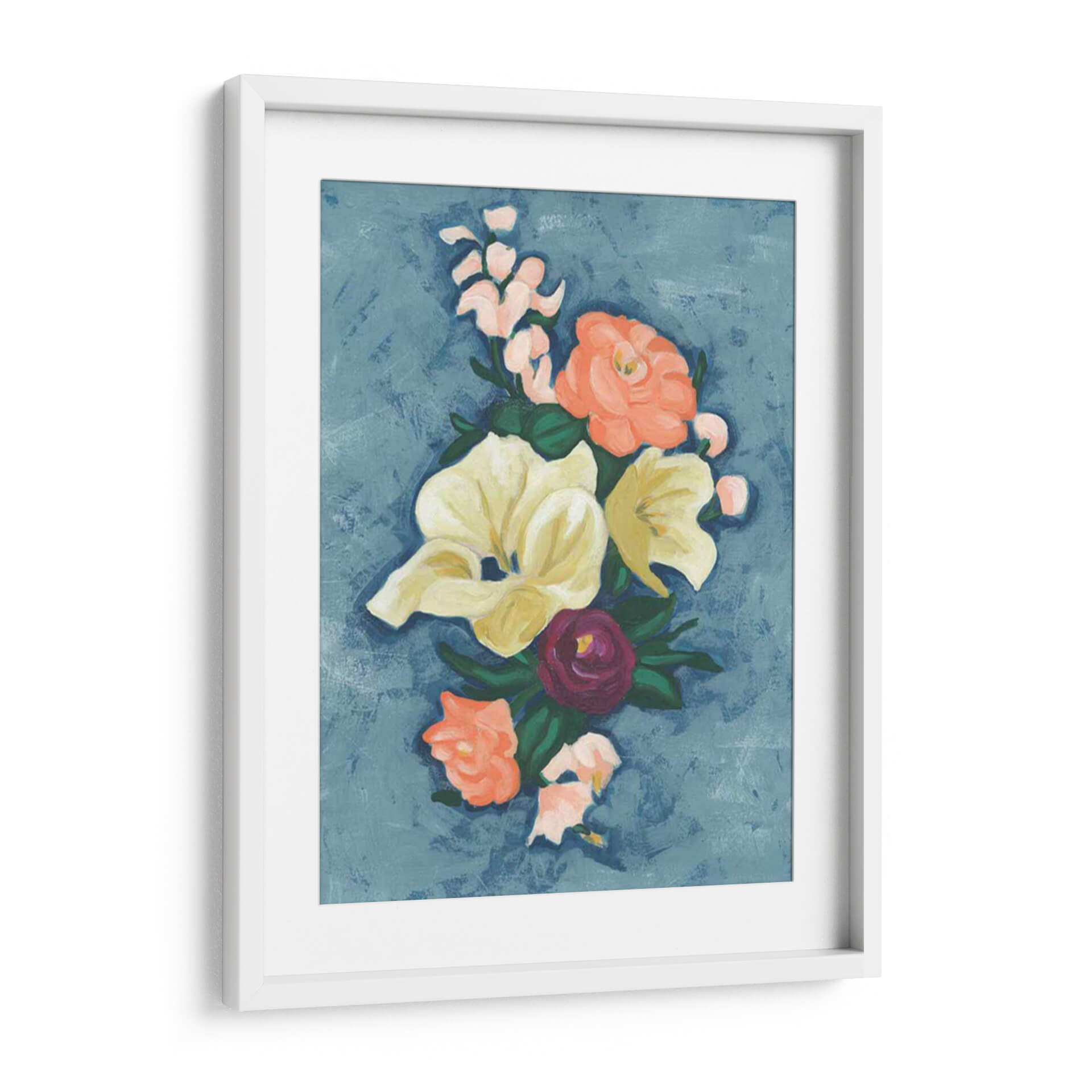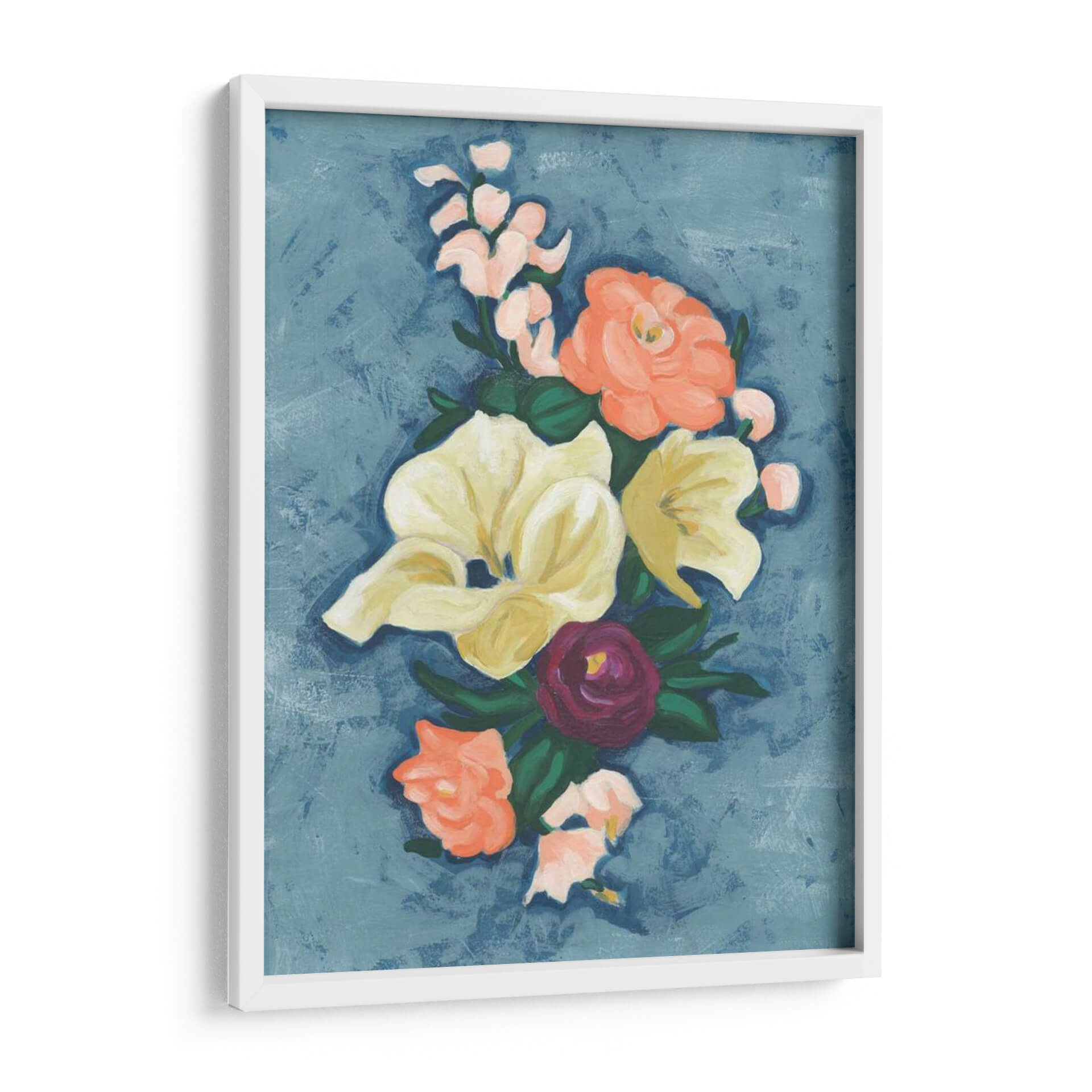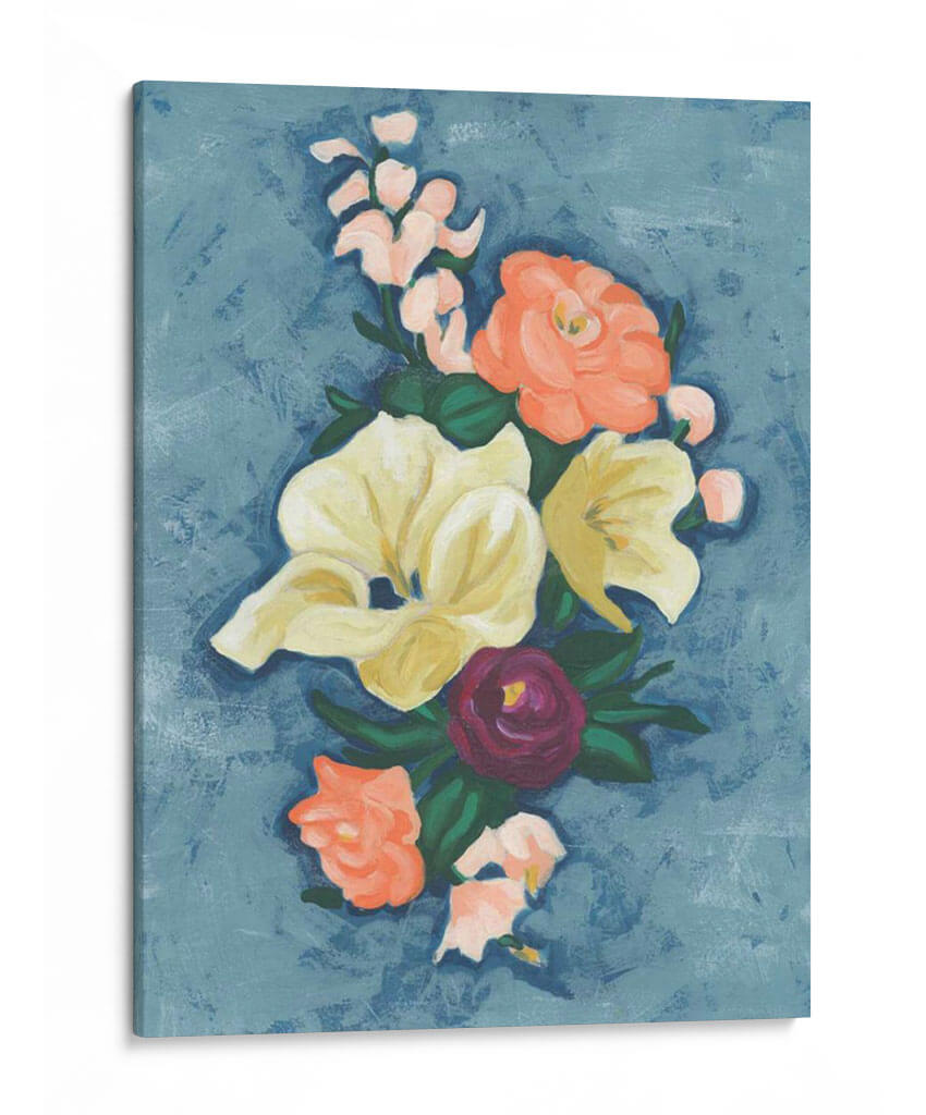 Sumérgete en la delicadeza y el encanto de "Retrato Floral II", una obra de arte que captura la belleza efímera de la naturaleza con un toque contemporáneo. Este cuadro decorativo presenta un vibrante ramo de flores en tonos pastel y vibrantes sobre un fondo azul texturizado que evoca la serenidad del cielo o la profundidad del mar. Las flores, pintadas con pinceladas sueltas y expresivas, transmiten una sensación de movimiento y vida, invitando a la contemplación. Predominan los amarillos cremosos, naranjas cálidos y un profundo borgoña, contrastando armoniosamente con el azul de fondo, creando una paleta de colores equilibrada y cautivadora. Ideal para añadir un toque de color y sofisticación a cualquier espacio, desde una sala de estar moderna hasta un dormitorio acogedor o una oficina elegante. "Retrato Floral II" es más que una simple decoración; es una ventana a un jardín interior, una pieza que inspira calma y realza la belleza de tu hogar u oficina. Su estilo pictórico, que fusiona lo figurativo con toques abstractos, la hace versátil y atractiva para una amplia gama de gustos. Haz de este cuadro el punto focal de tu decoración y disfruta de su impacto visual y emocional.