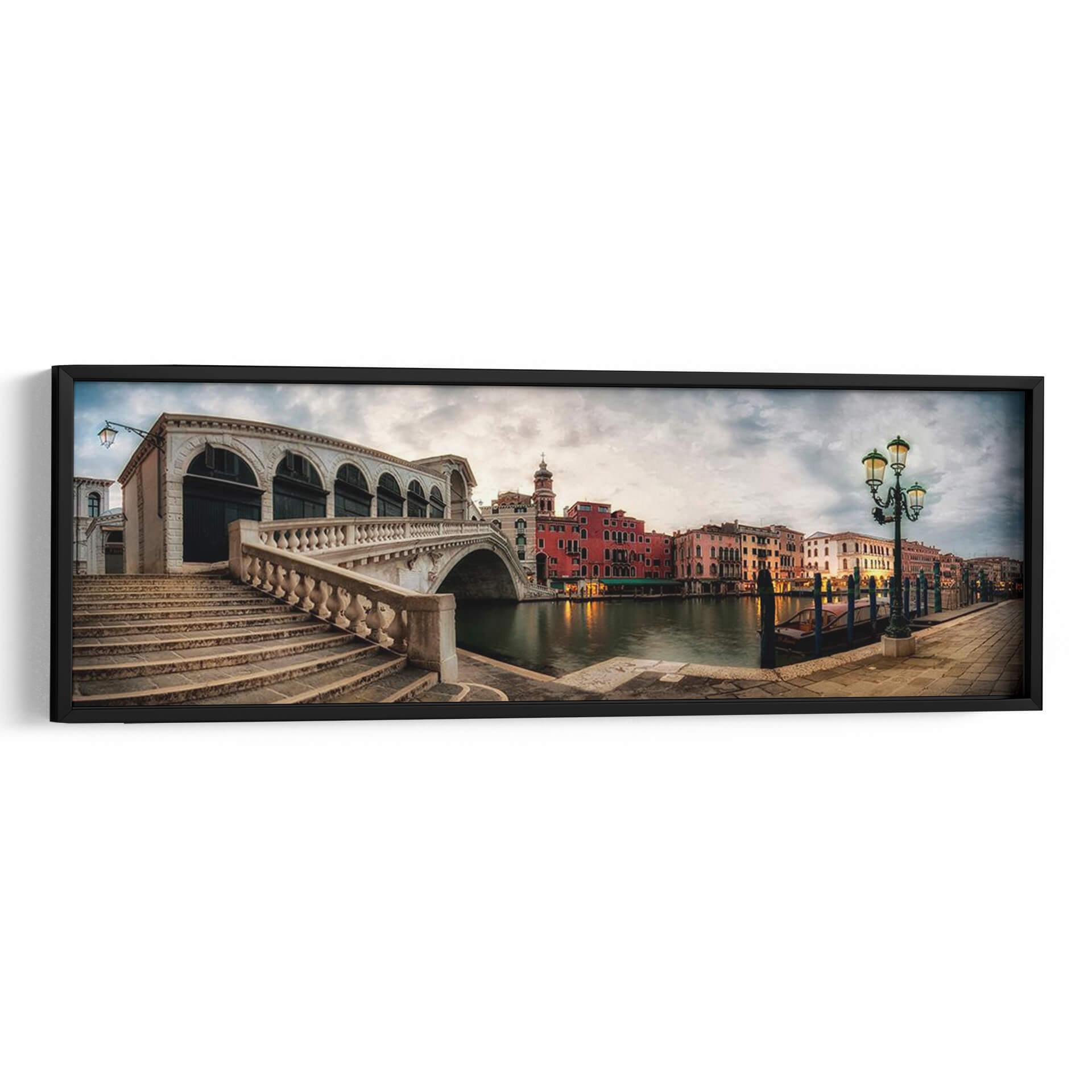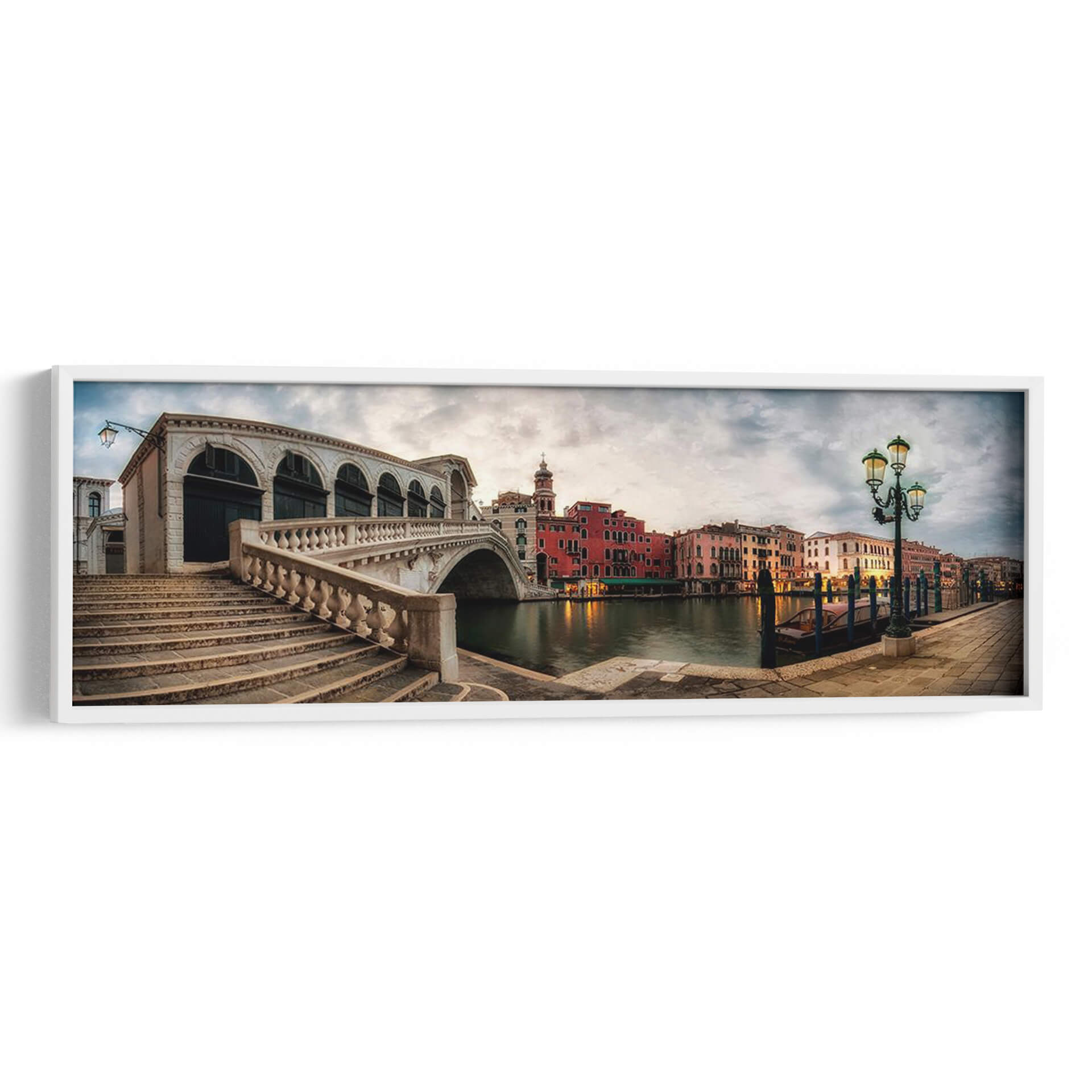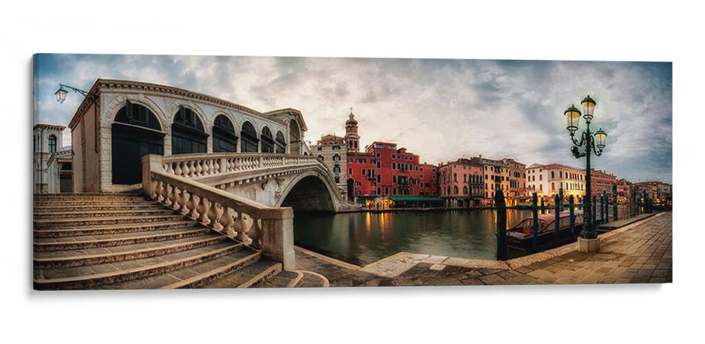 Transporta tu hogar a la icónica ciudad de Venecia con "Rialto - Grand Canal Panorama", una obra maestra capturada por el talentoso Danny Head. Este impresionante cuadro decorativo te sumerge en la atmósfera mágica de uno de los canales más famosos del mundo. La imagen presenta una vista panorámica del majestuoso Puente de Rialto, flanqueado por la arquitectura veneciana de vibrantes colores que se reflejan en las tranquilas aguas del canal. La paleta de colores, dominada por tonos cálidos de terracota, ocres y rosas, junto con el azul grisáceo del cielo nublado, crea una sensación de profundidad y realismo, a la vez que evoca la nostalgia de un atardecer perfecto. La composición, con la imponente estructura del puente y las escalinatas que guían la mirada, invita a la contemplación, mientras que las luces de las farolas y los edificios comienzan a encenderse, añadiendo un toque de calidez y romanticismo. Ideal para aquellos que buscan infundir a sus espacios un aire de elegancia, historia y sofisticación europea, este lienzo es perfecto para salas de estar, comedores o estudios, convirtiéndose en un punto focal que evoca viajes y recuerdos inolvidables. Añade un toque de la "Serenísima" a tu decoración y déjate envolver por la belleza atemporal de Venecia.