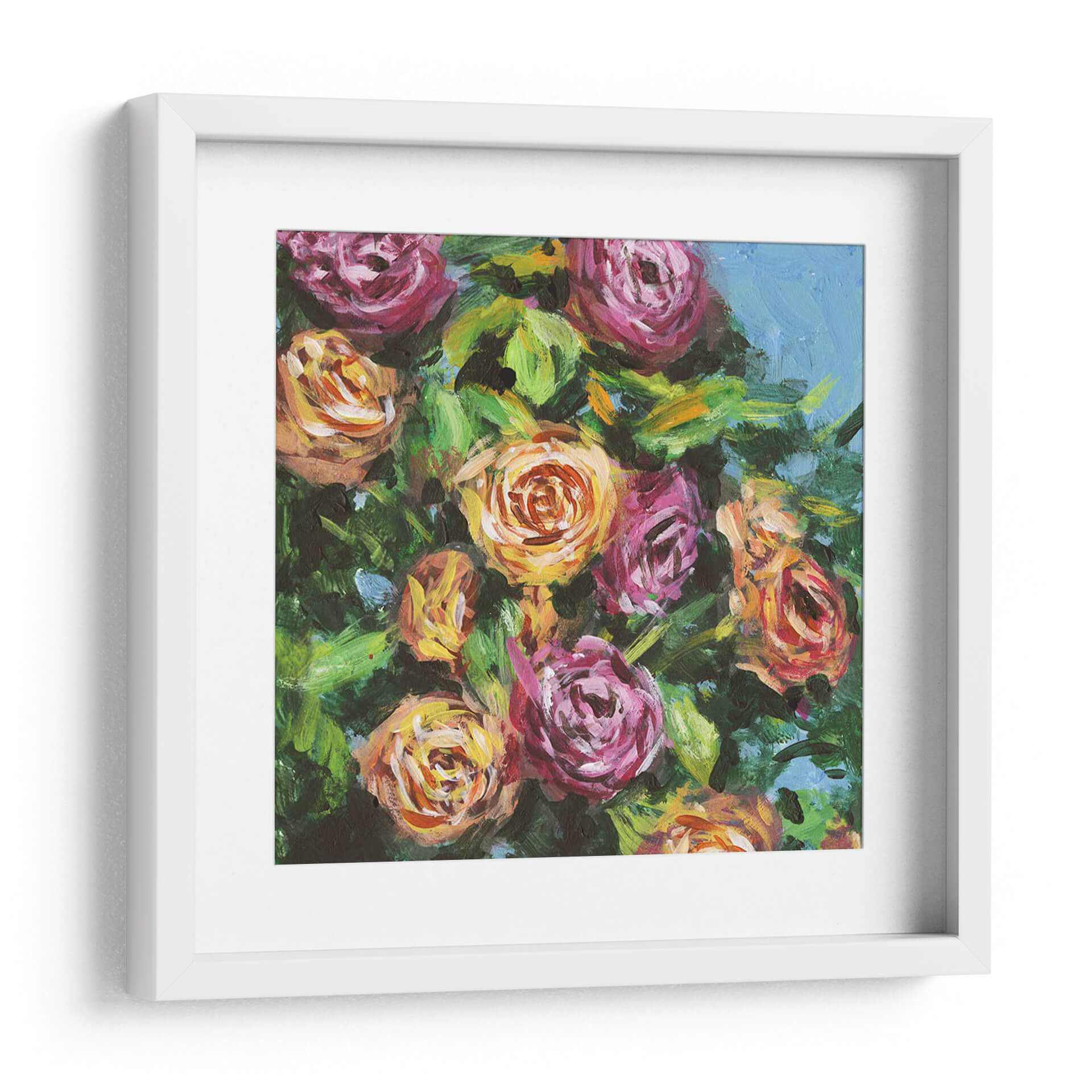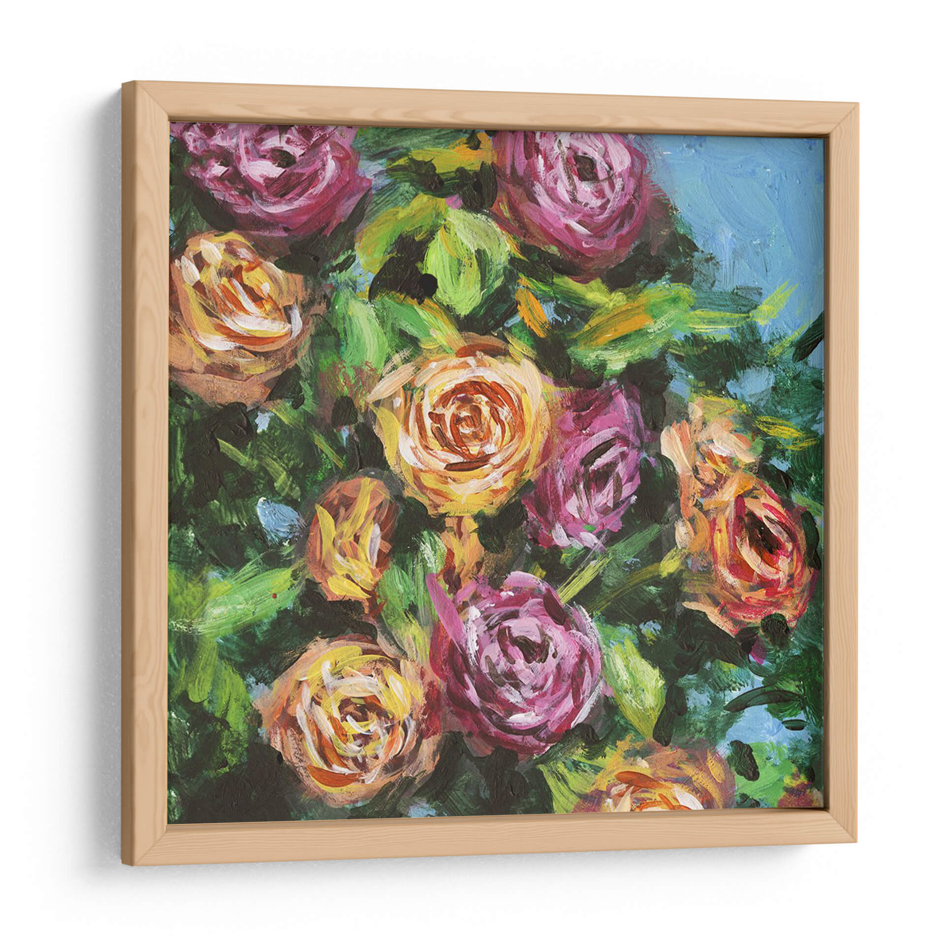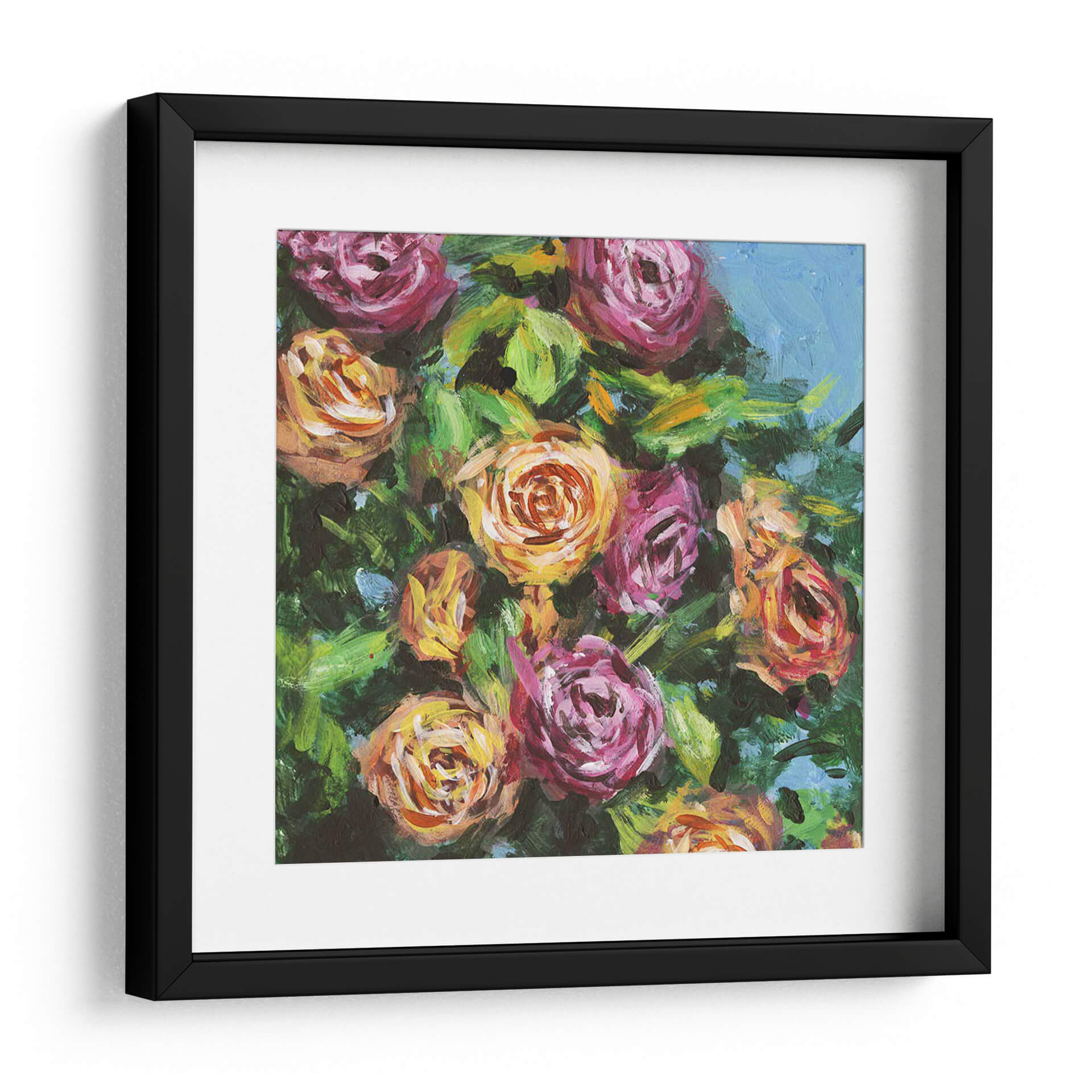 Adéntrate en la vibrante obra 'Rosas En La Luz Del Sol I' de Melissa Wang, una explosión de color y vida que captura la esencia de las rosas en su máximo esplendor. Este cuadro decorativo, con su estilo impresionista y pinceladas audaces, evoca una sensación de alegría y vitalidad, transportándote a un jardín bañado por el sol. La paleta de colores, que transita entre cálidos naranjas, amarillos dorados y profundos fucsias, se complementa con el contraste de los verdes intensos del follaje y un cielo azul vibrante, creando una composición dinámica y cautivadora. Cada pétalo parece cobrar vida bajo la mano experta de la artista, invitando a la contemplación y al disfrute de la belleza natural. Esta pieza es ideal para añadir un toque de color y optimismo a cualquier espacio, ya sea una sala de estar moderna, un dormitorio acogedor o una oficina que necesite un soplo de aire fresco. 'Rosas En La Luz Del Sol I' no es solo una decoración, es una invitación a sentir la calidez y la energía de la naturaleza en tu hogar.