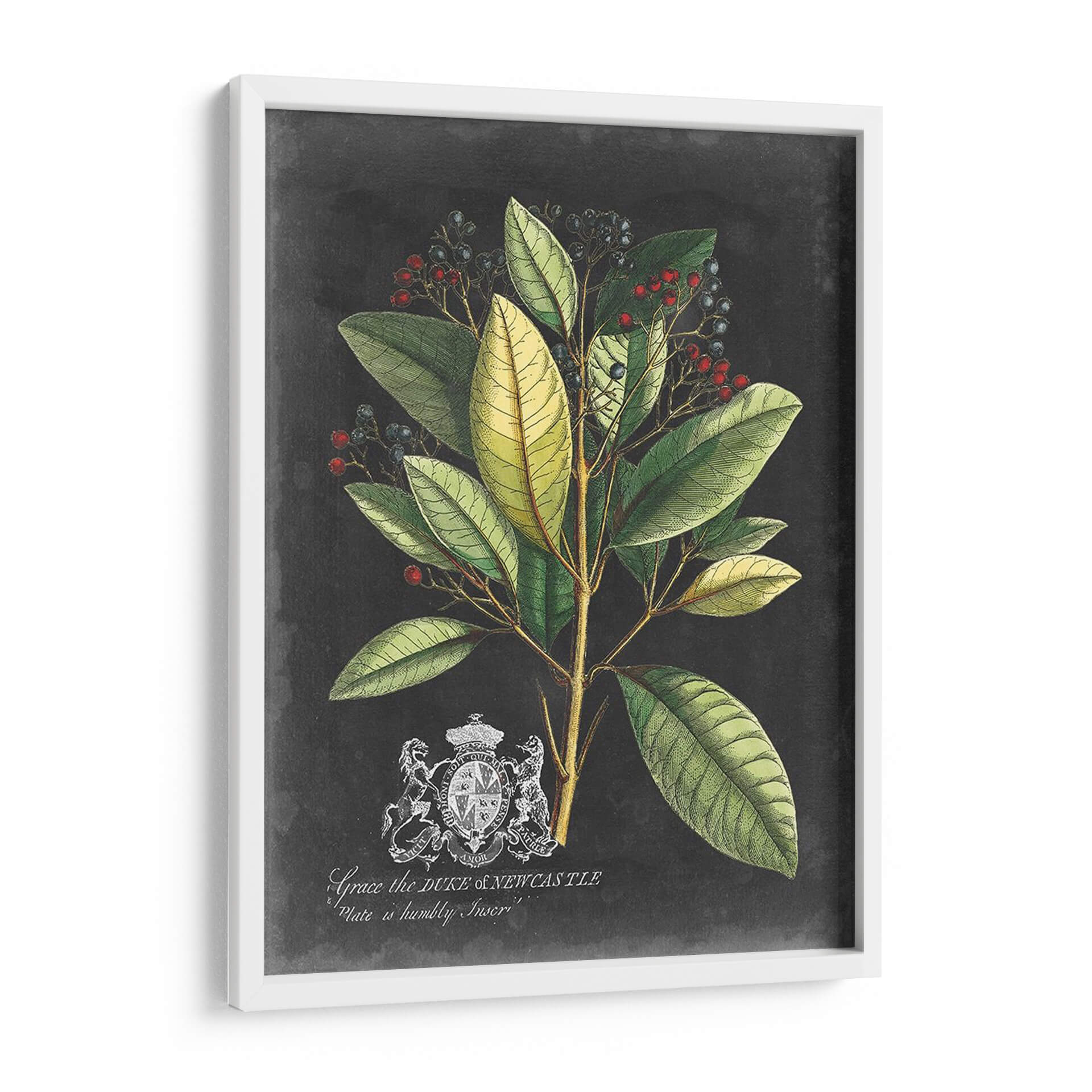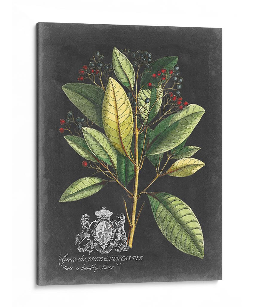 Embellece tu espacio con el exquisito cuadro decorativo 'Royal Folliage Iv', una obra maestra botánica del Vision Studio. Esta pieza captura la elegancia atemporal de la naturaleza, presentando un detallado estudio de follaje verde exuberante, salpicado de vibrantes bayas rojas y azules oscuros, todo sobre un sutil fondo texturizado que recuerda a la pizarra. La composición, inspirada en ilustraciones científicas clásicas, destaca la intrincada estructura de las hojas y la delicadeza de las bayas, creando una atmósfera de sofisticación y calma. Los tonos profundos de verde, contrastados con los toques de color de las frutas y el fondo oscuro, otorgan profundidad y un toque de dramatismo a la pieza, haciéndola ideal para una variedad de entornos. Ya sea que busques añadir un acento de la naturaleza a tu sala de estar, un toque de elegancia a tu comedor o un elemento de serenidad a tu estudio, 'Royal Folliage Iv' es la elección perfecta. Su estilo clásico pero moderno permite que se integre sin esfuerzo en decoraciones contemporáneas, tradicionales o eclécticas, aportando un aire de refinamiento y conexión con el mundo natural. Transforma tu hogar u oficina con esta cautivadora obra de arte botánico.