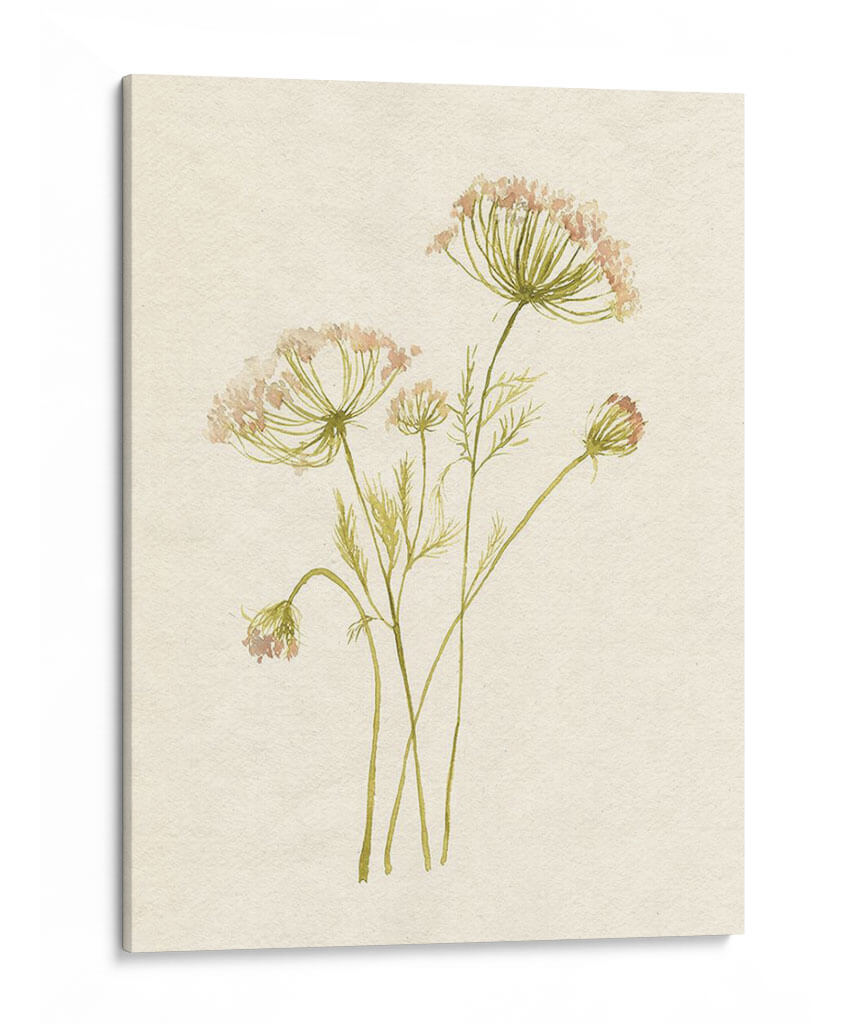 Sumérgete en la delicadeza botánica de "Rubor De Encaje I", una obra maestra de Jennifer Goldberger que captura la etérea belleza de las flores de encaje de la reina ana con una sensibilidad exquisita. Cada pincelada evoca la fragilidad y la complejidad de la naturaleza, con delicados racimos de flores en tonos rosados pálidos y verdes suaves que parecen flotar sobre un fondo neutro de color crema. La composición, centrada en la elegancia natural de estas flores, crea una atmósfera de serenidad y calma, perfecta para añadir un toque de sofisticación orgánica a cualquier espacio. Este cuadro decorativo es ideal para quienes aprecian el arte floral con un toque contemporáneo y minimalista, transformando dormitorios, salas de estar o estudios en santuarios de paz y belleza natural. La técnica acuarela suave y la paleta de colores sutiles invitan a la contemplación, haciendo de "Rubor De Encaje I" una adición atemporal a tu decoración, que evoca la frescura de un jardín al amanecer y la elegancia discreta de la naturaleza en su máxima expresión.