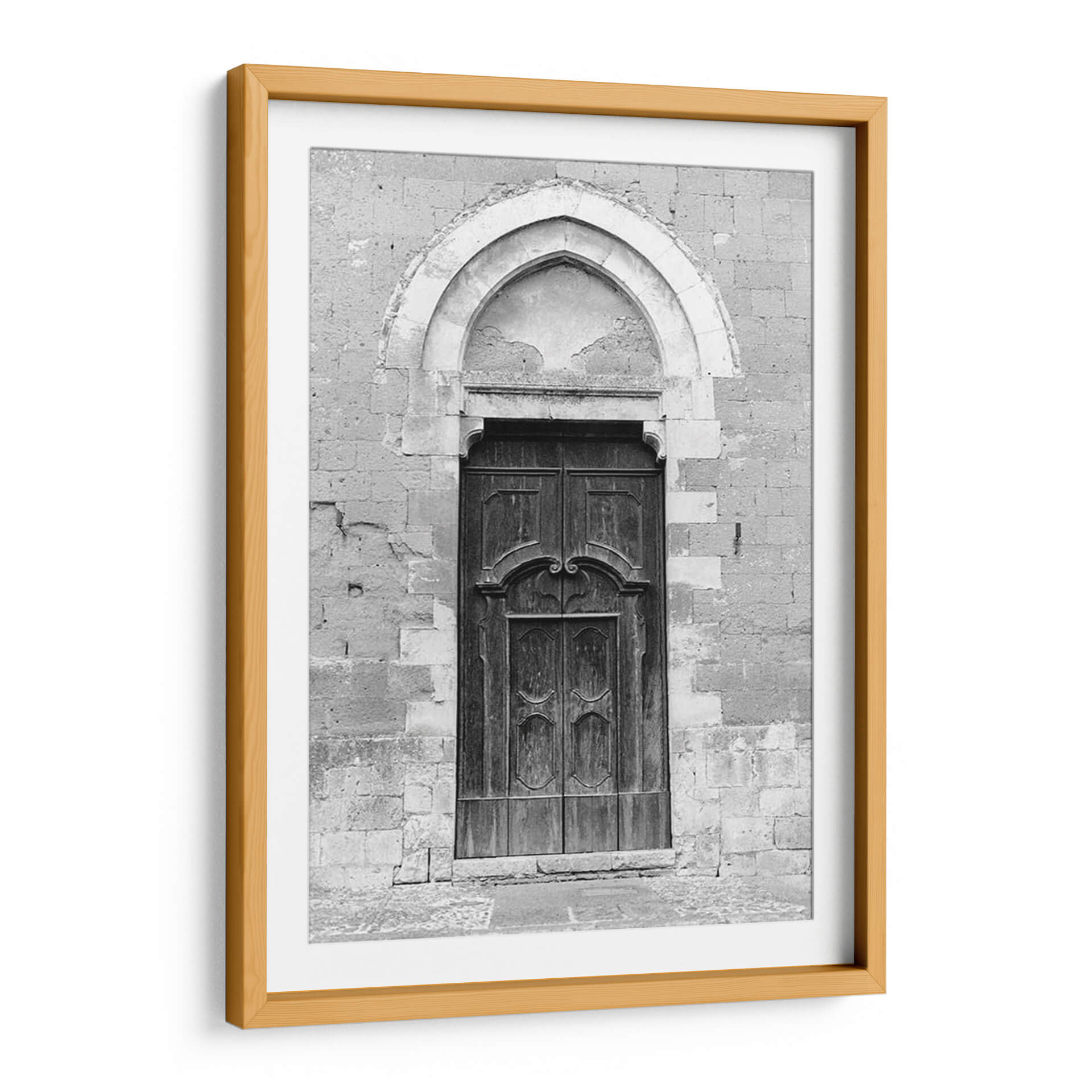Sumérgete en la misteriosa elegancia del cuadro "Santuario" de Laura DeNardo. Esta obra captura una imponente puerta de madera antigua, enmarcada por una arcada de piedra desgastada por el tiempo, presentada en una cautivadora escala de grises. La textura rugosa de los bloques de piedra contrasta sutilmente con la profundidad y los detalles tallados de la puerta, evocando una sensación de historia, misterio y posible secreto. El título "Santuario" invita a la reflexión sobre los espacios privados, la protección y lo desconocido que reside tras una entrada. Los tonos monocromáticos de esta fotografía de arte mural otorgan una versatilidad excepcional, permitiendo que se integre en una amplia gama de estilos decorativos, desde el minimalista y moderno hasta el rústico o industrial. Es una pieza perfecta para infundir carácter y profundidad a cualquier habitación, como una sala de estar, un estudio o un pasillo, actuando como un portal visual hacia la imaginación. Ideal para aquellos que aprecian la arquitectura, la historia y el arte que cuenta historias sin palabras, este cuadro decorativo añade un toque de sofisticación atemporal y una invitación a explorar lo oculto.