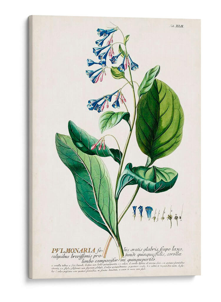 Embellece tu espacio con este cautivador cuadro decorativo, una obra maestra botánica que rinde homenaje a la belleza de la naturaleza. La ilustración detallada de la planta, con sus vibrantes flores azules y hojas verdes exuberantes, aporta un toque de elegancia y serenidad a cualquier habitación. El fondo neutro y el estilo clásico de la obra la convierten en una adición versátil para una variedad de estilos de decoración, desde el moderno hasta el tradicional. Imagina esta pieza como un punto focal en tu sala de estar, un toque de frescura en tu oficina, o un elemento calmante en tu dormitorio. La riqueza de los detalles botánicos y la cuidada composición invitan a la contemplación, creando una atmósfera de tranquilidad y conexión con el mundo natural. Este cuadro decorativo es perfecto para los amantes de la botánica, la ciencia o para quienes buscan añadir una pieza de arte atemporal y sofisticada a su hogar. Su diseño evoca un sentido de descubrimiento y admiración por los intrincados diseños de la flora, aportando una dimensión visualmente rica y estéticamente agradable a tu decoración.