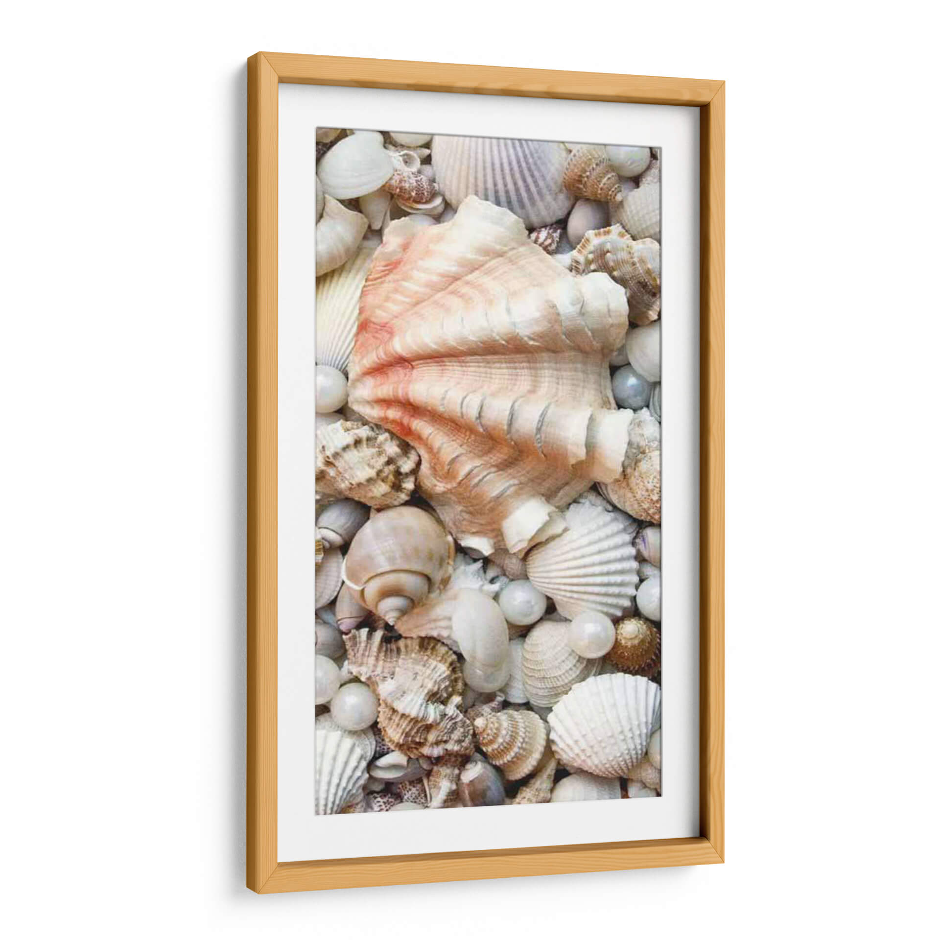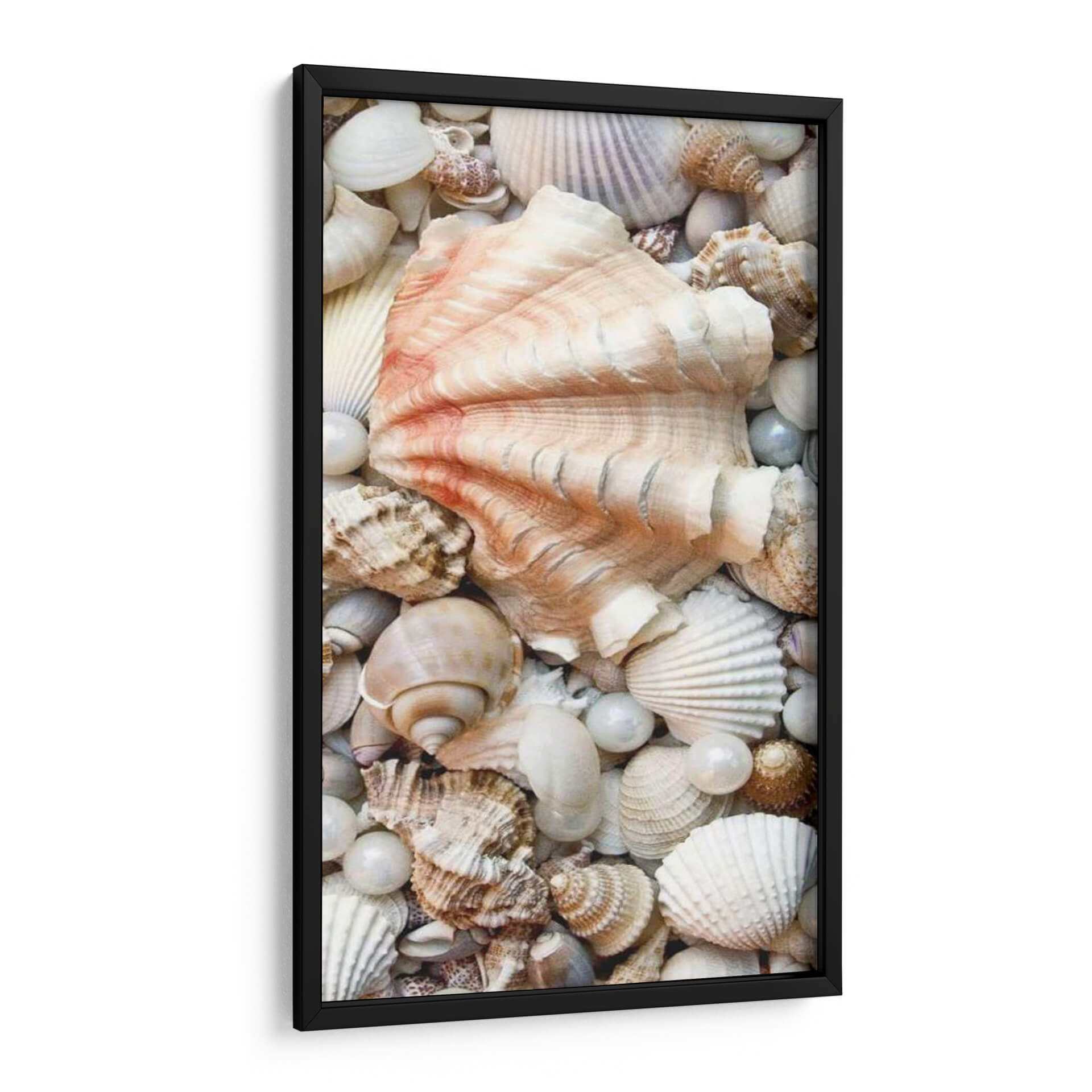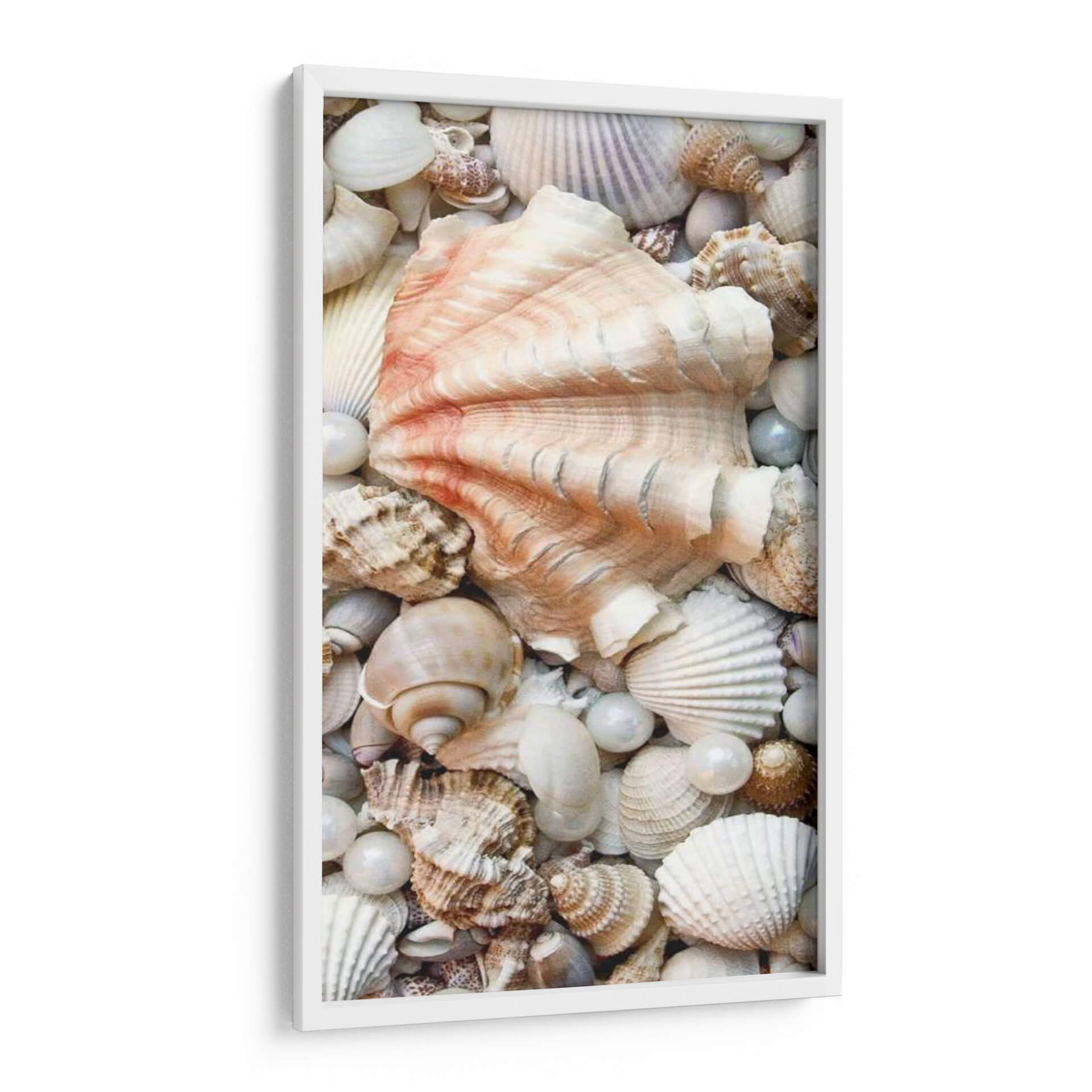 Sumérgete en la serena belleza del océano con 'Shell Menagerie I', una cautivadora obra de arte que captura la intrincada diversidad de los tesoros marinos. Este cuadro decorativo presenta una detallada composición de conchas y perlas, dispuestas de manera que evocan la riqueza y la tranquilidad de la playa. La paleta de colores, dominada por tonos neutros y suaves toques rosados en la concha central, aporta una sensación de calma y elegancia natural. El estilo fotorrealista de la obra permite apreciar la textura y forma de cada elemento, desde las delicadas estrías de las vieiras hasta las superficies lisas de las perlas y las formas espirales de los caracoles. Es una pieza perfecta para infundir una atmósfera relajante y sofisticada en cualquier espacio, ideal para salones, dormitorios o baños que busquen una conexión con la naturaleza y un toque de refinamiento costero. 'Shell Menagerie I' no es solo una decoración, es una invitación a la contemplación y un recordatorio de la belleza oculta en las profundidades marinas, añadiendo un toque de arte contemporáneo con inspiración natural a tu hogar.