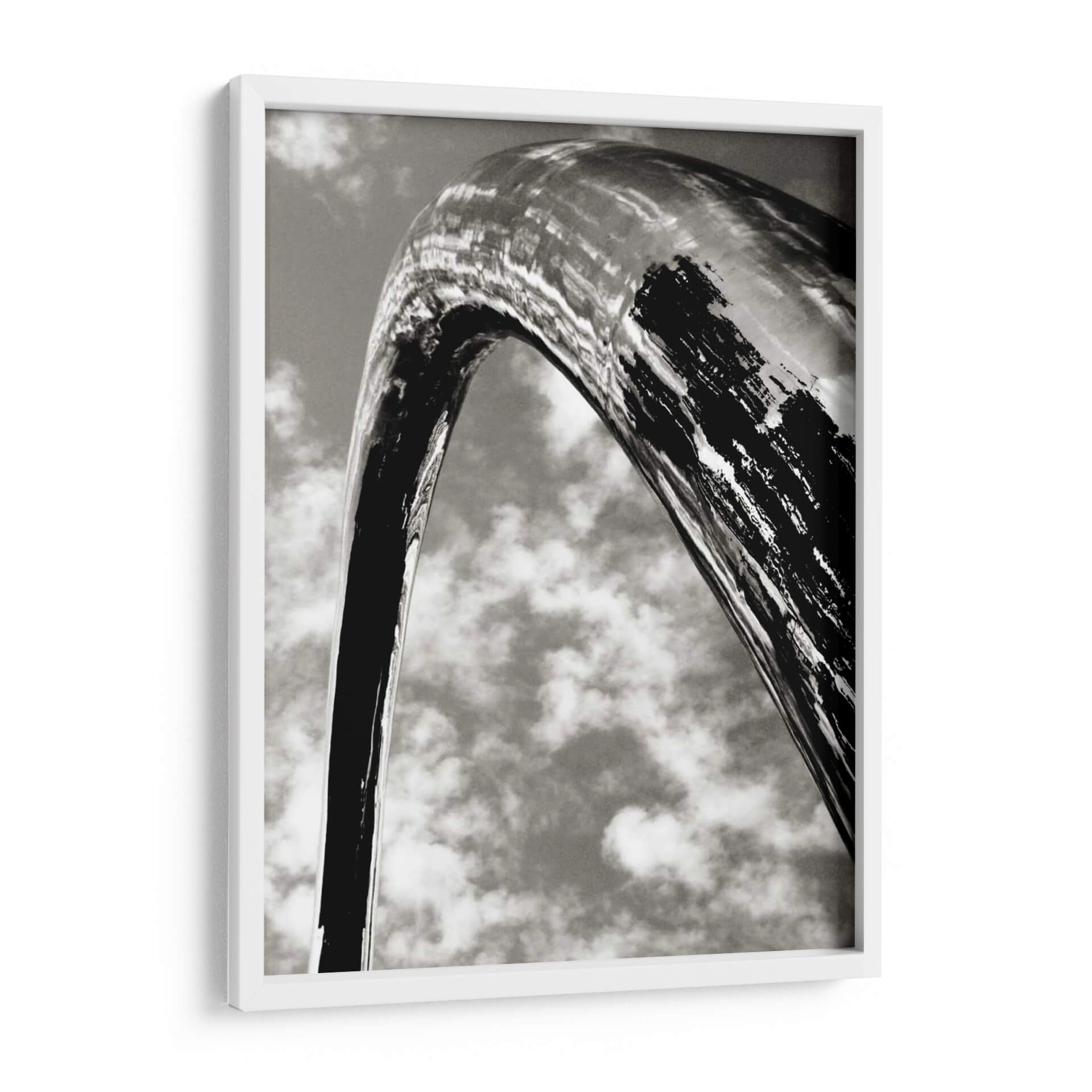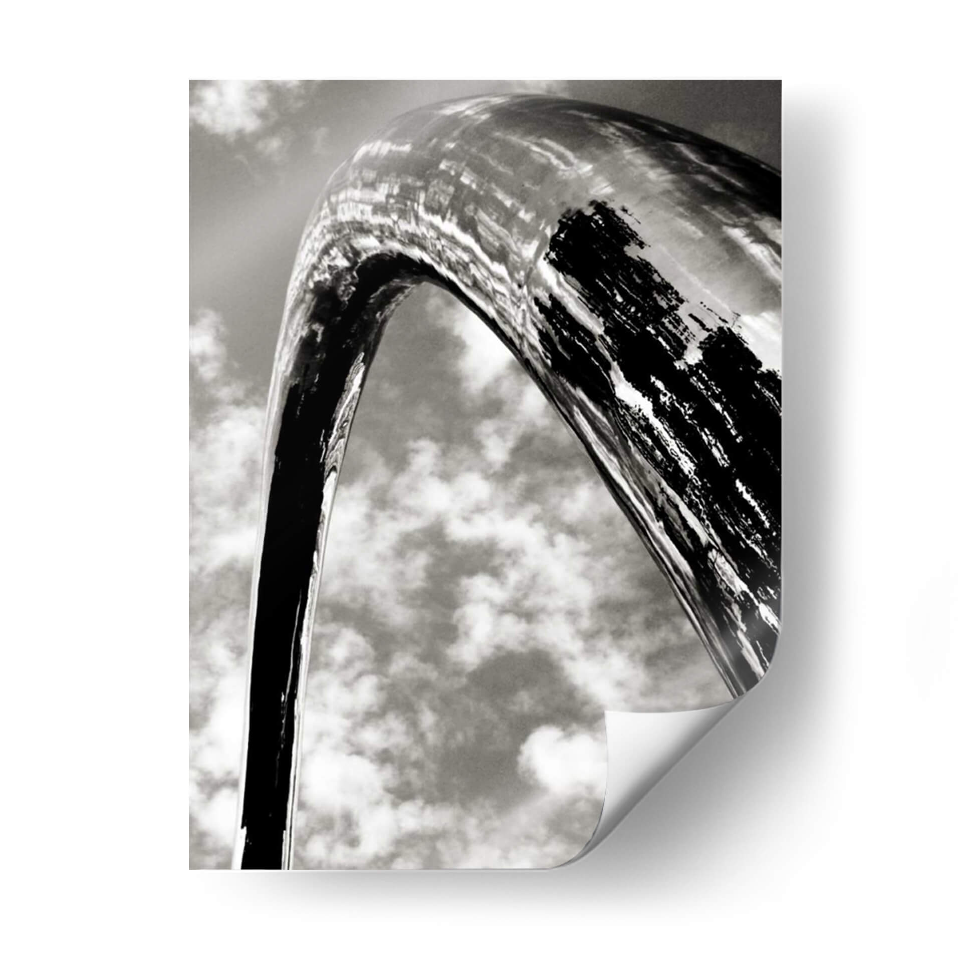 Captura la esencia de la arquitectura moderna y la inmensidad del cielo con 'Sky Sculpture Ii' de Tang Ling, una obra de arte abstracto que redefine el espacio visual. Este cuadro decorativo en blanco y negro presenta una imponente estructura curva, similar a un arco o escultura metálica, que se eleva con fuerza contra un fondo de nubes algodonosas. La obra juega con los contrastes, donde las superficies pulidas de la escultura reflejan la luz de manera sutil, mientras que otras áreas muestran texturas audaces y pinceladas oscuras que añaden dramatismo y profundidad. La composición, desde una perspectiva de contrapicado, evoca una sensación de asombro y monumentalidad, invitando a la contemplación de la forma y la línea. Ideal para salones modernos, oficinas de diseño o cualquier espacio que busque un toque de sofisticación y audacia visual. 'Sky Sculpture Ii' no es solo una pieza decorativa, es una declaración de estilo contemporáneo que añade carácter y un aire de grandeza a tu hogar. Transforma tus paredes con esta pieza única y deja que su impacto visual inspire conversaciones y admiración. La sutileza de su paleta monocromática permite una integración fluida en diversas decoraciones, aportando elegancia sin abrumar.