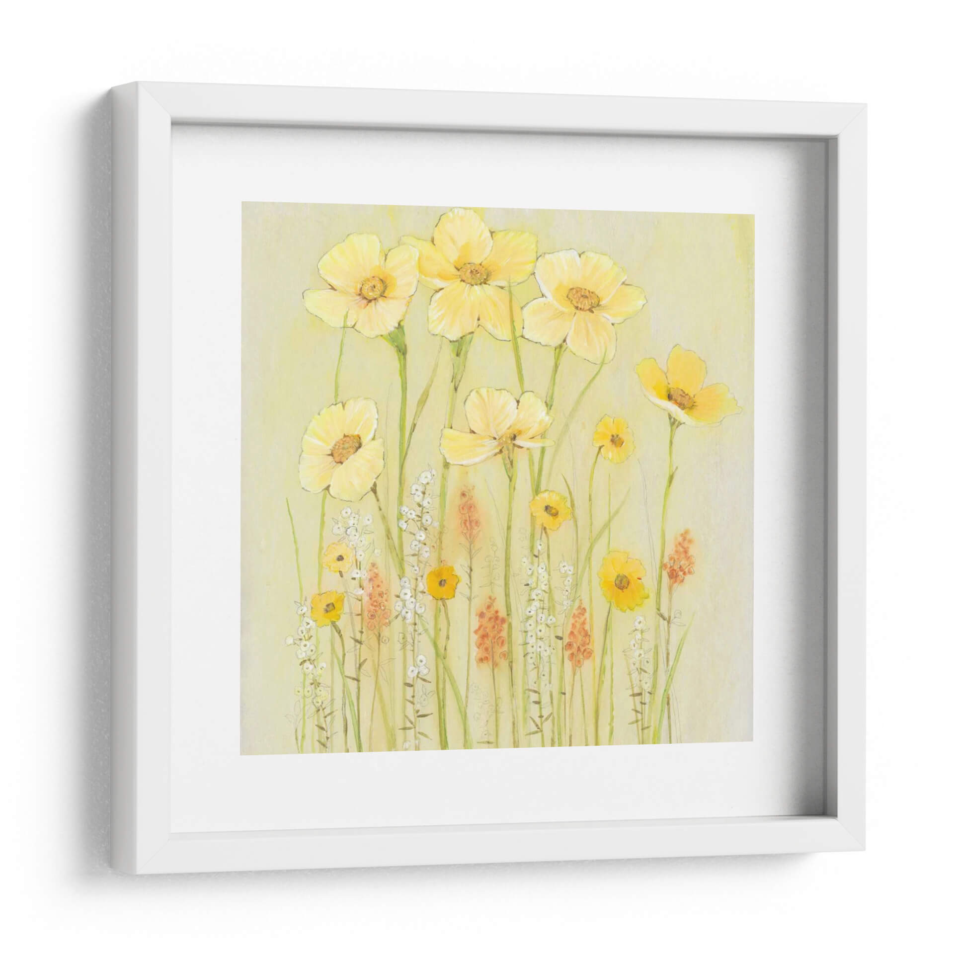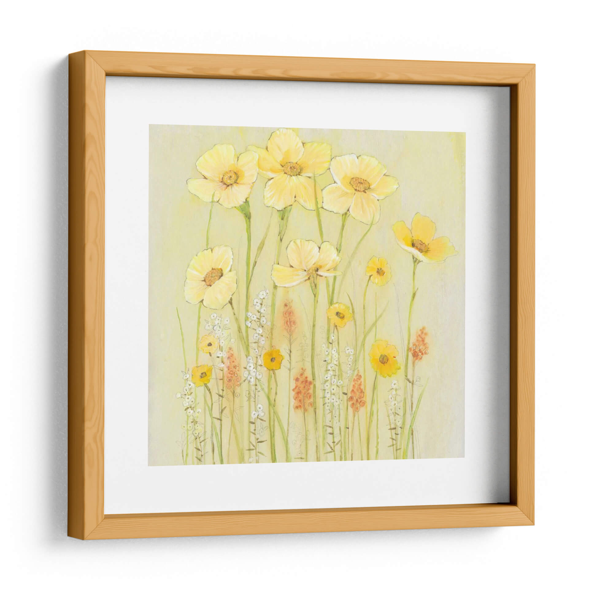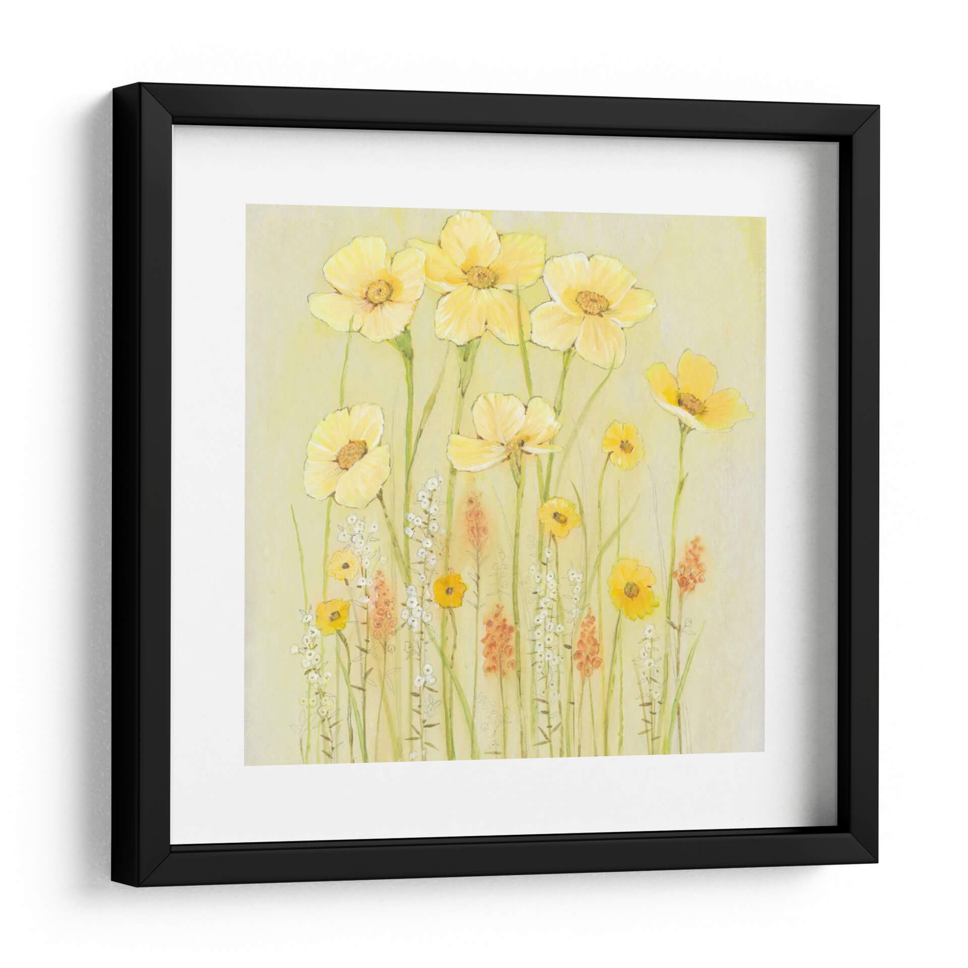 Captura la esencia de la primavera con "Soft Spring Floral I", una obra de arte que evoca la delicadeza y la vitalidad de la naturaleza en flor. Este cuadro decorativo presenta un vibrante despliegue de flores amarillas, adornadas con sutiles toques de blanco y naranja, sobre un suave fondo de tonalidades crema y verde pálido. La técnica del artista, Tim OToole, se manifiesta en pinceladas que sugieren movimiento y ligereza, creando una atmósfera serena y optimista. Las formas de las flores, estilizadas pero reconocibles, invitan a la contemplación, mientras que la paleta de colores cálidos y luminosos aporta una sensación de frescura y renovación. Ideal para añadir un punto de luz y alegría a cualquier estancia, este cuadro es perfecto para salones, dormitorios o recibidores que busquen un toque de encanto natural. Su composición, centrada en el crecimiento y la exuberancia floral, convierte a "Soft Spring Floral I" en una pieza que inspira calma y bienestar, trayendo la belleza del exterior al interior de tu hogar. Transforma tu espacio con esta representación artística de la primavera.