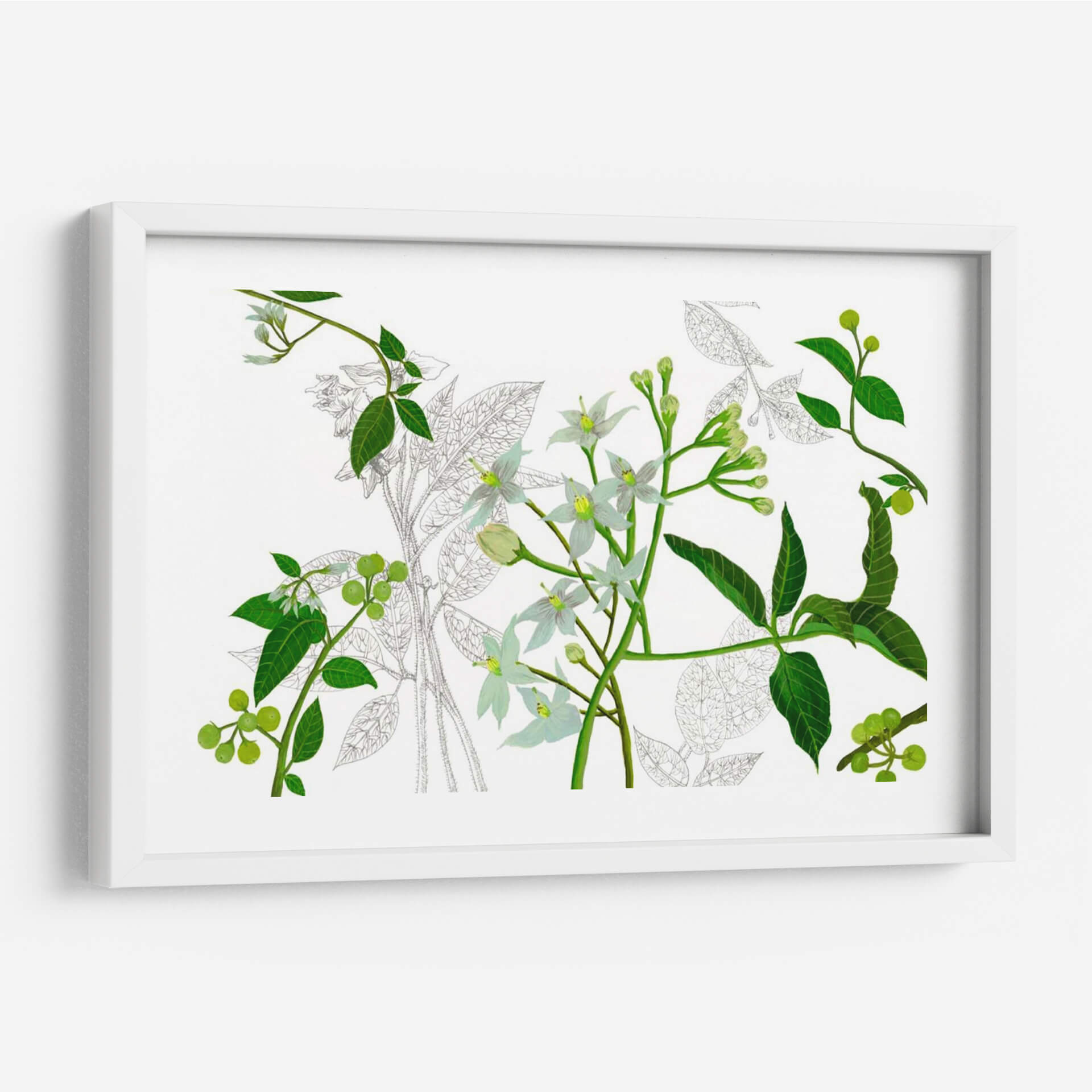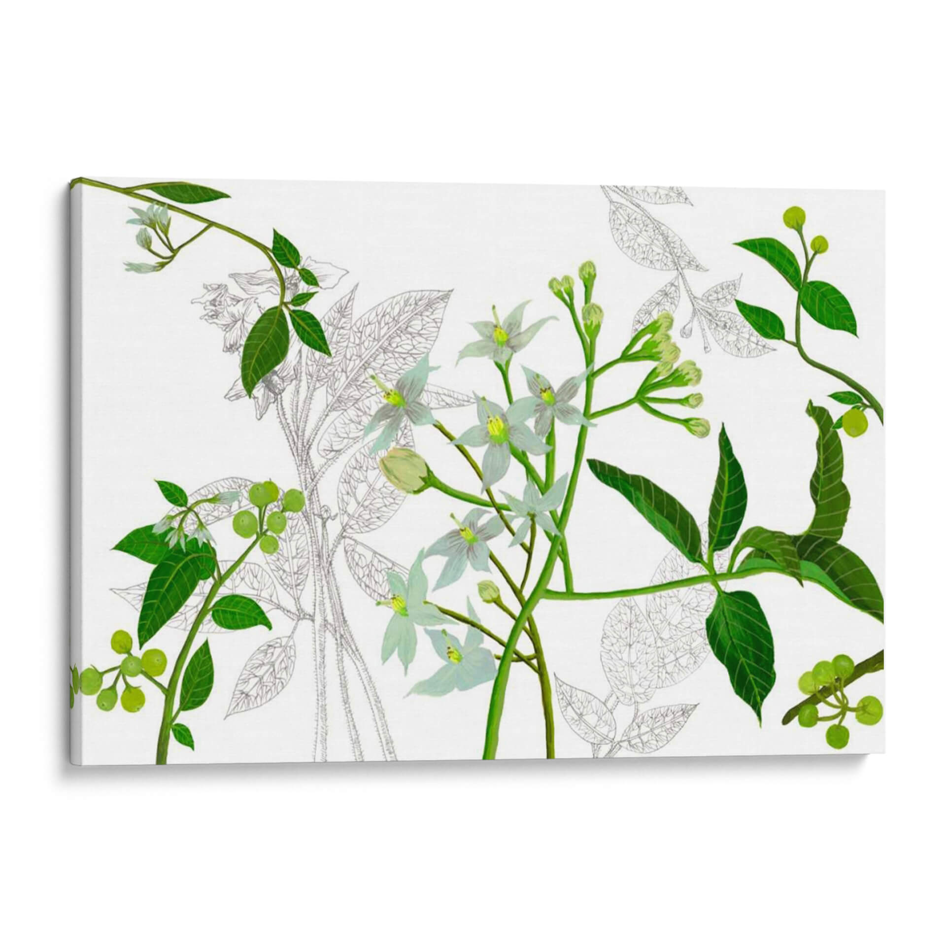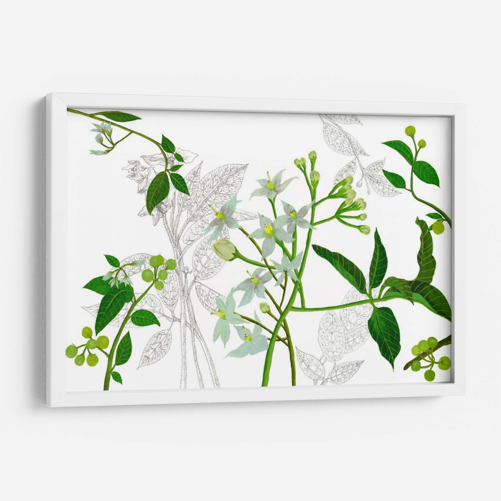 Sumérgete en la delicadeza botánica con "Solanum I", una obra de arte que captura la esencia efímera de la naturaleza. Melissa Wang nos presenta una composición exquisita donde las flores de solanum, representadas con sutiles tonos celestes y detalles en amarillo vibrante, parecen flotar sobre un fondo etéreo. Las hojas de un verde intenso y las pequeñas bayas verdes añaden profundidad y realismo a esta pieza, mientras que los bocetos a lápiz de follaje en segundo plano crean un contraste intrigante entre lo definido y lo etéreo, lo pintado y lo dibujado. Este cuadro decorativo es una invitación a la contemplación, ideal para infundir serenidad y un toque de frescura natural a cualquier espacio. Perfecto para salones, dormitorios o estudios que buscan una conexión con la tranquilidad del mundo natural y aprecian el arte botánico contemporáneo. "Solanum I" no es solo una decoración, es una ventana a la belleza detallada y a menudo pasada por alto de la flora, aportando un aire de sofisticación orgánica a tu hogar u oficina.