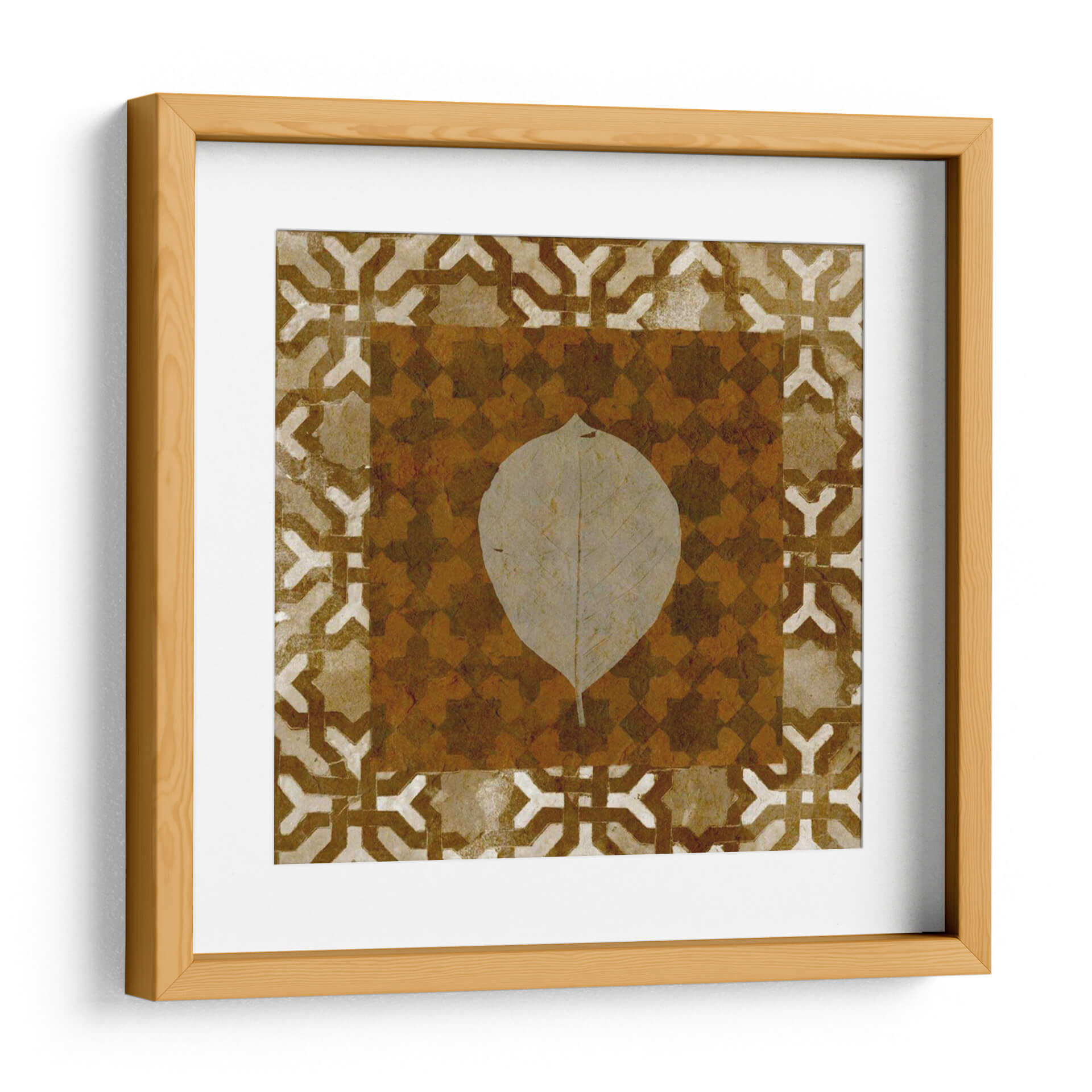 Sumérgete en la serena belleza de "Sombras De Brown III" de Alonzo Saunders, una obra de arte que captura la esencia de la naturaleza con un toque contemporáneo. Esta pieza presenta un delicado y detallado grabado de una hoja en tonos crudos, posada sobre un fondo texturizado de patrones geométricos en ricos tonos marrones y ocres. La composición evoca una sensación de calma y conexión terrenal, ideal para aquellos que buscan infundir sus espacios con una atmósfera de tranquilidad y elegancia natural. El contraste entre la simplicidad orgánica de la hoja y la complejidad del diseño de fondo crea una profundidad visual cautivadora. Este cuadro decorativo es perfecto para añadir un punto focal sofisticado a tu sala de estar, estudio u oficina, complementando tanto decoraciones modernas como rústicas. La paleta de colores cálidos y terrosos aporta una sensación acogedora y atemporal a cualquier ambiente. Descubre cómo "Sombras De Brown III" puede transformar tu hogar en un santuario de paz y estilo.