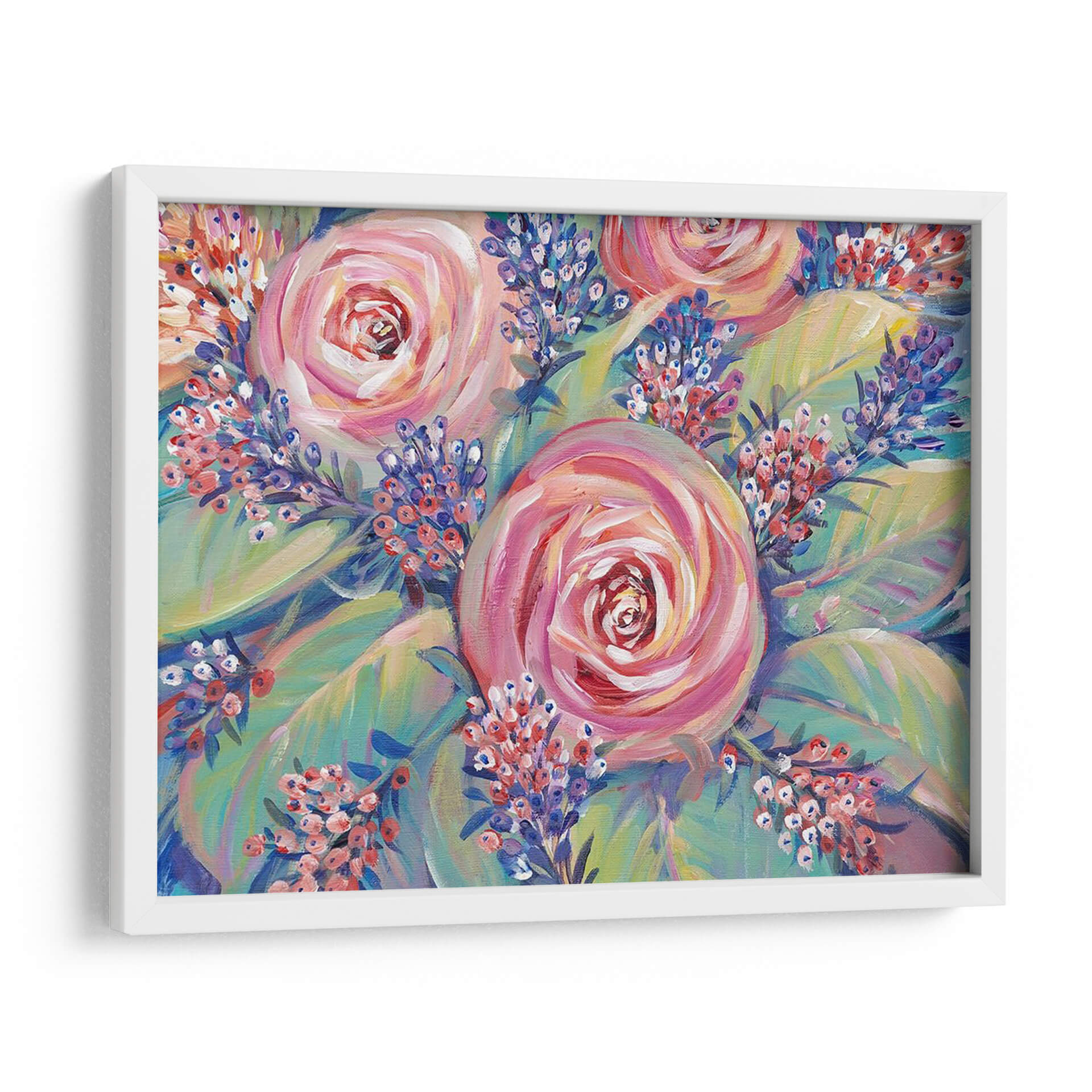 Sumérgete en la belleza etérea de "Sombras De Rosa II", una cautivadora obra de arte de Tim OToole que celebra la delicadeza de la naturaleza. Este cuadro decorativo presenta un vibrante arreglo floral, donde las rosas en tonos pastel, con sus pétalos suavemente arremolinados, se entrelazan con delicados racimos de flores en tonos burdeos y lavanda. El artista emplea una técnica de pintura expresiva, con pinceladas audaces y visibles que dotan a la obra de textura y movimiento. La paleta de colores, dominada por verdes suaves y celestes que contrastan con los cálidos rosas, rojos y toques de morado, crea una atmósfera de ensueño y serenidad. "Sombras De Rosa II" es una pieza que evoca la frescura de un jardín al amanecer y la sutil elegancia de las flores en plena floración. Su estilo impresionista contemporáneo la convierte en un punto focal ideal para salones, dormitorios o cualquier espacio que busque un toque de color y sofisticación botánica. Añade un aire de tranquilidad y encanto a tu hogar con esta pieza floral única, perfecta para complementar decoraciones modernas, clásicas o bohemias.