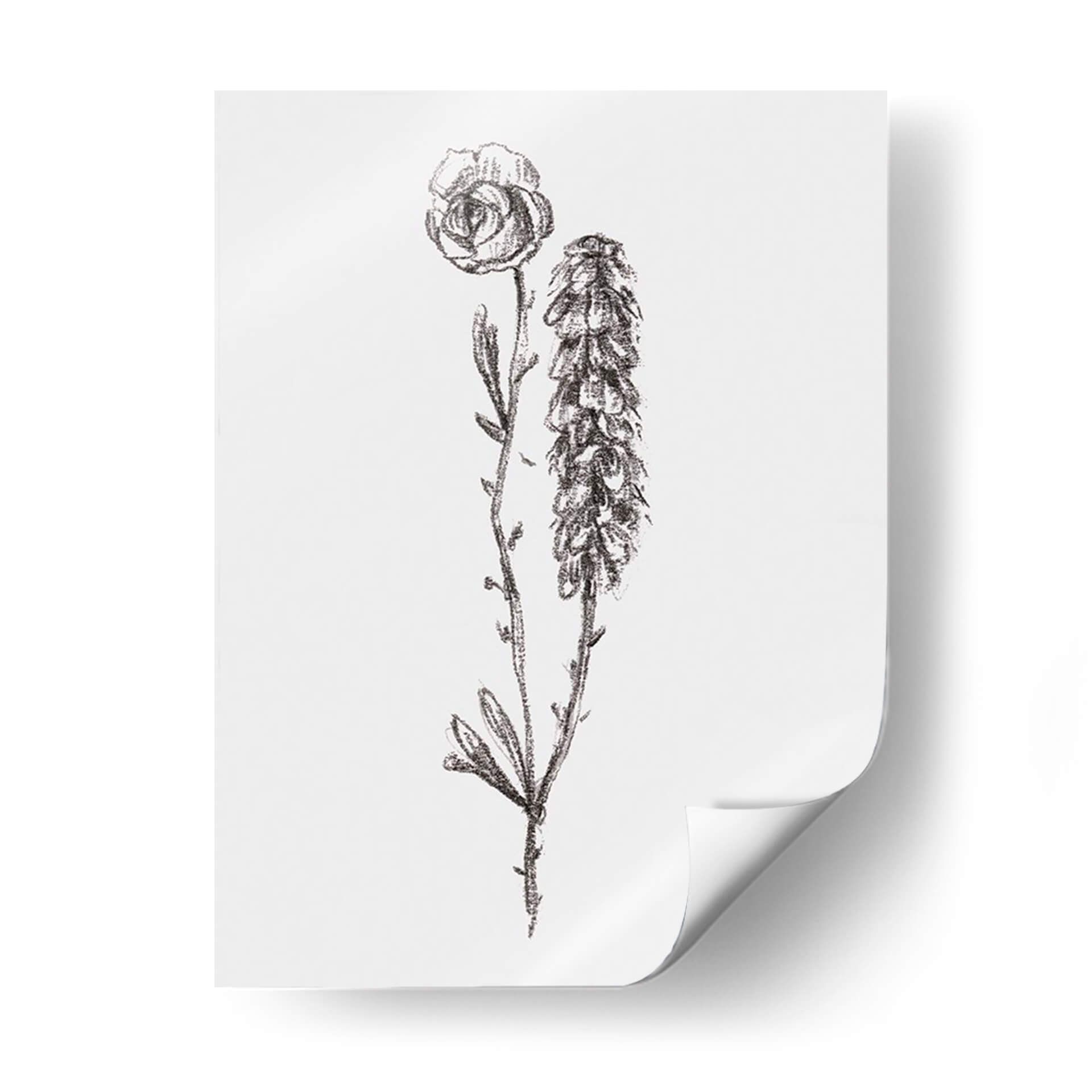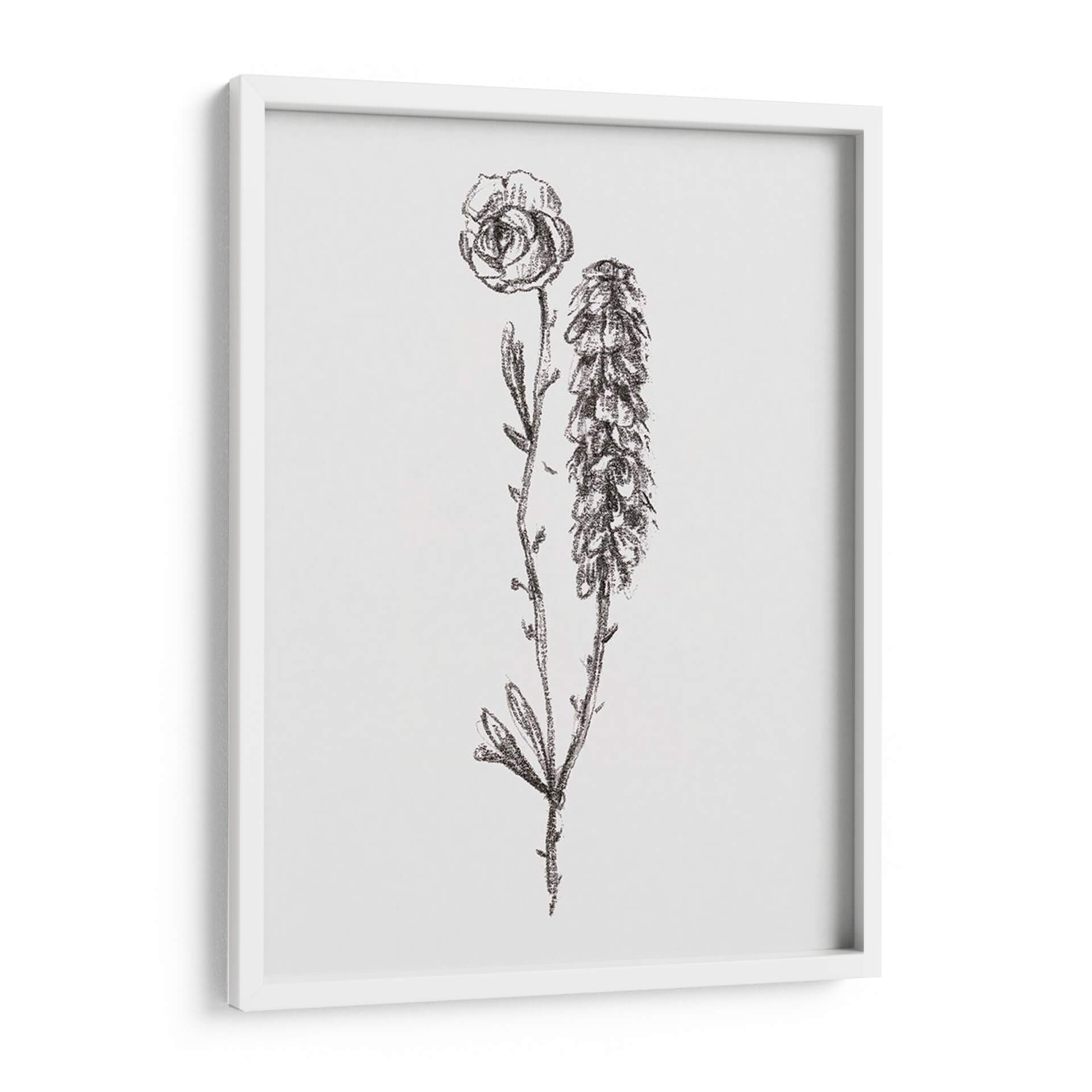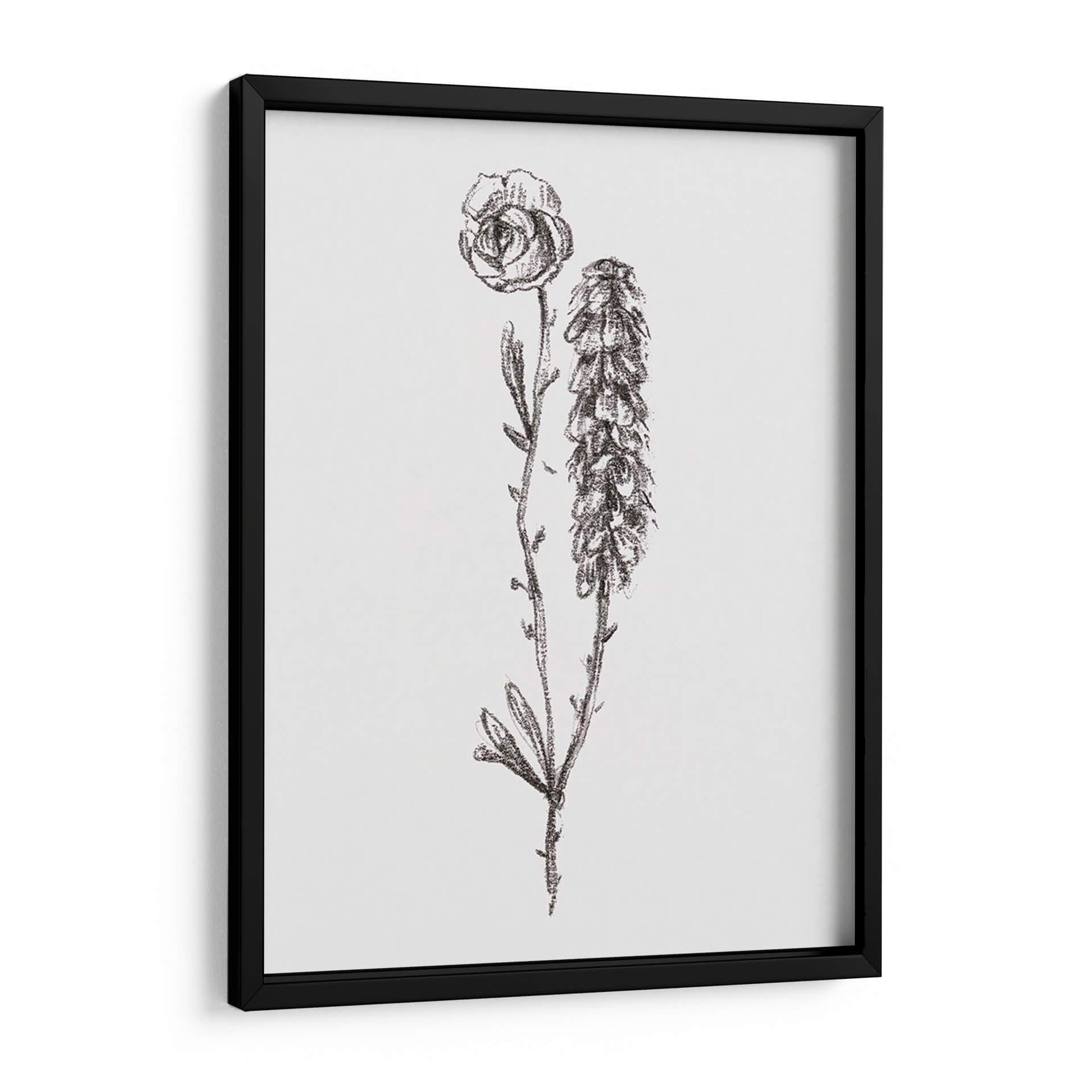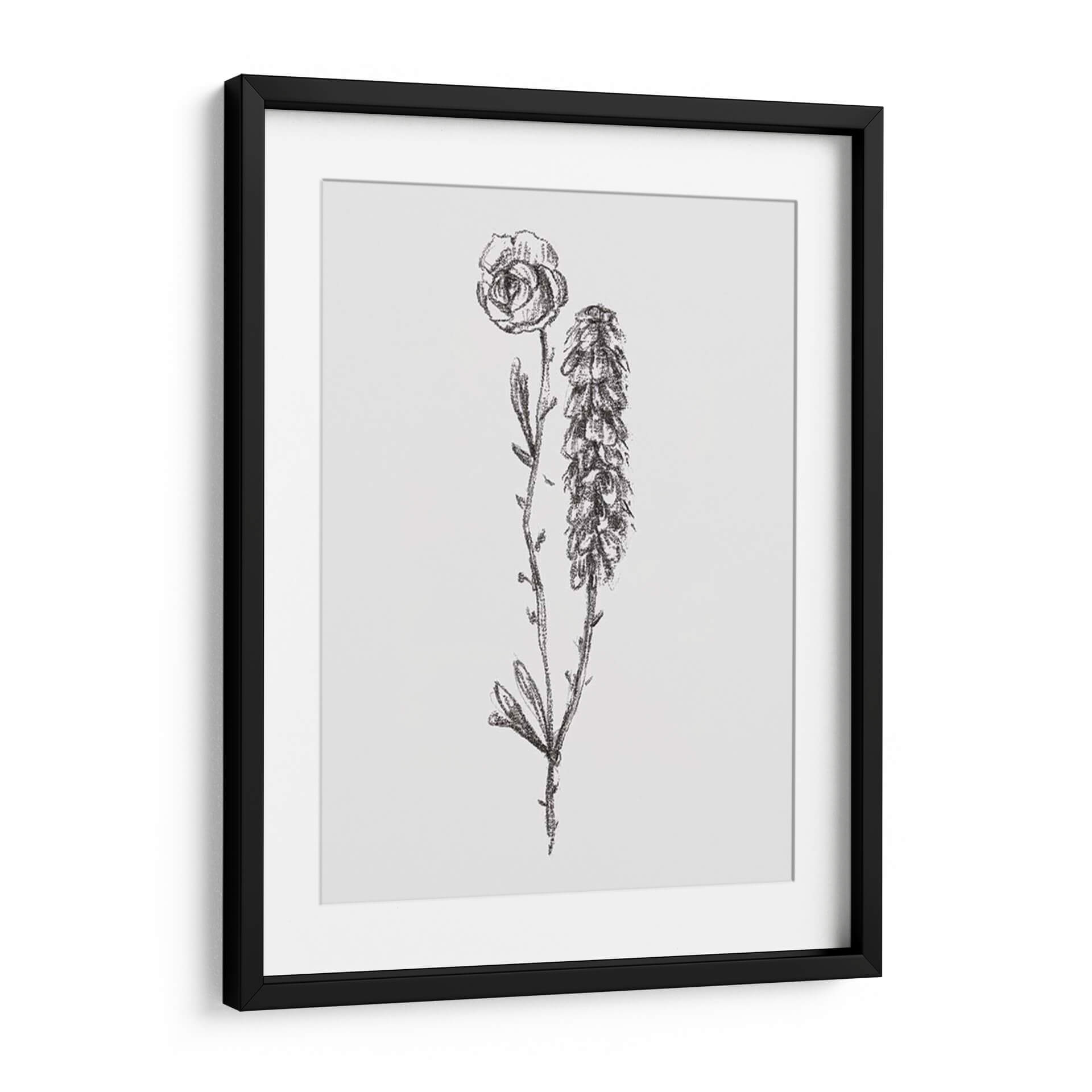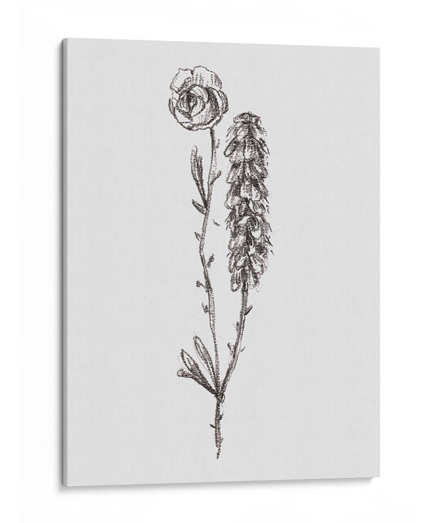 Descubre la delicadeza botánica con "Stem Still Life Ii" de Melissa Wang. Esta cautivadora obra de arte presenta un estudio detallado de dos flores en plena floración, capturadas con un trazo expresivo que evoca la técnica del carboncillo o lápiz. La composición se centra en la elegancia de las formas naturales, con una rosa en la parte superior y una espiga floral alargada debajo, ambas suspendidas en un delicado tallo. La paleta de colores, en escala de grises y blancos, otorga a la pieza una atmósfera serena y atemporal, perfecta para complementar cualquier estilo decorativo, desde el minimalista hasta el rústico o contemporáneo. La simplicidad de la obra, con su fondo neutro, permite que los detalles de las flores sean el foco principal, invitando a la contemplación y aportando un toque de naturaleza sofisticada a tu hogar u oficina. Este cuadro decorativo es ideal para crear un rincón de paz en tu dormitorio, añadir un acento orgánico a tu sala de estar, o infundir calma en tu espacio de trabajo. La maestría de Wang para capturar la esencia de la naturaleza con trazos sutiles y emotivos hace de "Stem Still Life Ii" una adición valiosa a tu colección de arte mural.