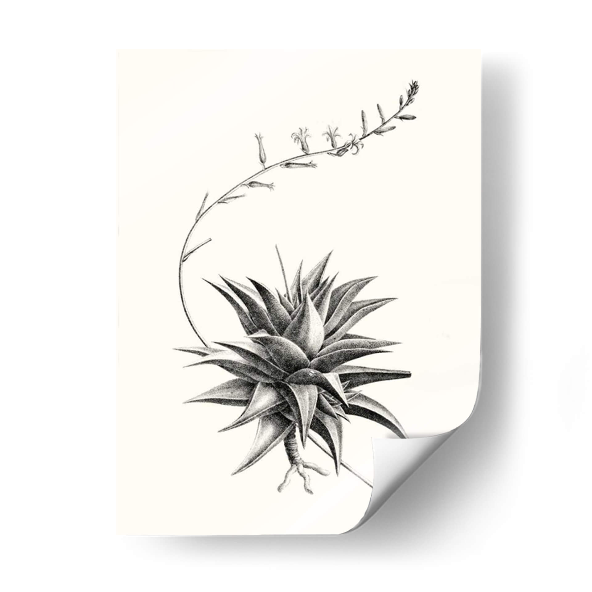 Embellece tu espacio con la delicadeza botánica de "Suculentos Gráficos III", una obra de arte que captura la intrincada belleza de la naturaleza en un estilo gráfico y detallado. Este cuadro decorativo presenta una suculenta central con sus características hojas carnosas y un tallo floral que se extiende elegantemente, todo renderizado en un exquisito blanco y negro con sutiles sombras que aportan profundidad y realismo. La composición, centrada y equilibrada, se asienta sobre un fondo neutro, permitiendo que la planta sea la protagonista indiscutible. Ideal para quienes aprecian el arte botánico y buscan añadir un toque de sofisticación natural a su hogar u oficina. Su estilo gráfico y la paleta monocromática lo hacen increíblemente versátil, combinando a la perfección con decoraciones modernas, minimalistas o de inspiración escandinava. Imagina esta pieza como un punto focal sereno en tu sala de estar, un toque de elegancia botánica en tu dormitorio, o una adición inspiradora a tu espacio de trabajo. "Suculentos Gráficos III" no es solo una decoración, es una celebración de la forma y la textura, trayendo la tranquilidad del mundo natural al interior con un diseño contemporáneo y atemporal. Transforma tus paredes en una galería personal con este impresionante cuadro decorativo que evoca calma y apreciación por los detalles botánicos.