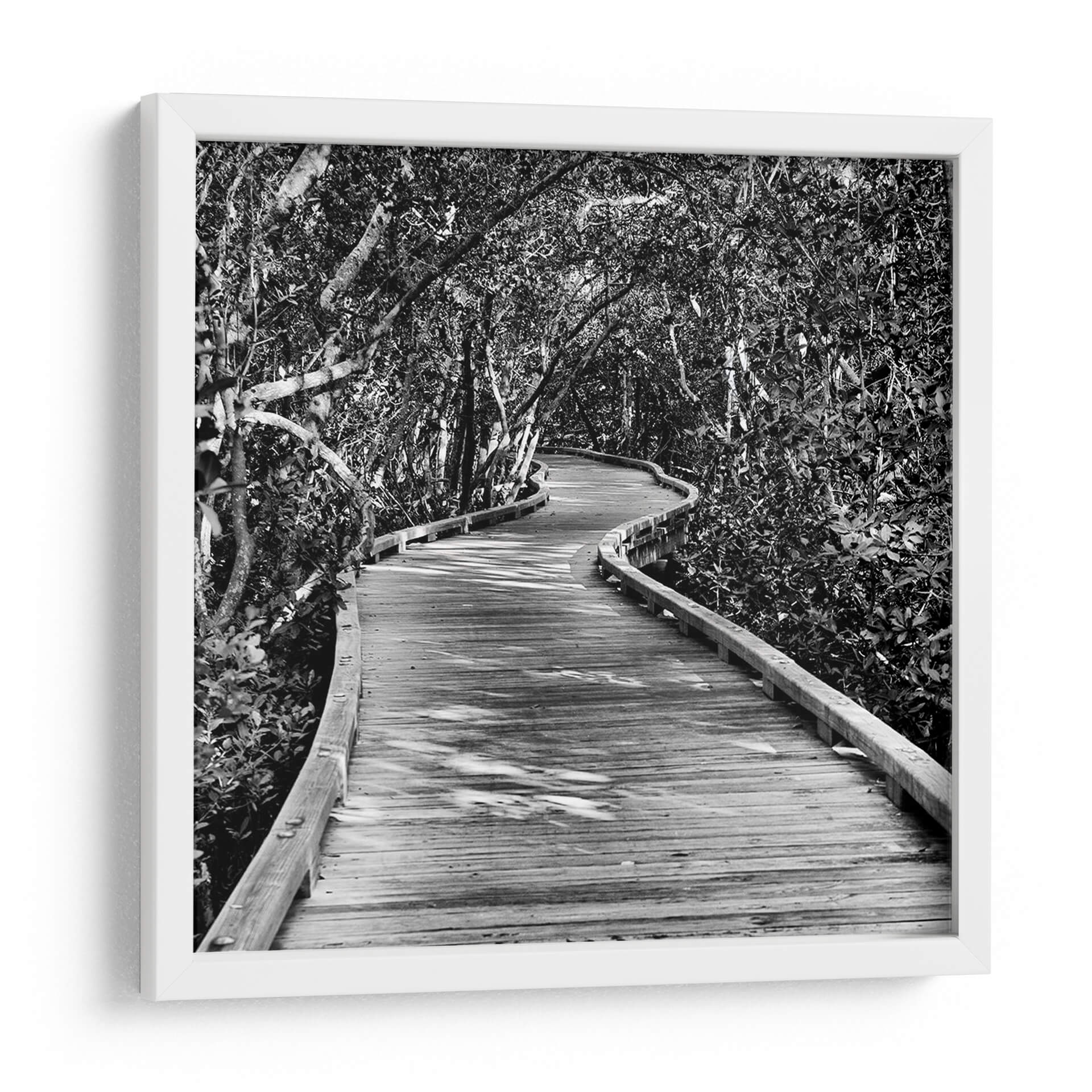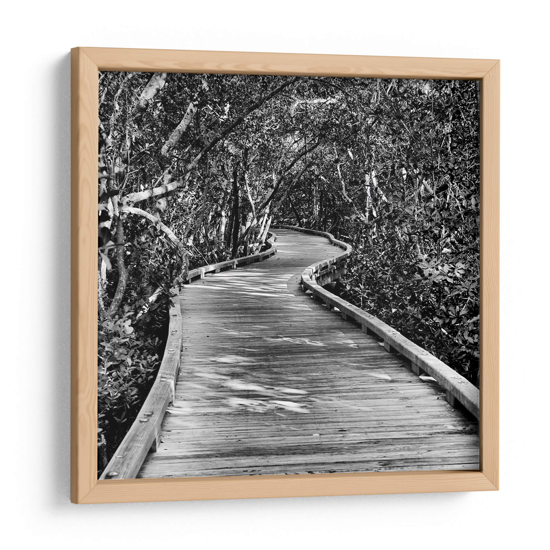 Adéntrate en la serenidad de la naturaleza con "Sur De Southern Swing Ii", una cautivadora obra de arte en blanco y negro que captura la esencia de un sendero de madera serpenteante a través de un exuberante bosque. La fotografía, con su tratamiento monocromático, realza la textura y la profundidad de cada tablón de madera y la intrincada red de ramas y follaje que lo rodean. La luz del sol se filtra a través de las hojas, proyectando sombras danzantes sobre el camino, invitando a una contemplación pacífica. Este cuadro decorativo es perfecto para añadir un toque de tranquilidad y conexión con la naturaleza a cualquier espacio. Su composición lineal guía la mirada del espectador hacia el horizonte, sugiriendo un viaje o una exploración. Ideal para salas de estar, dormitorios o incluso oficinas, este arte de pared evoca una sensación de calma, aventura y descubrimiento. Transforma tu hogar en un santuario de paz con esta pieza atemporal que celebra la belleza cruda y sin adornos del mundo natural. El estilo fotográfico y la ausencia de color lo convierten en una adición versátil a cualquier esquema de decoración, desde lo moderno hasta lo rústico.