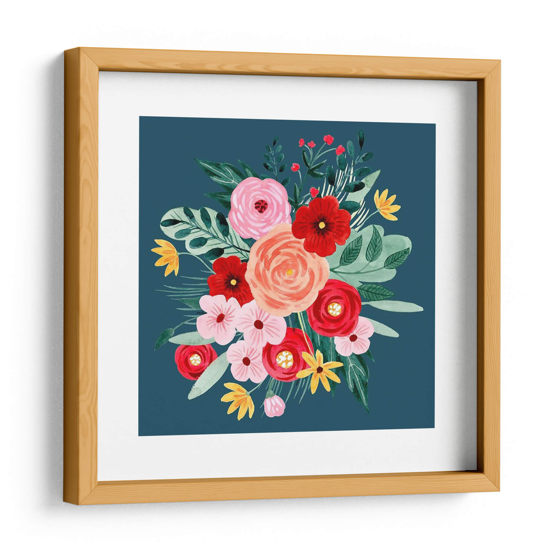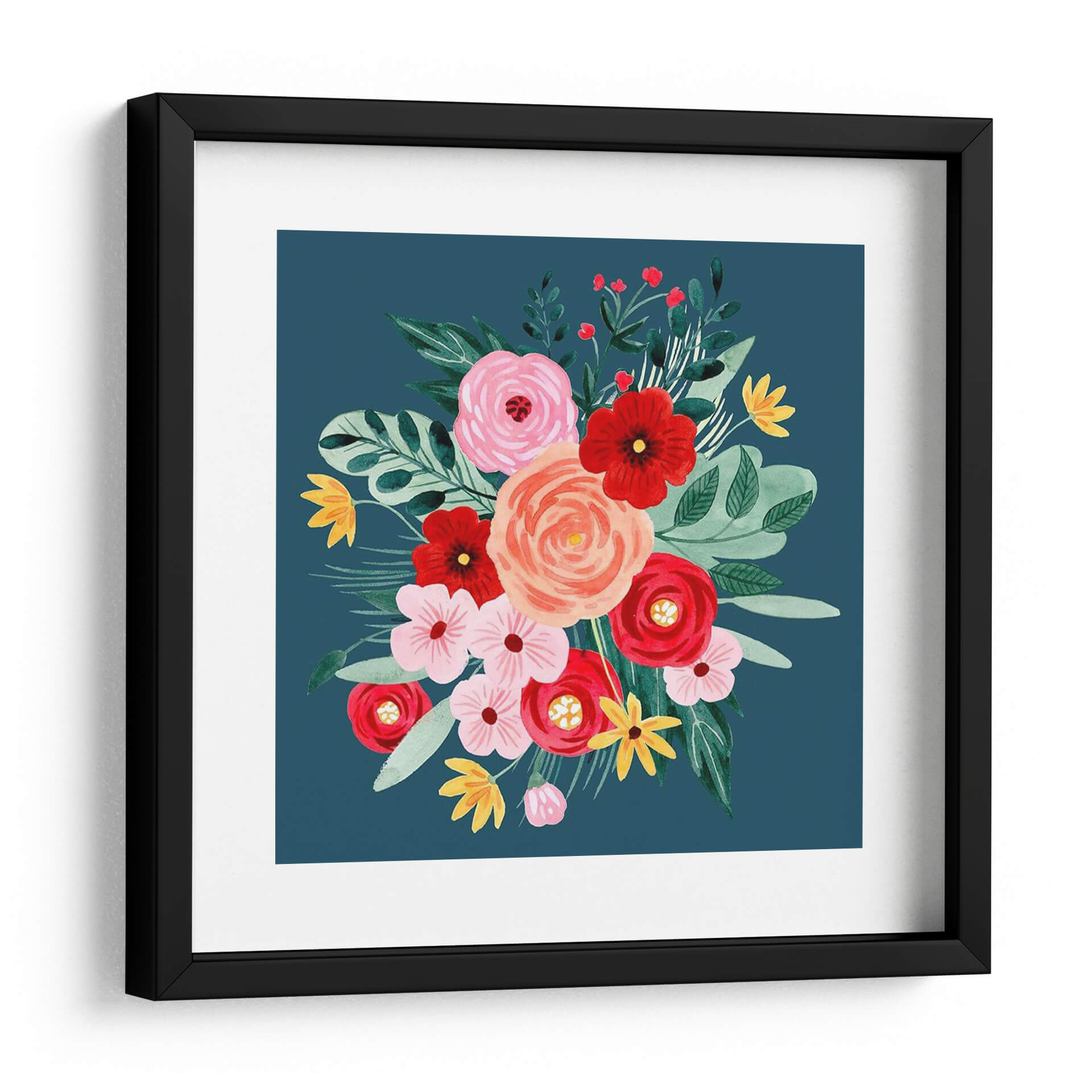 Transforma tu espacio con el vibrante cuadro decorativo 'Sweet Hearts Bouquet II' de Grace Popp. Esta exquisita obra de arte captura un exuberante ramo de flores silvestres, rebosante de vida y color. Predominan los tonos rosas suaves, rojos intensos y amarillos alegres, contrastando maravillosamente con el profundo fondo azul marino. La técnica de acuarela, con sus pinceladas sueltas y translúcidas, imparte una sensación de ligereza y frescura, evocando la belleza efímera de la naturaleza. La composición del ramo, una mezcla armoniosa de grandes y pequeñas flores junto a hojas verdes frondosas, crea un punto focal dinámico y encantador. Es la pieza perfecta para infundir alegría y un toque de naturaleza a cualquier habitación, ideal para salones modernos, dormitorios acogedores o incluso como un acento inspirador en una oficina. Este cuadro decorativo floral es más que una simple imagen; es una celebración de la belleza botánica que trae consigo una atmósfera de optimismo y vitalidad a tu hogar, invitando a la contemplación y al aprecio por el arte contemporáneo.
