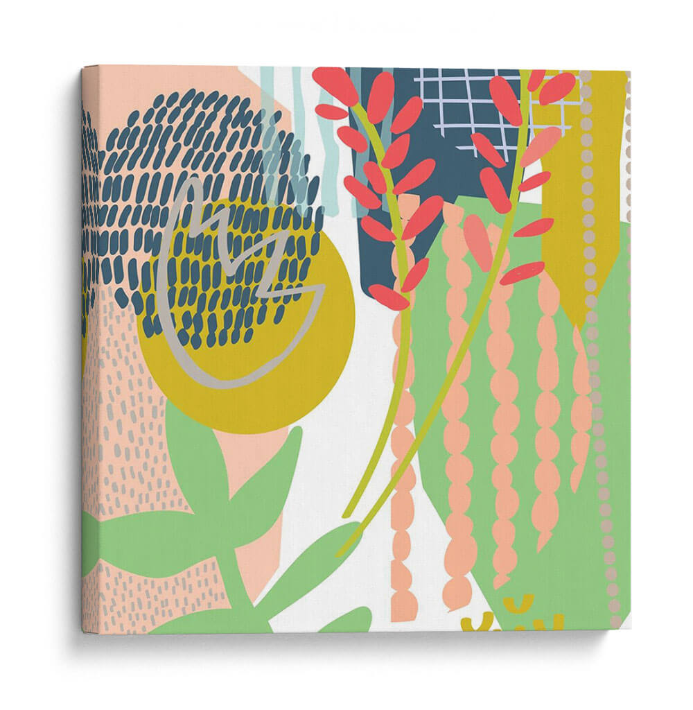 Sumérgete en un mundo de color y forma con "Swizzle I", una obra de arte contemporáneo de Chariklia Zarris que transformará cualquier espacio. Este cuadro decorativo abstracto combina texturas y patrones vibrantes, creando una composición dinámica y alegre. La paleta de colores, dominada por verdes frescos, toques de coral intenso, amarillos solares y azules profundos, evoca una sensación de vitalidad y optimismo. Las formas orgánicas se entrelazan con elementos geométricos, sugiriendo un equilibrio entre la naturaleza y la estructura. Cada elemento visual parece bailar en el lienzo, invitando a la contemplación y añadiendo un toque de sofisticación moderna a tu hogar u oficina. Ideal para quienes buscan una pieza que irradie energía positiva y estilo, "Swizzle I" es un punto focal cautivador que dialoga con el espacio, aportando vida y carácter. Descubre cómo esta obra puede inspirar conversaciones y elevar la estética de tu decoración, convirtiéndose en el corazón de tu ambiente.