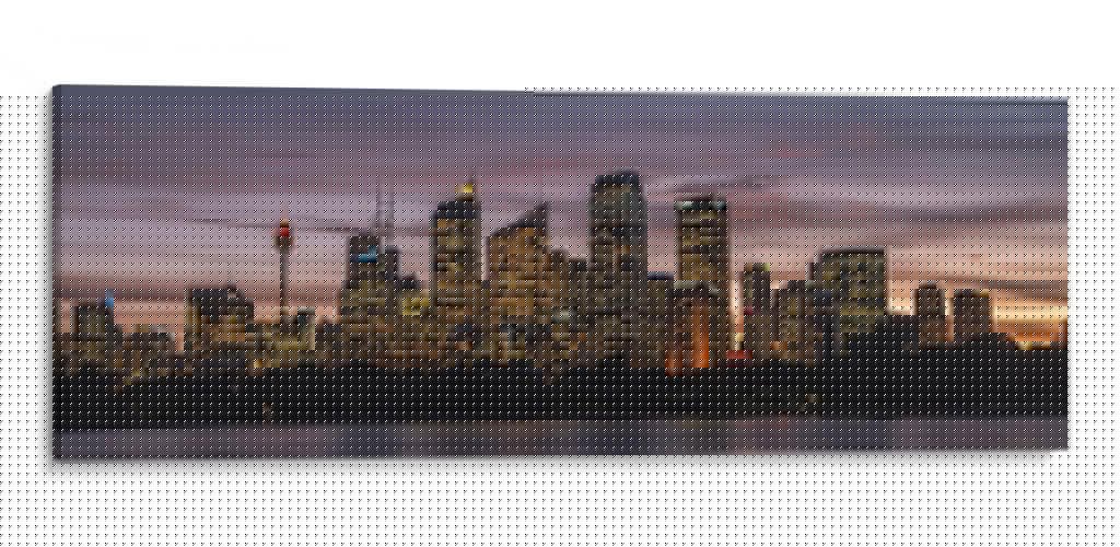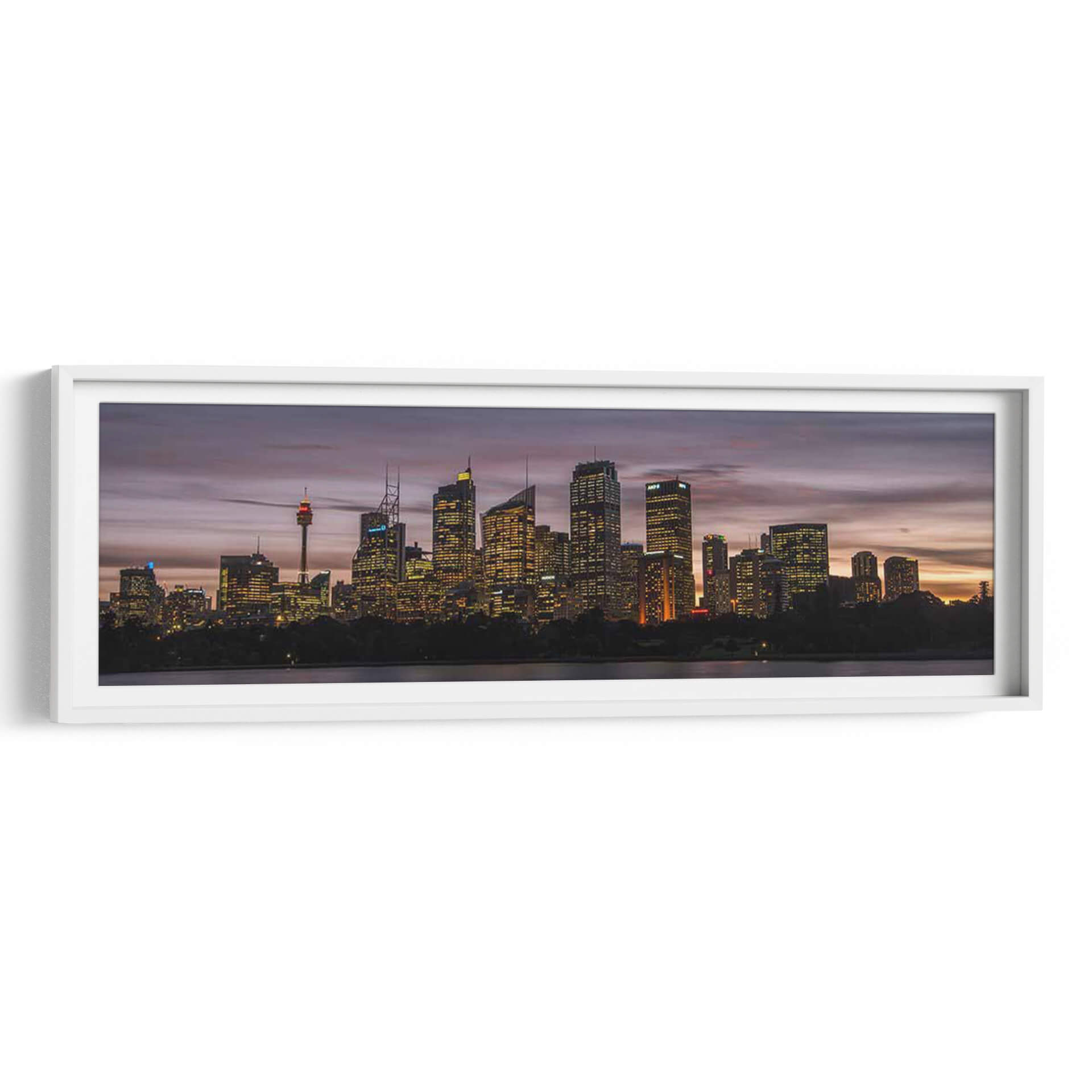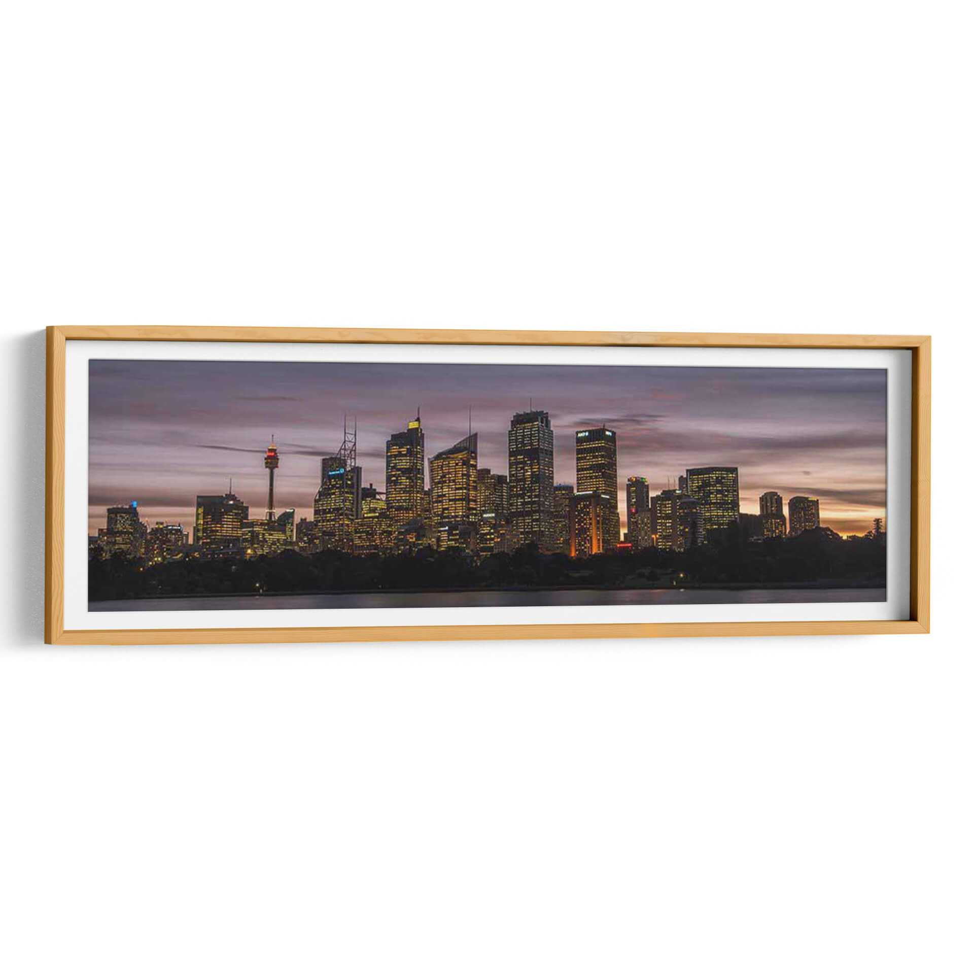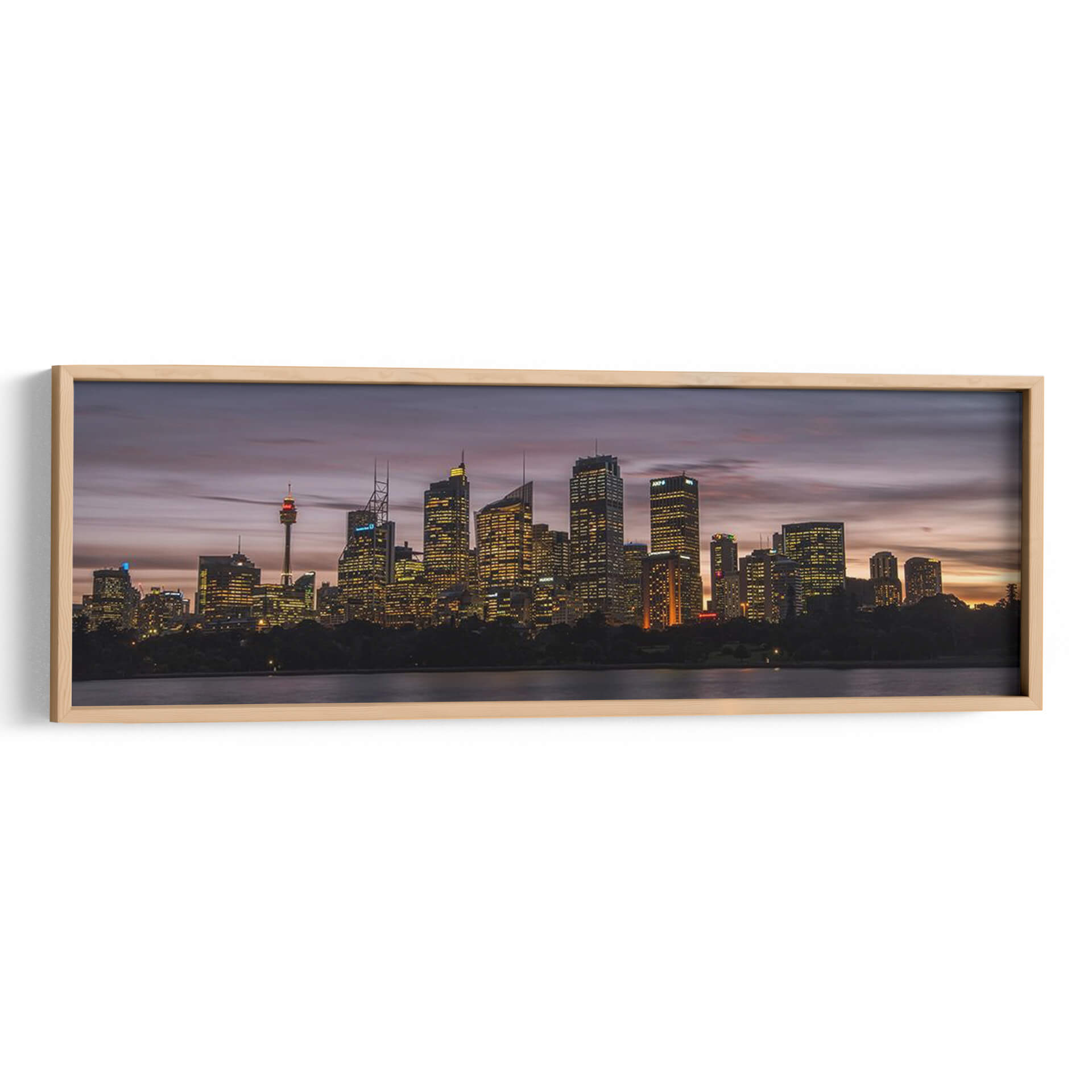Captura la esencia vibrante de una metrópoli con este impresionante cuadro decorativo de Sydney al atardecer. La obra maestra, titulada 'Sydney Skyline' del artista Danny Head, te transporta al corazón de la ciudad con su espectacular vista panorámica. Los rascacielos iluminados emergen de la oscuridad, creando un contraste cautivador contra el cielo crepuscular teñido de tonos púrpuras y anaranjados. La paleta de colores, dominada por luces cálidas y doradas que brillan desde las ventanas de los edificios, evoca una sensación de energía y sofisticación urbana. La silueta oscura de los árboles y el agua serena en primer plano añaden profundidad y un toque de tranquilidad a la escena, equilibrando la magnificencia de la arquitectura moderna. Este cuadro decorativo es perfecto para infundir vida y estilo en cualquier espacio, ya sea tu sala de estar, oficina o dormitorio. Ideal para quienes aprecian la fotografía urbana, las vistas panorámicas y el arte que celebra la arquitectura y la vitalidad de las grandes ciudades. Añade un toque de elegancia cosmopolita a tu hogar con esta representación artística de Sydney.