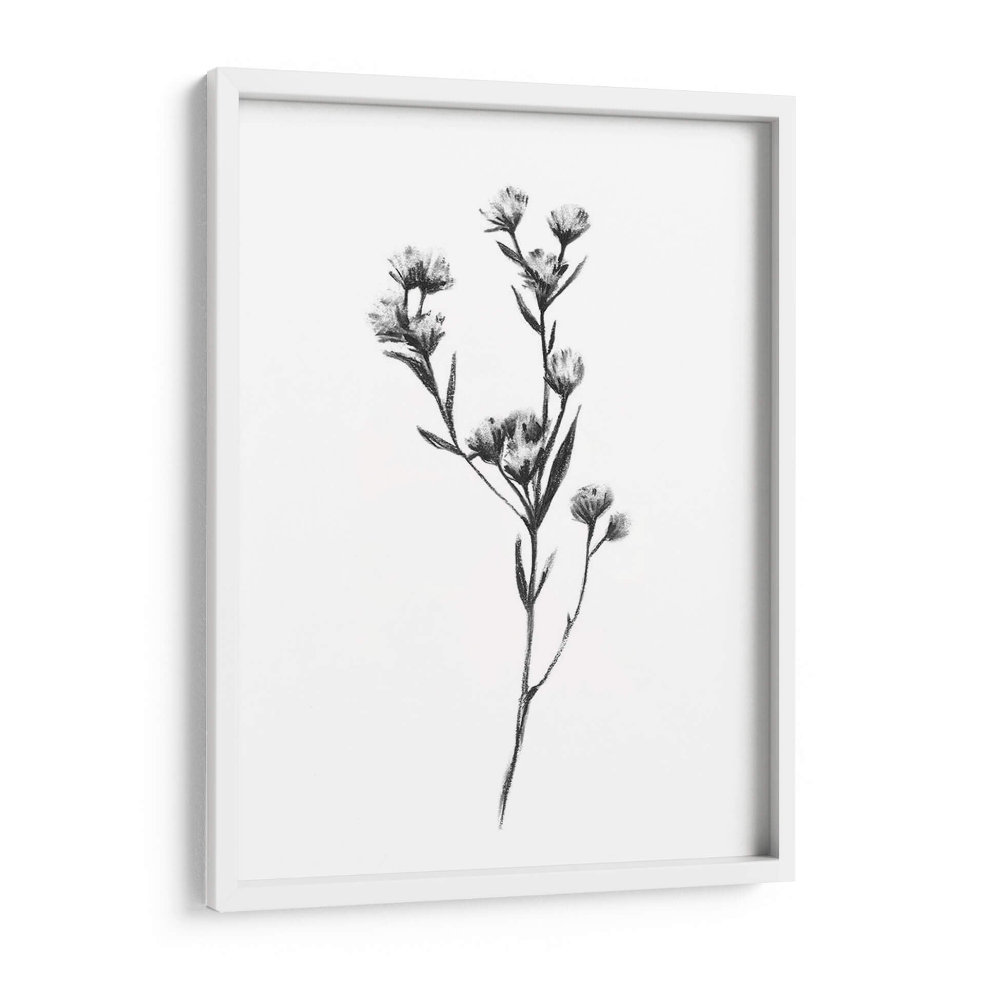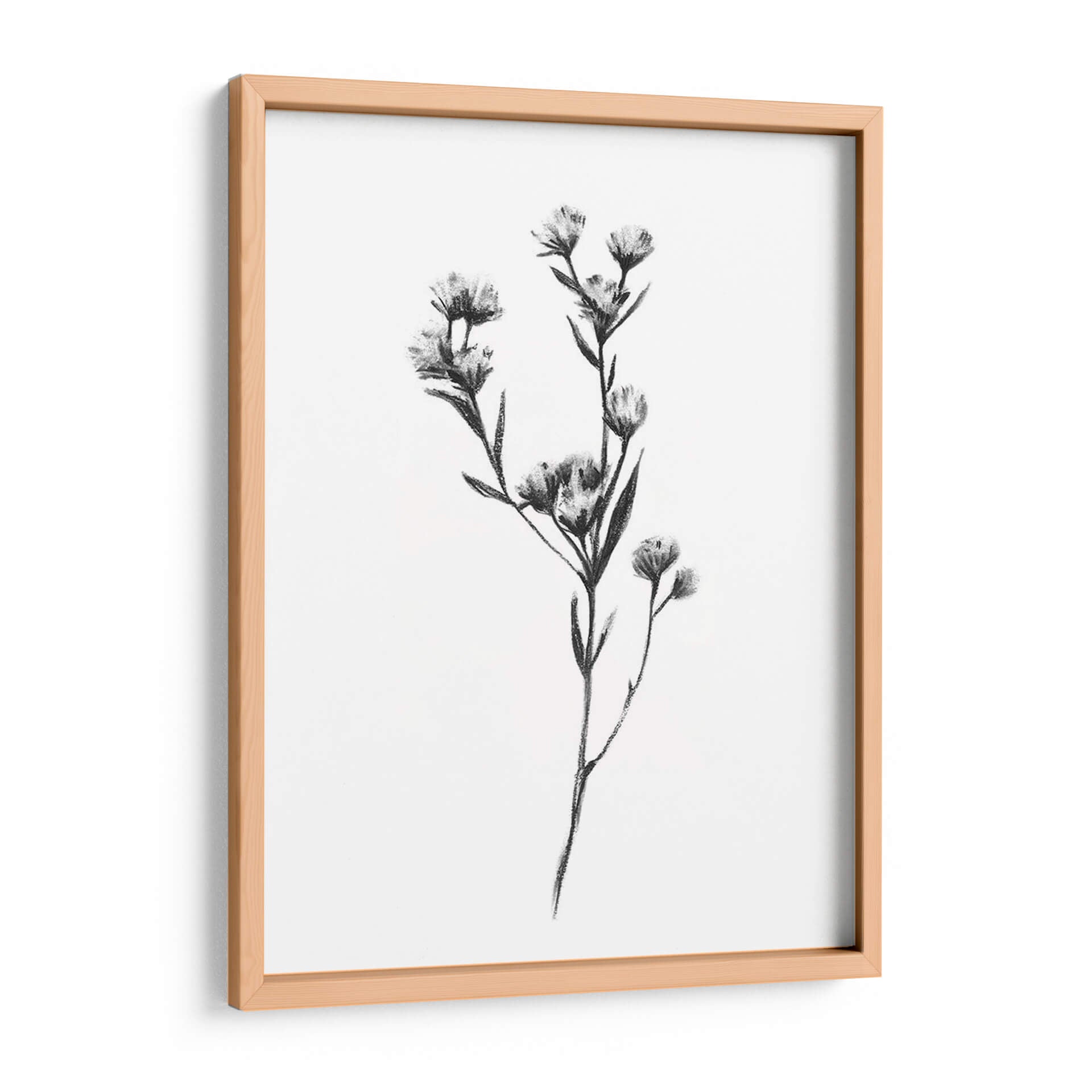 Sumérgete en la delicadeza y el encanto natural con 'Tabaño Salvaje I', una obra de arte que captura la esencia de la botánica con una sensibilidad única. Creada por la artista Emma Scarvey, esta pieza presenta una detallada representación de una rama floral, dibujada con trazos que evocan la técnica del carboncillo o grafito. La composición se centra en la elegancia sutil de las flores pequeñas y sus tallos esbeltos, dispuestos de forma orgánica sobre un fondo limpio y luminoso. La paleta de colores es intencionadamente limitada a tonos de gris y blanco, lo que confiere a la obra una atmósfera de serenidad, calma y minimalismo. Cada flor, con sus pétalos texturizados y capullos delicados, parece capturar un instante efímero, invitando a la contemplación y la apreciación de la belleza en los detalles. Este cuadro decorativo es ideal para espacios que buscan un toque de sofisticación discreta y natural. Su estilo atemporal lo hace perfecto para complementar la decoración de un dormitorio sereno, un estudio tranquilo o una sala de estar moderna que busque un acento orgánico. 'Tabaño Salvaje I' no es solo una imagen, sino una invitación a conectar con la naturaleza y la expresión artística pura, añadiendo una dimensión de paz y elegancia a tu hogar u oficina.