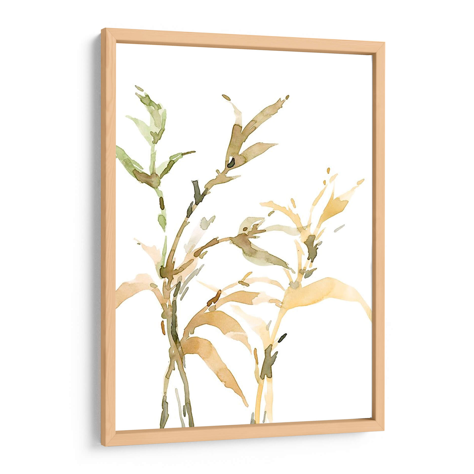 Aporta una atmósfera de serenidad natural a tu hogar u oficina con 'Tallos II', una cautivadora obra de arte de Samuel Dixon. Esta pieza se caracteriza por su delicada representación de elementos botánicos a través de una técnica de acuarela fluida y etérea. Las suaves pinceladas dan vida a tallos y hojas en tonos tierra, verdes apagados y ocres, creando una paleta de colores orgánica y armoniosa que evoca la tranquilidad de un jardín al amanecer. La composición minimalista, con el fondo blanco puro, permite que la sutileza de las formas botánicas sea la protagonista indiscutible, añadiendo un toque de elegancia natural sin abrumar el espacio. 'Tallos II' es la elección perfecta para quienes buscan infundir calma y sofisticación en ambientes modernos, minimalistas o de estilo escandinavo. Imagina este cuadro decorativo como un punto de enfoque suave en tu sala de estar, un toque de naturaleza serena en tu dormitorio o una adición inspiradora a tu espacio de trabajo. Su diseño atemporal y su ejecución artística lo convierten en una pieza versátil que complementa una variedad de estilos decorativos, aportando un respiro visual y una conexión sutil con la naturaleza. Descubre la belleza sutil de la naturaleza en su máxima expresión con esta obra maestra.
