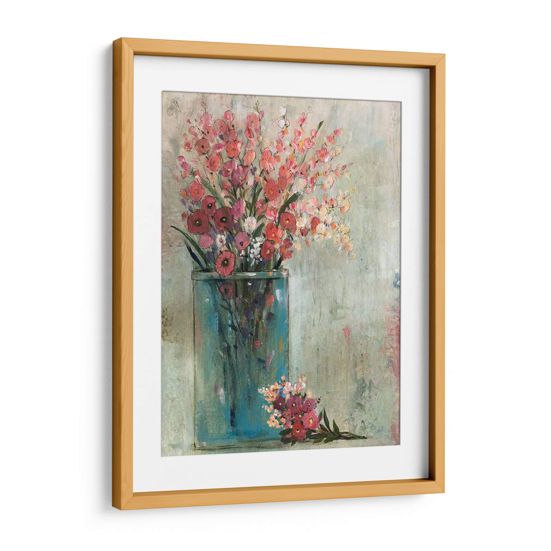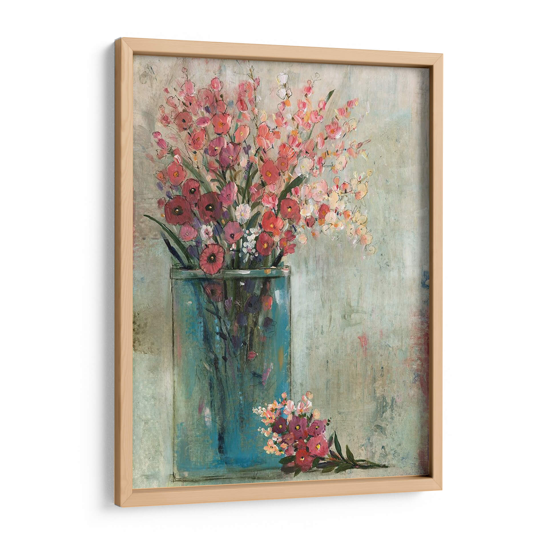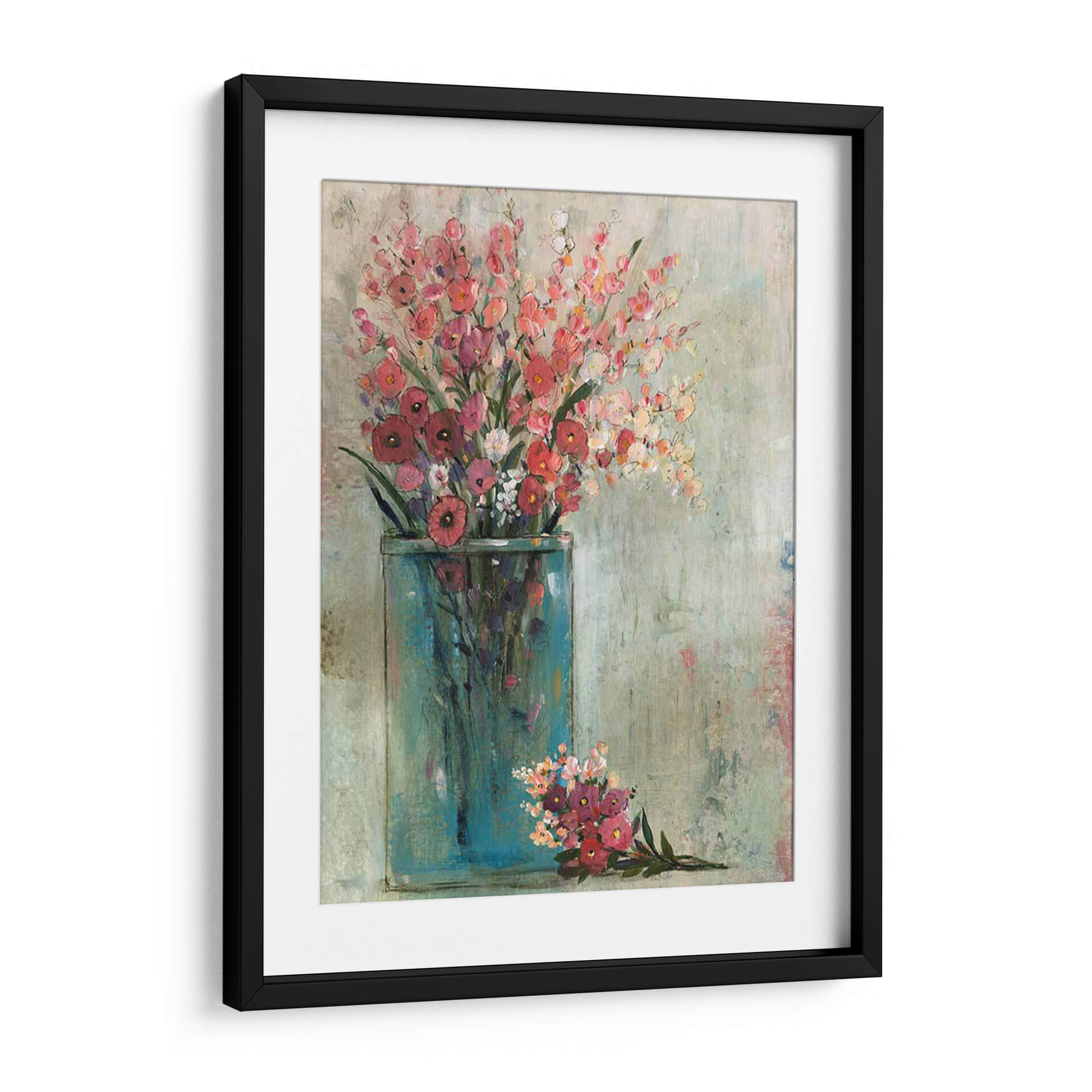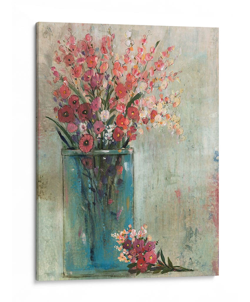 Embellece tu hogar con el cuadro decorativo "Tarro Azul II" de Tim OToole, una obra que captura la delicadeza y vitalidad de un ramo de flores frescas. Este lienzo evoca una sensación de serenidad y alegría, con una paleta de colores que combina rosas vibrantes, rojos profundos y toques de blanco y amarillo, todo ello enmarcado por el intenso azul turquesa de un tarro estilizado. La técnica pictórica, con pinceladas sueltas y una textura que recuerda a un lienzo envejecido, confiere a la pieza un aire bohemio y contemporáneo. La composición, centrada en el exuberante arreglo floral, permite que la obra se integre armónicamente en diversos estilos decorativos, desde el rústico hasta el moderno. Es una elección perfecta para dar vida a salones, comedores o dormitorios, aportando un toque de naturaleza y sofisticación. Cada detalle de "Tarro Azul II" está diseñado para inspirar tranquilidad y añadir un punto focal de belleza a tu espacio. Descubre la magia de transformar tu ambiente con arte que habla de vida y color.