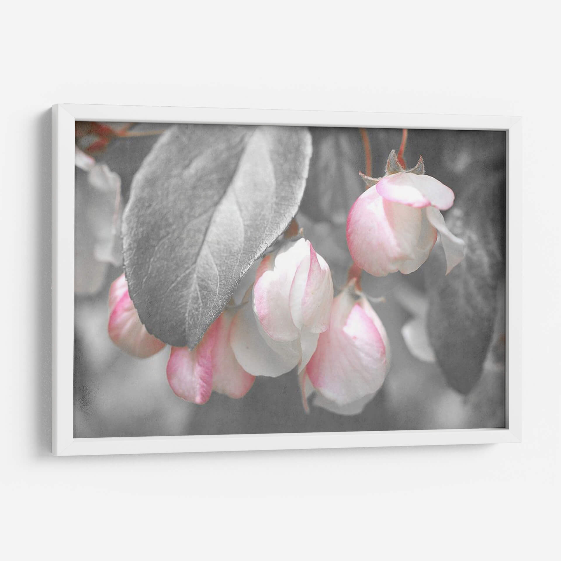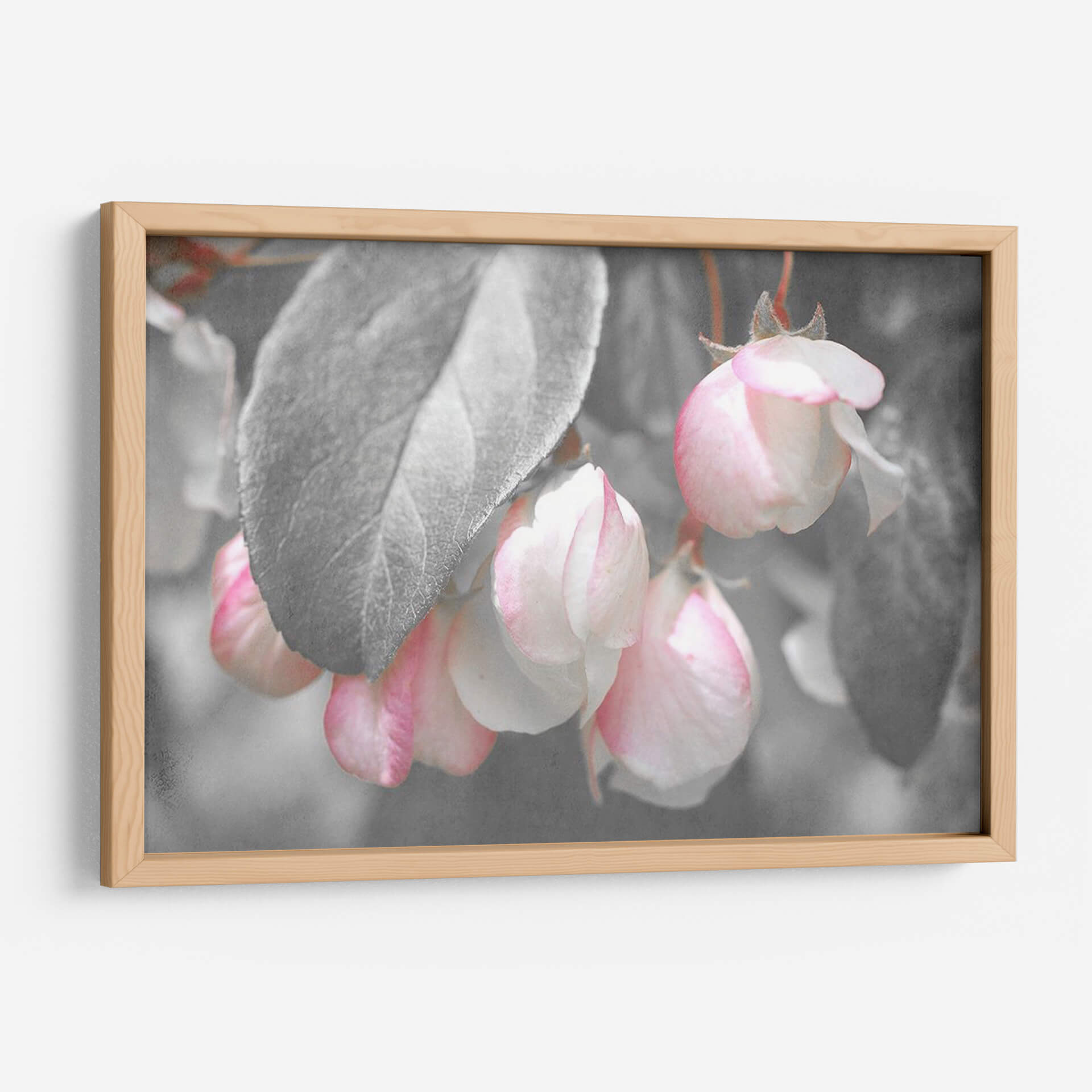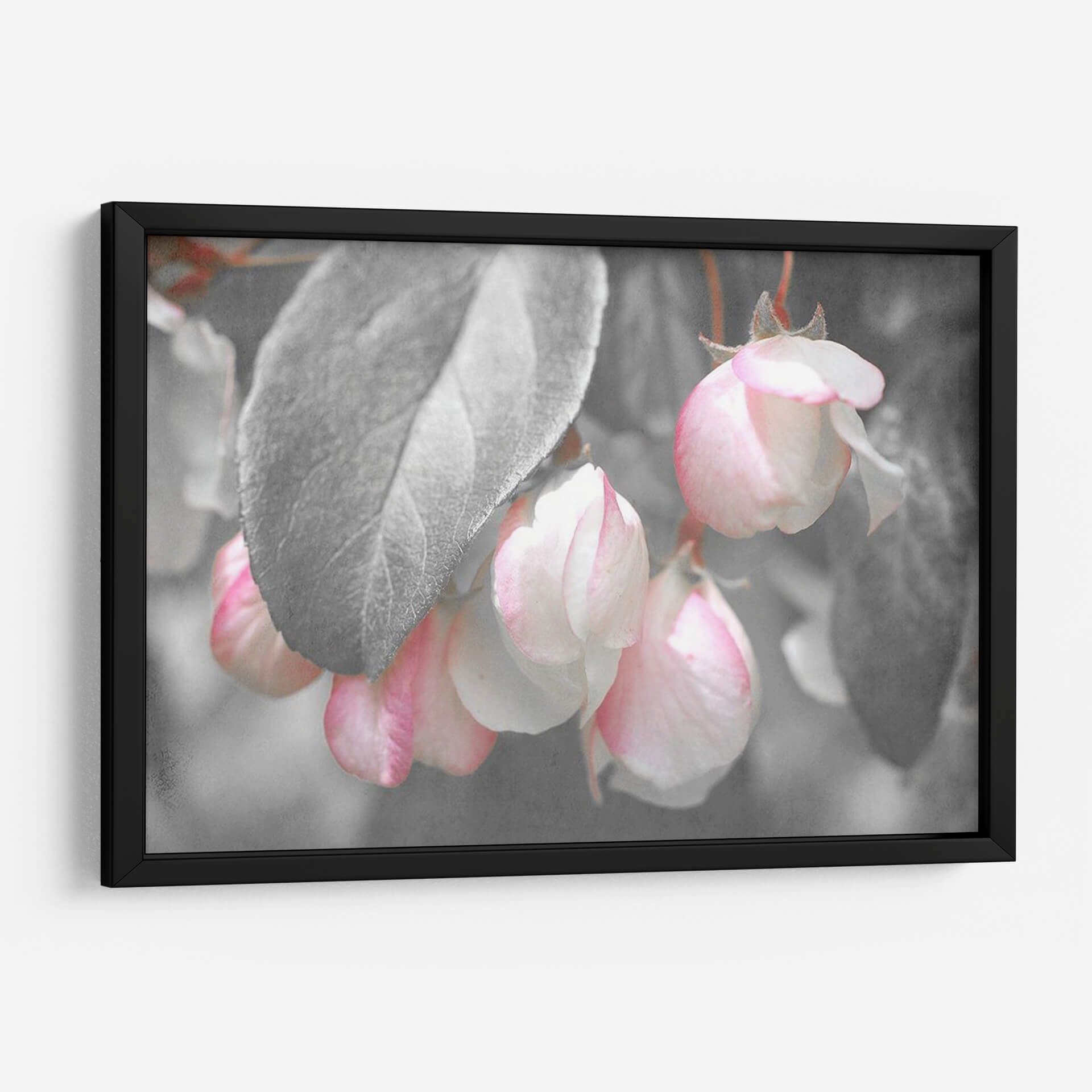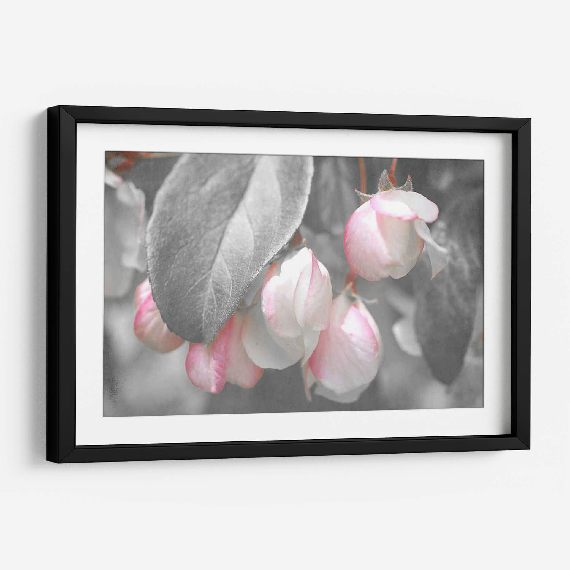 Sumérgete en la delicadeza y el encanto de "Terciopelo Gris I", una obra maestra de Judy Stalus que captura la efímera belleza de las flores de cerezo en pleno brote. Esta pieza se distingue por su paleta de colores sutilmente selectiva, donde los delicados tonos rosados y blancos de los capullos florales emergen de un fondo predominantemente grisáceo y texturizado. La composición se centra en un grupo de flores a punto de abrirse, invitando a la contemplación y la serenidad. Una hoja grande, con una textura rica y detallada, aporta un contraste visual y táctil, anclando la escena y realzando la fragilidad de los pétalos. El estilo fotográfico, con un enfoque suave y una atmósfera etérea, evoca una sensación de calma y renovación, perfecta para espacios que buscan un toque de naturaleza refinada. Este cuadro decorativo es ideal para añadir un acento de color suave y una atmósfera de tranquilidad a dormitorios, salas de estar o cualquier rincón que necesite un respiro visual. "Terciopelo Gris I" es más que una simple imagen; es una invitación a apreciar la belleza en los pequeños detalles y la delicadeza de la primavera, transformando tu hogar en un santuario de paz y elegancia contemporánea.