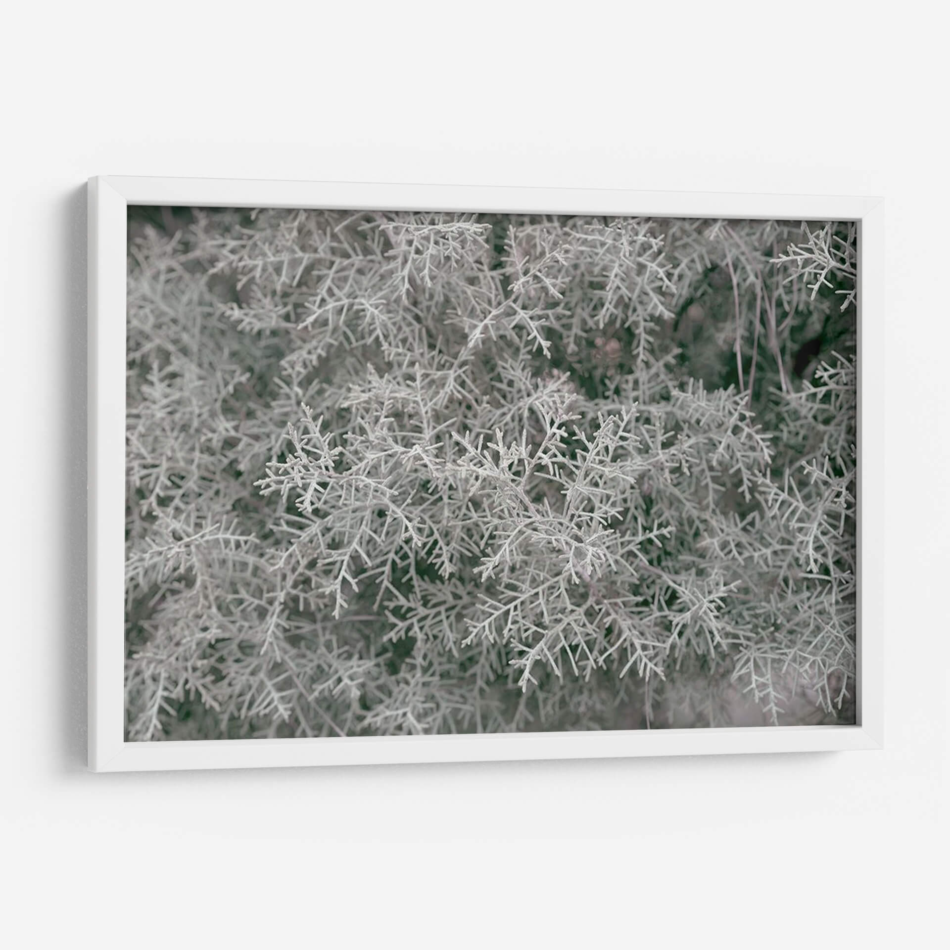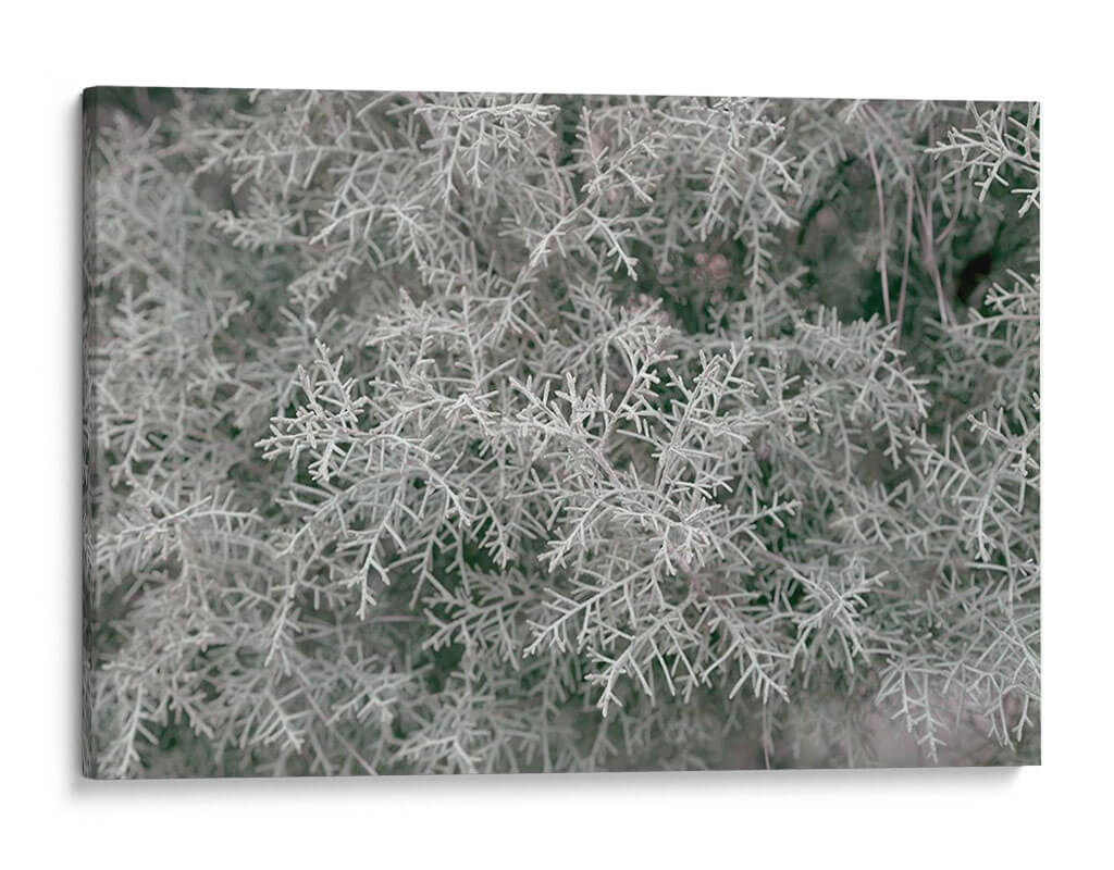 Sumérgete en la serena belleza de "Texturas De Naturalezas Vi", una obra de arte que captura la delicadeza de la naturaleza con un enfoque macro. Este cuadro decorativo te transporta a un bosque invernal o a un paisaje etéreo, donde intrincadas ramas cubiertas de escarcha se entrelazan creando un patrón hipnotizante. La paleta de colores, dominada por suaves tonos grises y verdes apagados, evoca una atmósfera de calma, tranquilidad y reflexión. La composición detallada resalta la complejidad orgánica de la flora, invitando a la contemplación de las texturas sutiles y los patrones repetitivos que la naturaleza crea de forma tan magistral. Ideal para aquellos que buscan añadir un toque de sofisticación natural y serenidad a su hogar u oficina, este arte de pared es perfecto para espacios que requieren un respiro visual. Transforma tu sala de estar, dormitorio o estudio en un oasis de paz con este impresionante cuadro abstracto inspirado en la naturaleza, que combina la elegancia contemporánea con la atemporalidad del mundo natural. Una pieza que invita a la pausa y la admiración.