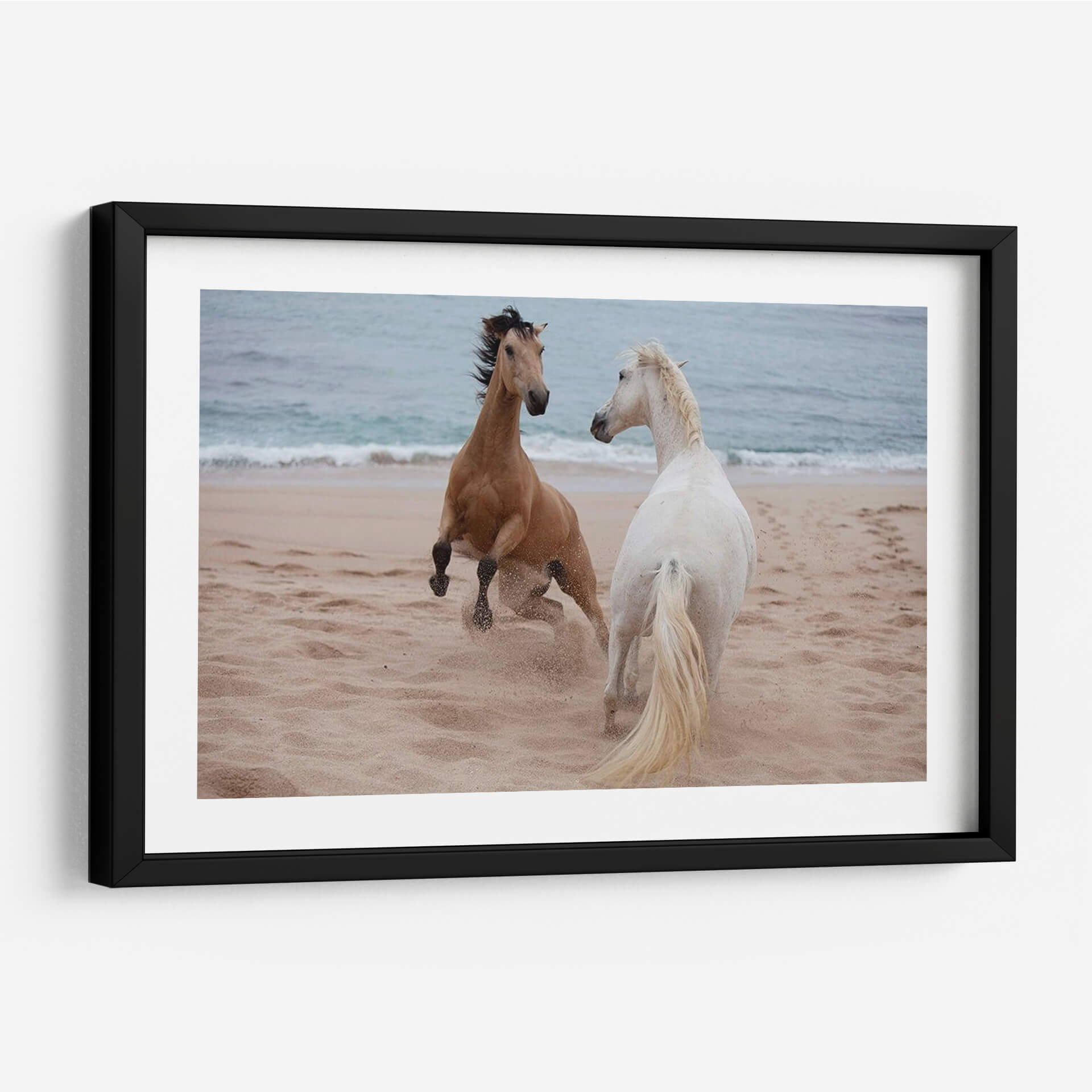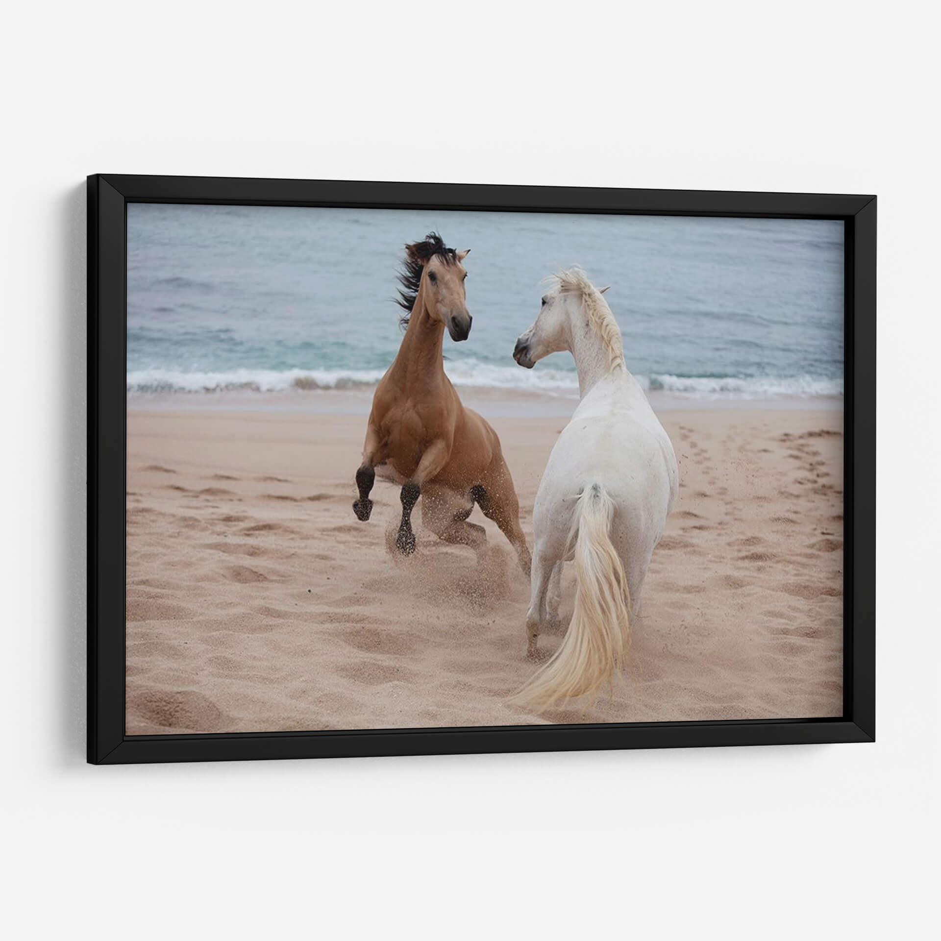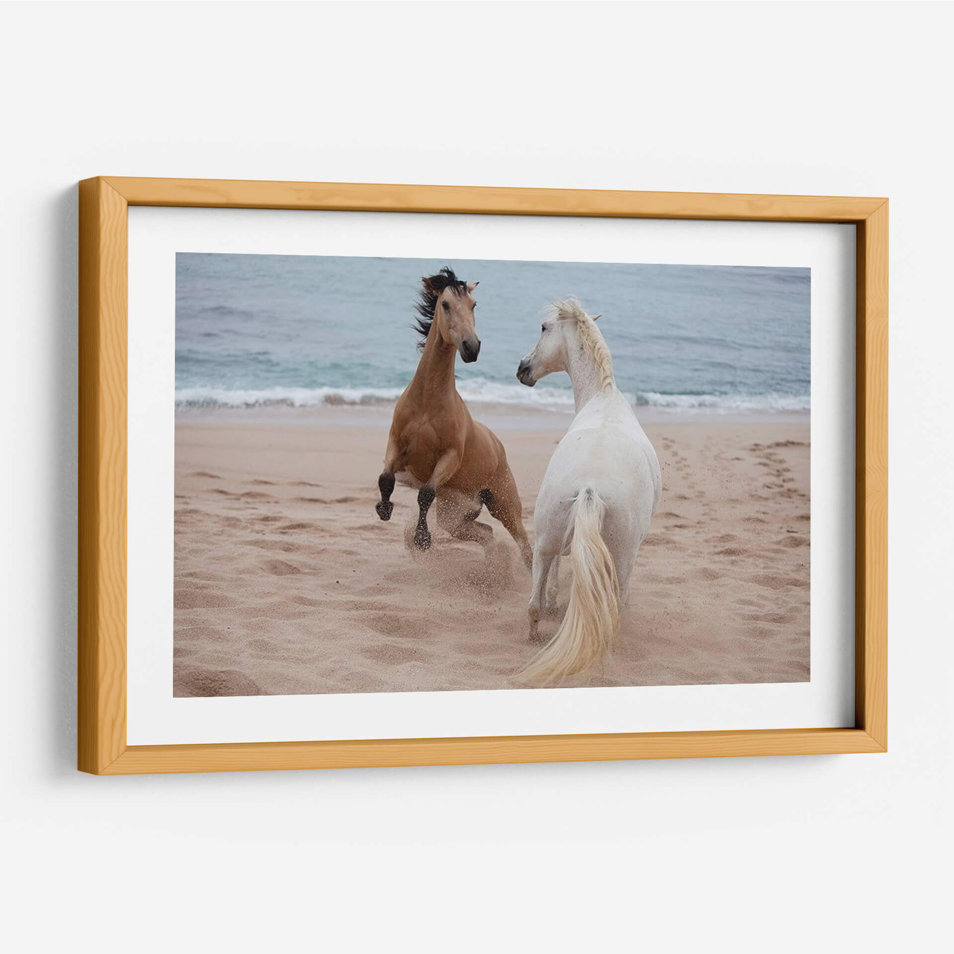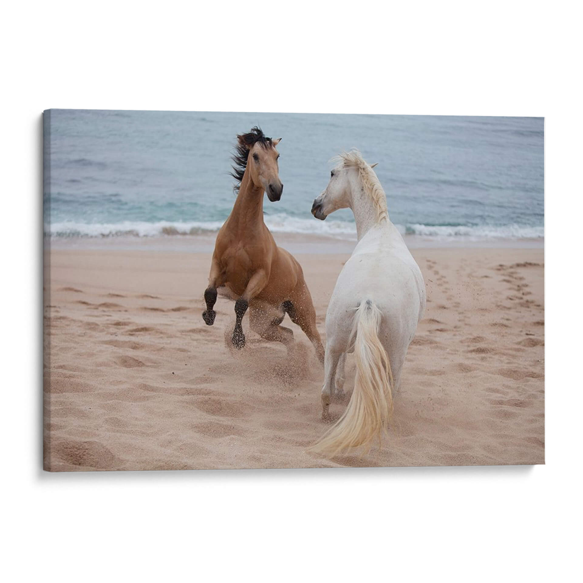 Captura la energía indómita y la majestuosidad de la naturaleza con este cautivador cuadro decorativo de dos caballos jugando en la playa. La obra de Allen Friedlander, titulada 'Tiempo De Juego En La Playa', evoca una sensación de libertad y vitalidad, presentando un caballo de pelaje claro y otro de tonalidad canela en pleno movimiento sobre la arena dorada. El fondo marino, con sus olas suaves y el cielo en tonos apacibles, crea un contraste sereno con la dinámica acción de los equinos. La composición inmortaliza un instante efímero de pura expresión animal, invitando a la contemplación de la fuerza y la gracia. Los colores tierra de la arena y los caballos se complementan a la perfección con los azules y grises del mar y el cielo, generando una atmósfera equilibrada y natural. Este cuadro decorativo es ideal para añadir un toque de elegancia salvaje y movimiento a cualquier sala de estar, dormitorio o incluso una oficina, transformando el espacio en un refugio de inspiración y vitalidad. Su diseño atemporal y su emotiva temática lo convierten en una pieza de arte de pared excepcional que resuena con la pasión por la vida al aire libre y la belleza del mundo natural.