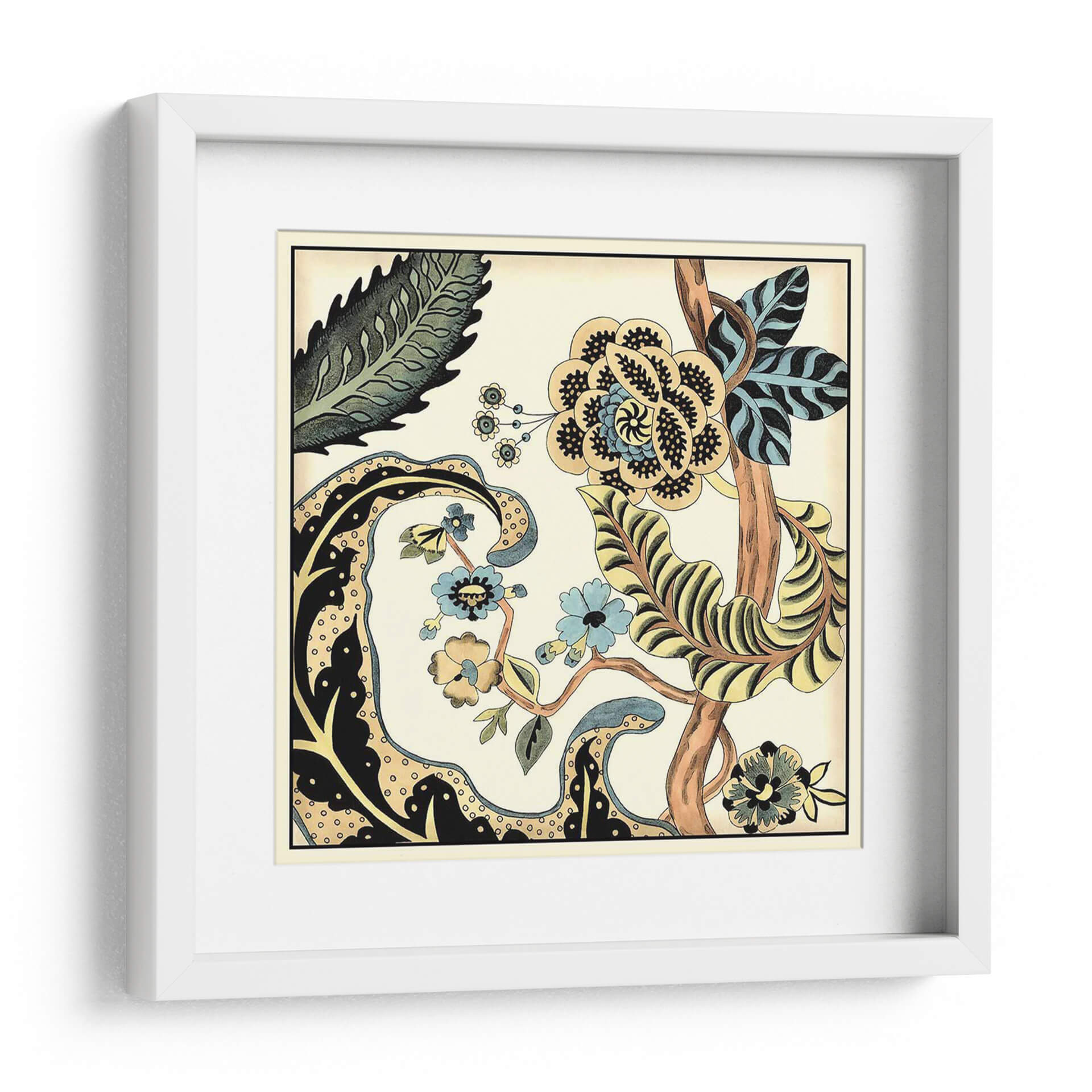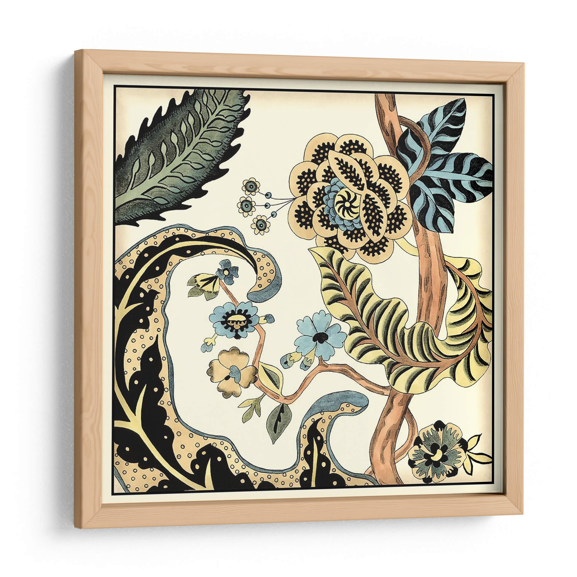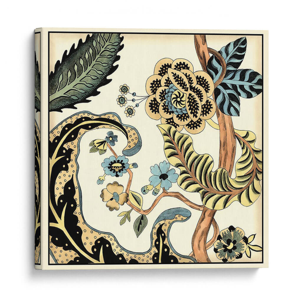 Sumérgete en la belleza intrincada del cuadro decorativo "Tile Jacobean I" de Chariklia Zarris. Esta obra maestra evoca un estilo jacobino con un toque contemporáneo, presentando un patrón floral detallado que combina elementos botánicos estilizados con un diseño ornamental. La paleta de colores, dominada por tonos tierra, ocres, azules serenos y verdes profundos, crea una atmósfera de elegancia atemporal y sofisticación. Las formas orgánicas se entrelazan con precisión, formando una composición visualmente cautivadora que invita a la contemplación. Los delicados detalles, como las pequeñas flores azules y los intrincados patrones de las hojas, añaden una capa de complejidad y encanto a la pieza. Este cuadro decorativo es ideal para quienes buscan añadir un toque de refinamiento y carácter a su hogar u oficina, funcionando perfectamente en espacios que valoran la artesanía detallada y un diseño inspirado en la naturaleza con un aire vintage. Su diseño versátil lo convierte en un punto focal excepcional para salones, comedores o incluso estudios, aportando una sensación de calma y belleza artística. Descubre la fusión perfecta entre tradición y modernidad con "Tile Jacobean I", una obra que embellecerá cualquier ambiente con su presencia única.
