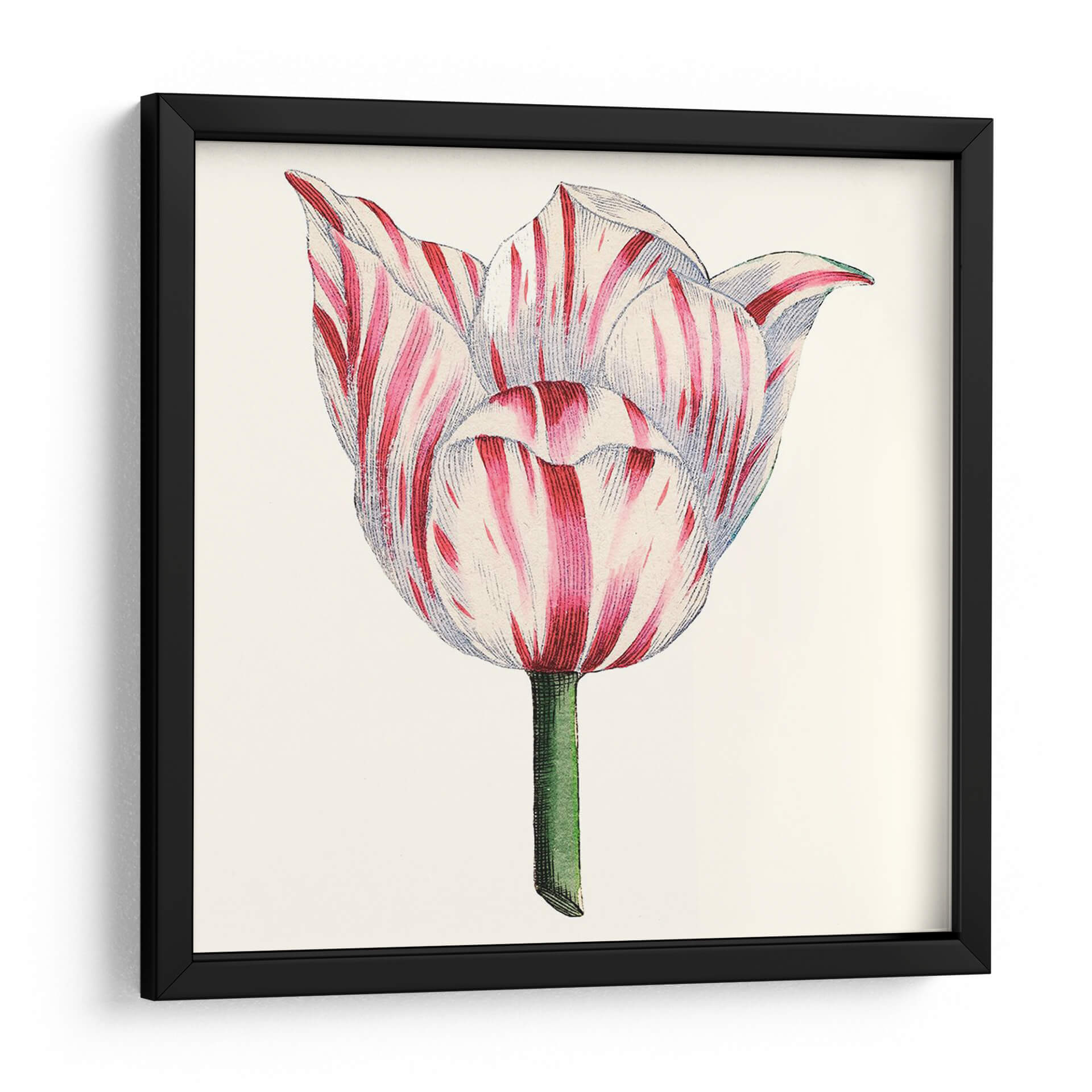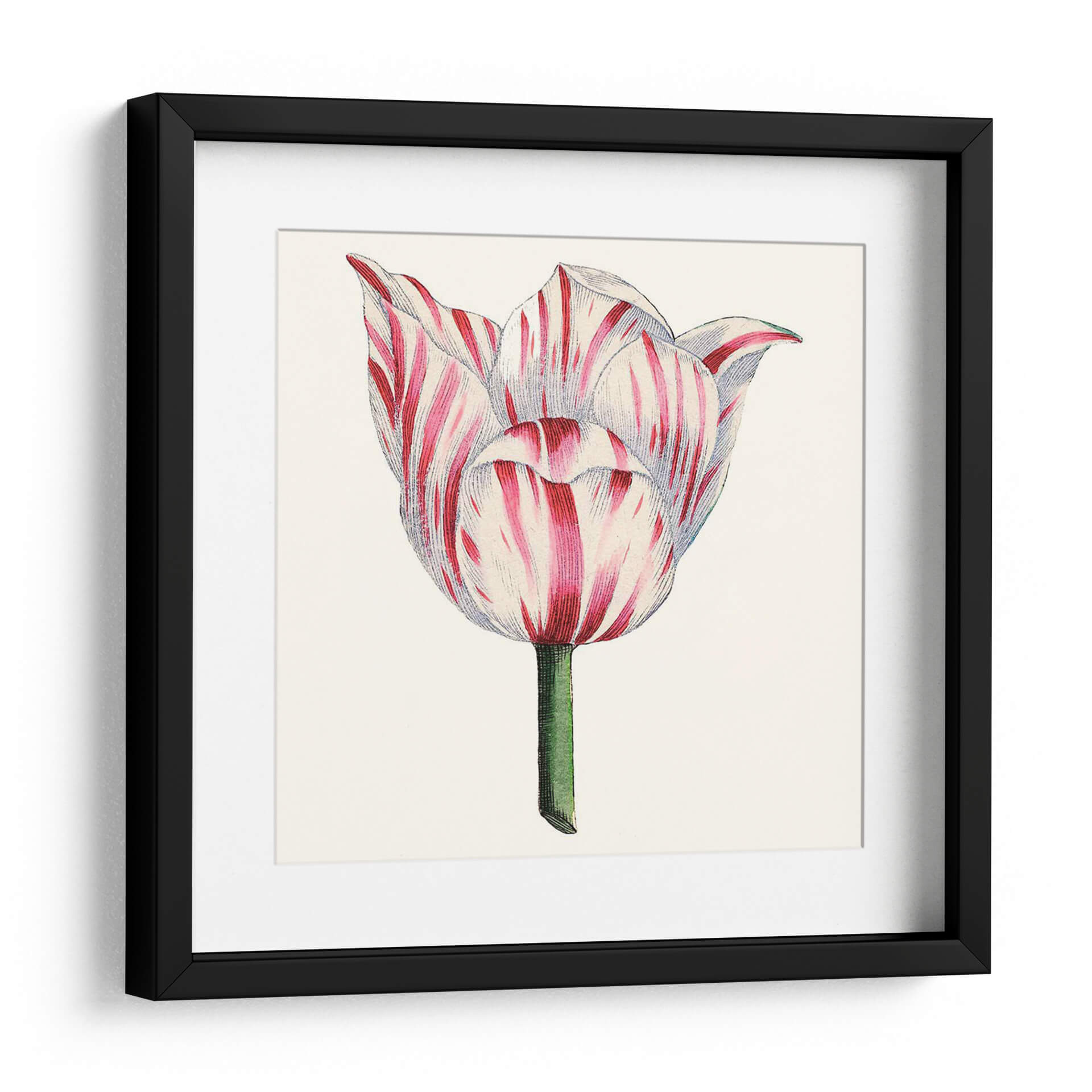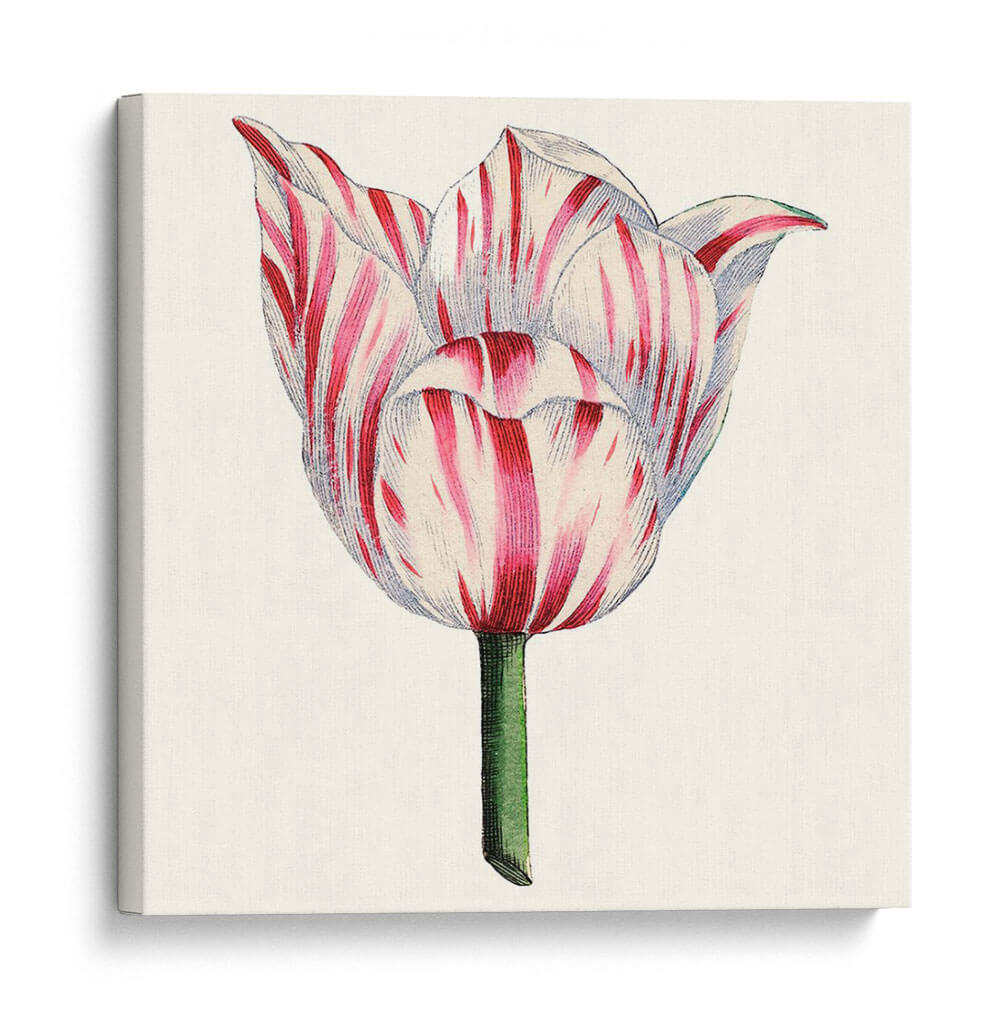 Inmortaliza la delicada belleza de la naturaleza con nuestro exquisito cuadro decorativo 'Tulip Garden I'. Esta obra maestra, capturada por el Vision Studio, presenta un primer plano de un tulipán en plena floración, con sus pétalos adornados por un vibrante patrón de rayas rojas y blancas. La paleta de colores, centrada en el contraste del carmesí intenso y el blanco puro, junto con el tallo verde esmeralda, evoca una sensación de frescura y elegancia clásica. El estilo, que recuerda a las ilustraciones botánicas vintage, aporta un toque de sofisticación atemporal, ideal para quienes aprecian la precisión y la delicadeza. Este cuadro decorativo es perfecto para añadir un acento natural y lleno de vida a cualquier estancia. Imagina su presencia serena en un dormitorio, aportando calma y belleza, o como un punto focal encantador en una sala de estar o estudio. Su composición centrada y detallada invita a la contemplación, celebrando la perfección de una sola flor. Añade un toque de arte botánico a tu hogar y deja que 'Tulip Garden I' florezca en tus paredes, inspirando admiración y tranquilidad.