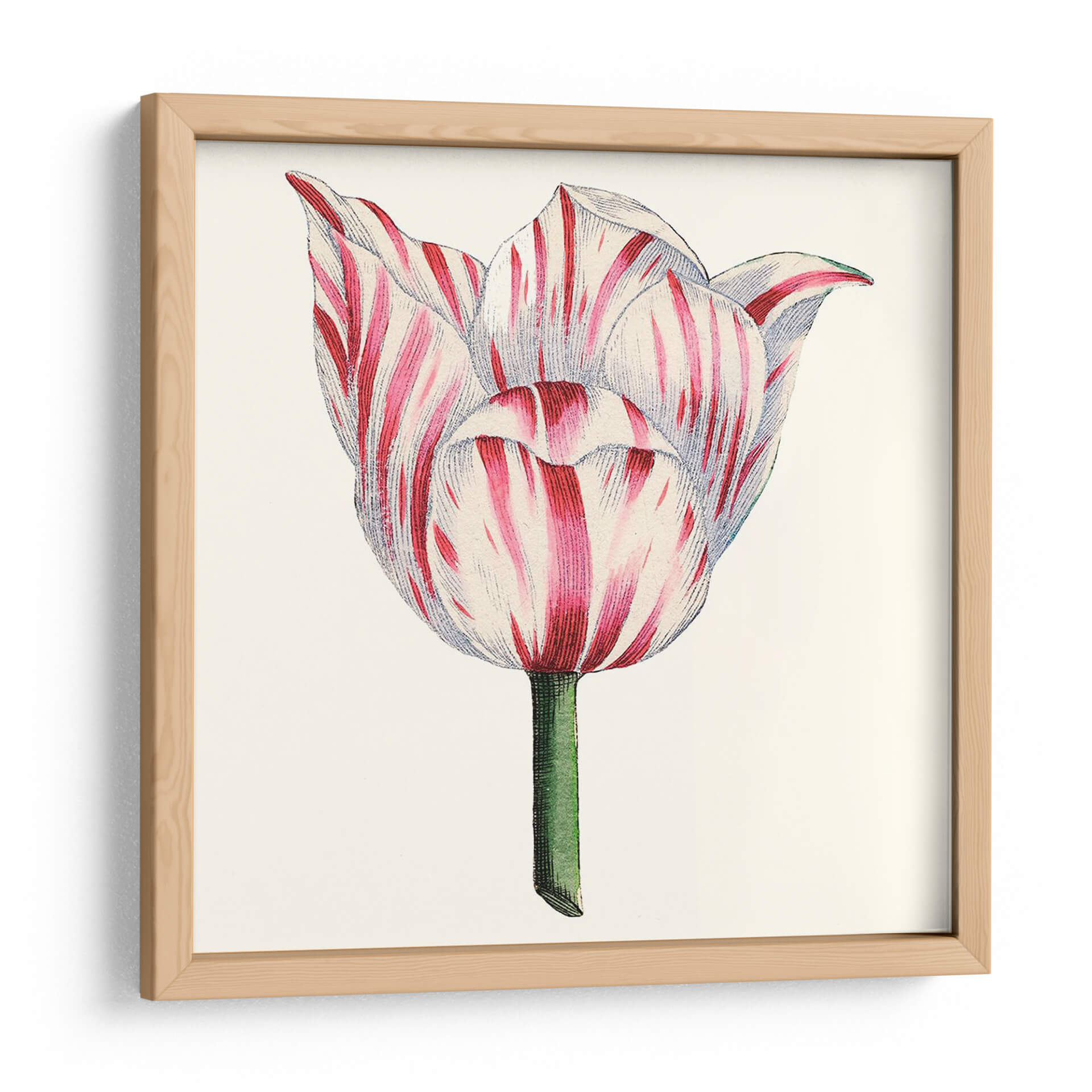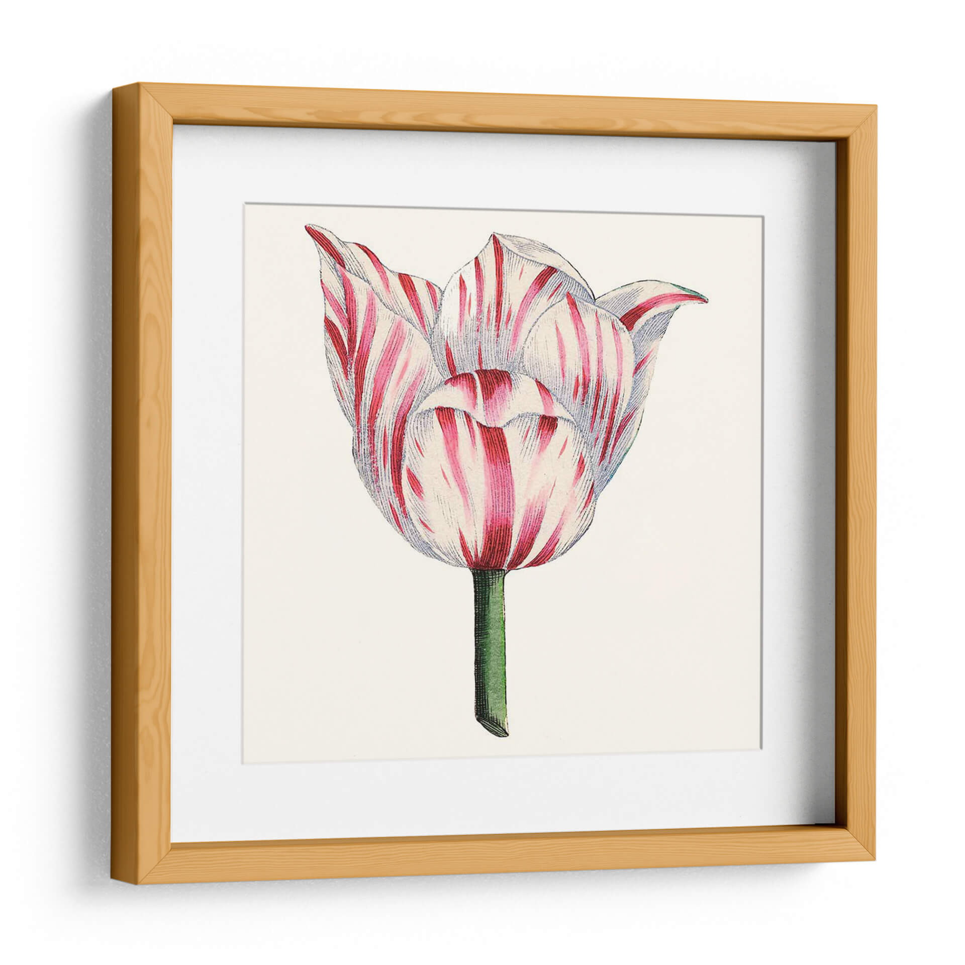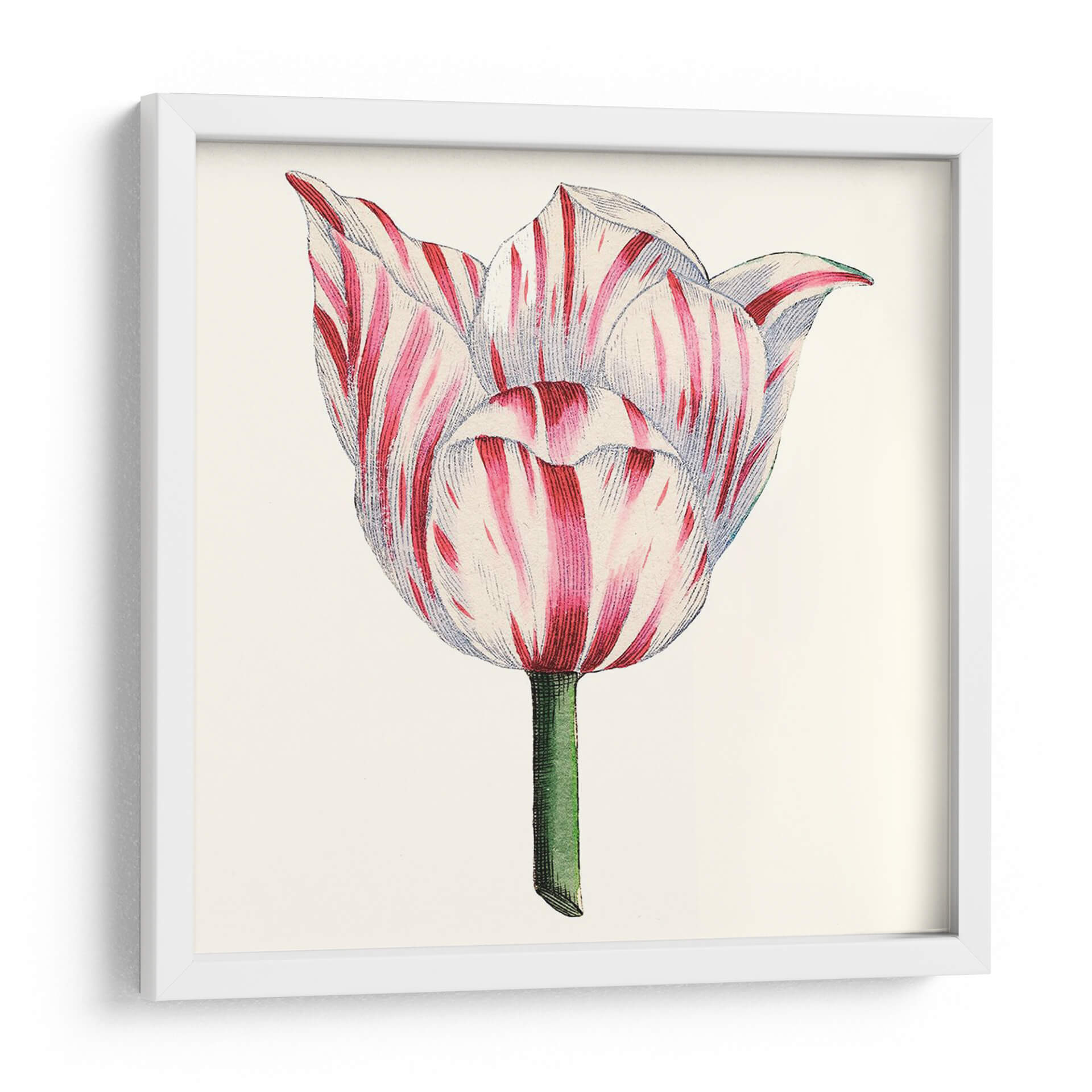 Inmortaliza la delicada belleza de la naturaleza con nuestro exquisito cuadro decorativo 'Tulip Garden I'. Esta obra maestra, capturada por el Vision Studio, presenta un primer plano de un tulipán en plena floración, con sus pétalos adornados por un vibrante patrón de rayas rojas y blancas. La paleta de colores, centrada en el contraste del carmesí intenso y el blanco puro, junto con el tallo verde esmeralda, evoca una sensación de frescura y elegancia clásica. El estilo, que recuerda a las ilustraciones botánicas vintage, aporta un toque de sofisticación atemporal, ideal para quienes aprecian la precisión y la delicadeza. Este cuadro decorativo es perfecto para añadir un acento natural y lleno de vida a cualquier estancia. Imagina su presencia serena en un dormitorio, aportando calma y belleza, o como un punto focal encantador en una sala de estar o estudio. Su composición centrada y detallada invita a la contemplación, celebrando la perfección de una sola flor. Añade un toque de arte botánico a tu hogar y deja que 'Tulip Garden I' florezca en tus paredes, inspirando admiración y tranquilidad.