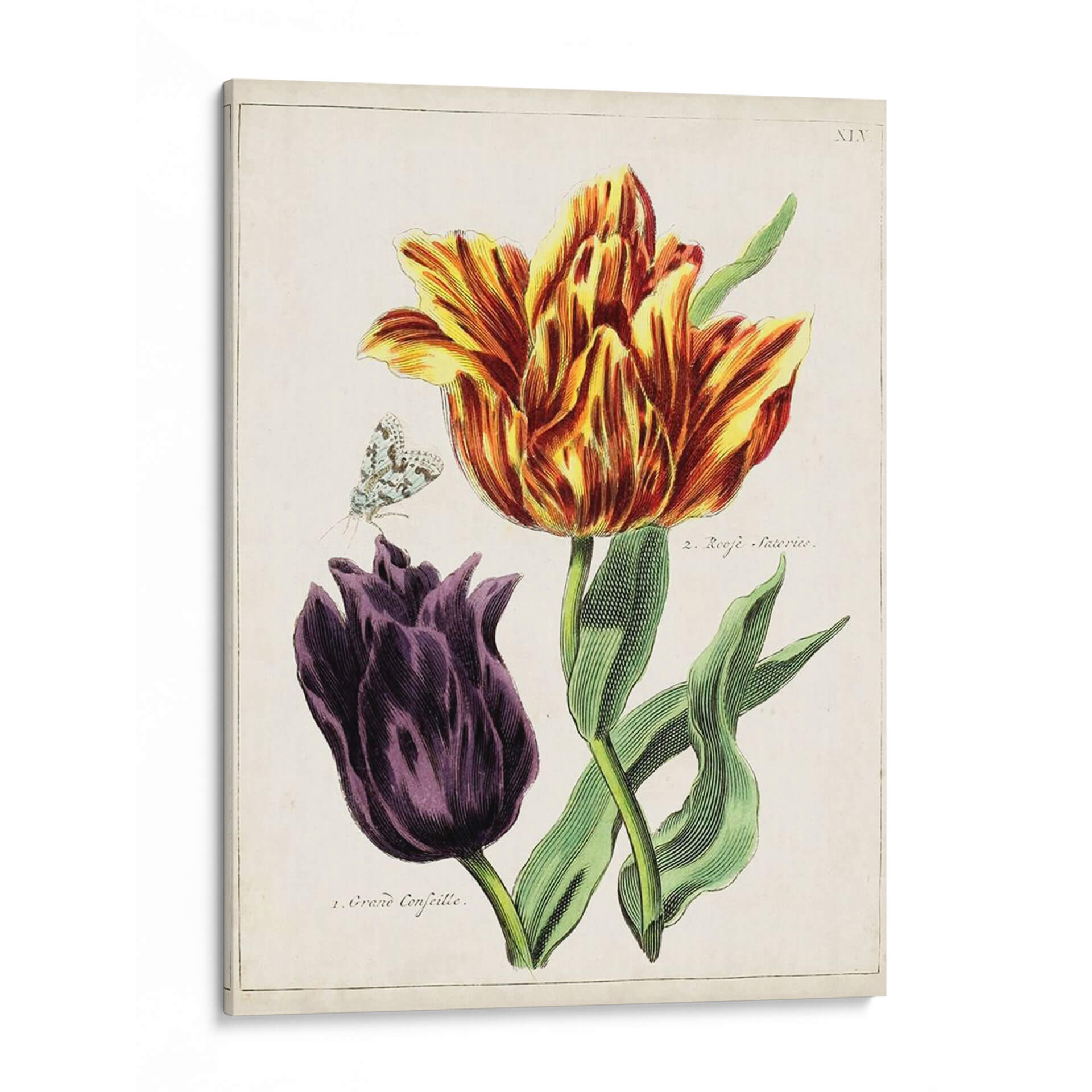Embellece tu espacio con el cuadro decorativo 'Tulipán Clásicos III', una obra que evoca la belleza atemporal de la naturaleza. Esta pieza presenta una detallada ilustración botánica de dos tulipanes, uno en vibrantes tonos de amarillo y rojo rayado, y otro en un profundo y sofisticado púrpura. La delicadeza se realza con la presencia de una mariposa posada sutilmente, añadiendo un toque de vida y movimiento a la composición. La paleta de colores, con sus contrastes y matices, crea una atmósfera de elegancia y serenidad, perfecta para cualquier rincón de tu hogar u oficina. El estilo clásico y la precisión de los trazos recuerdan a las antiguas láminas de botánica, aportando un aire de erudición y refinamiento. Este cuadro decorativo es ideal para quienes buscan añadir un elemento de sofisticación natural a su decoración, funcionando como un punto focal que invita a la contemplación. Su diseño versátil lo hace adecuado para salas de estar, dormitorios o estudios, infundiendo cada ambiente con un encanto clásico y una conexión con el mundo natural.