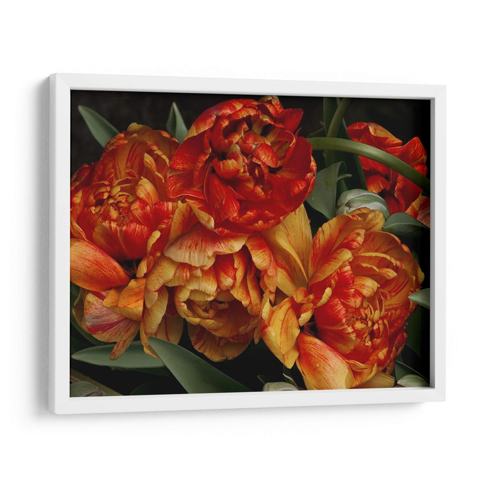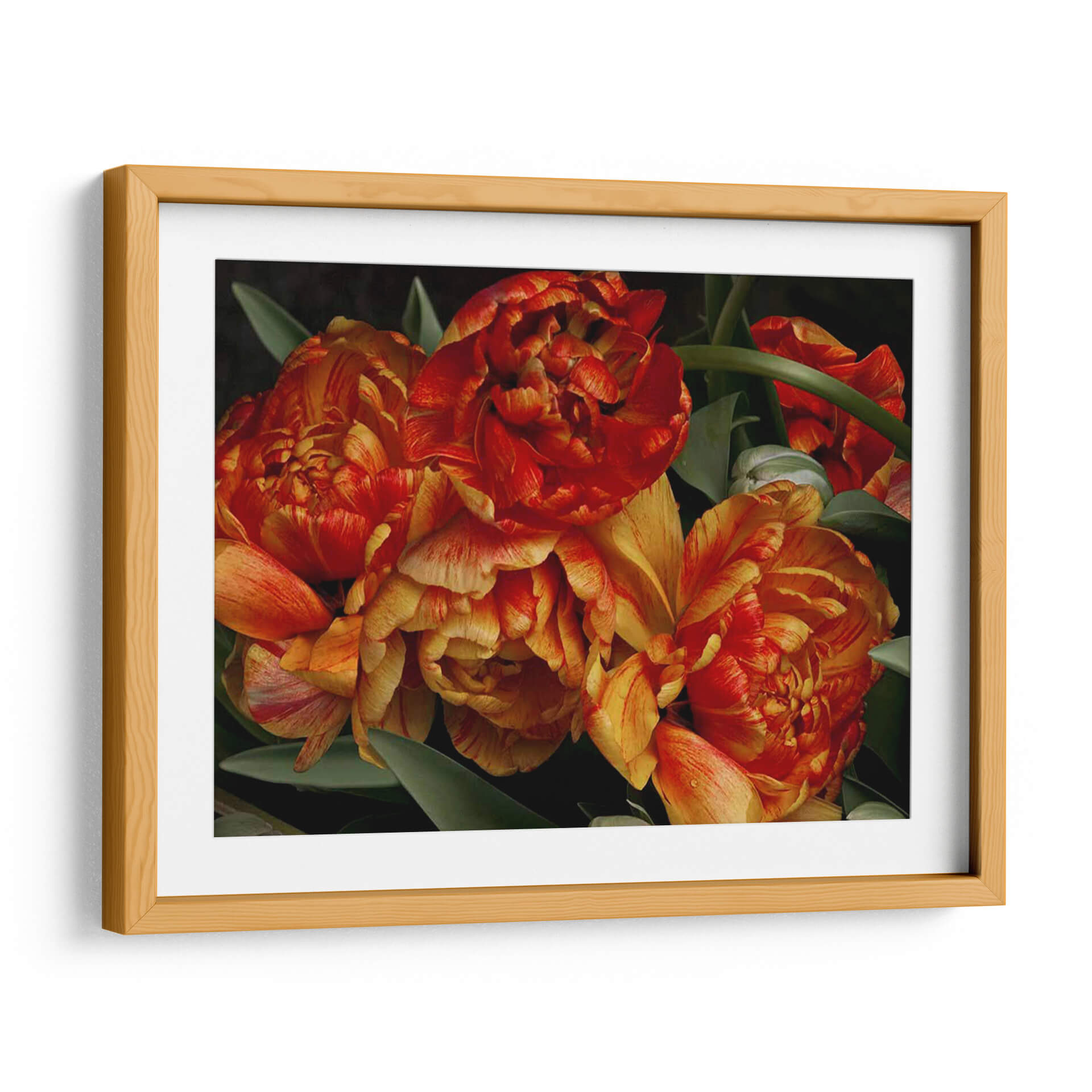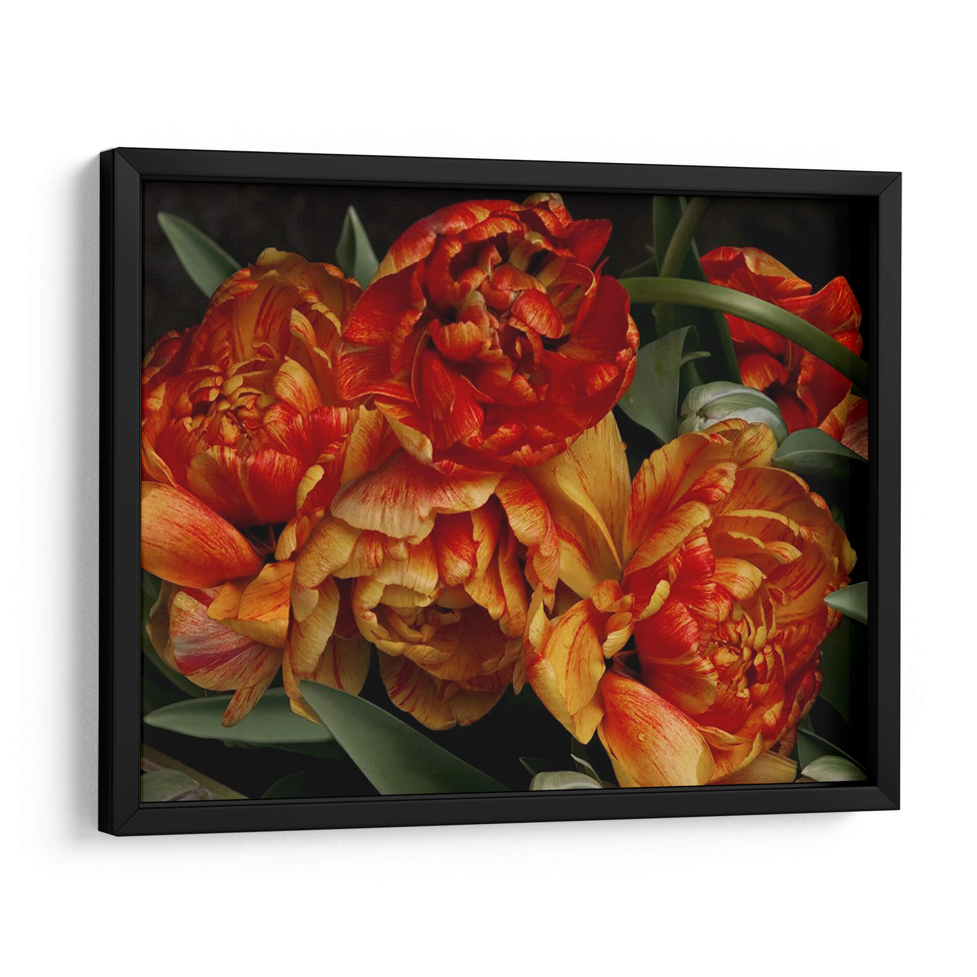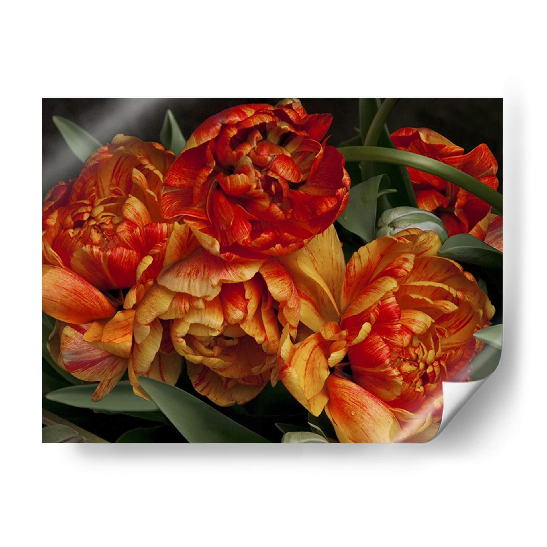 Sumérgete en la opulencia floral con "Tulipanes Del Viejo Mundo I", una obra maestra de Rachel Perry que captura la esencia vibrante de la naturaleza. Este cuadro decorativo presenta un exuberante ramo de tulipanes de doble pétalo, cuyas tonalidades cálidas de naranja y rojo anaranjado se entrelazan con delicados toques de amarillo. La composición detallada resalta la textura aterciopelada de los pétalos y la riqueza de sus veteados, creando una sensación de profundidad y volumen. Los verdes profundos del follaje circundante contrastan maravillosamente con la explosión de color de las flores, añadiendo un toque de sofisticación y realismo a la pieza. La atmósfera es de una belleza atemporal y una elegancia clásica, perfecta para infundir calidez y vitalidad a cualquier espacio. Ideal para quienes buscan añadir un acento de color y un toque de la belleza botánica a su hogar u oficina, este cuadro decorativo es una celebración de la primavera y la exuberancia de la vida, transformando paredes neutras en un lienzo de alegría y refinamiento. Su realismo fotográfico y la intensidad de sus colores lo convierten en una pieza central que no pasará desapercibida, aportando un aire de frescura y optimismo.
