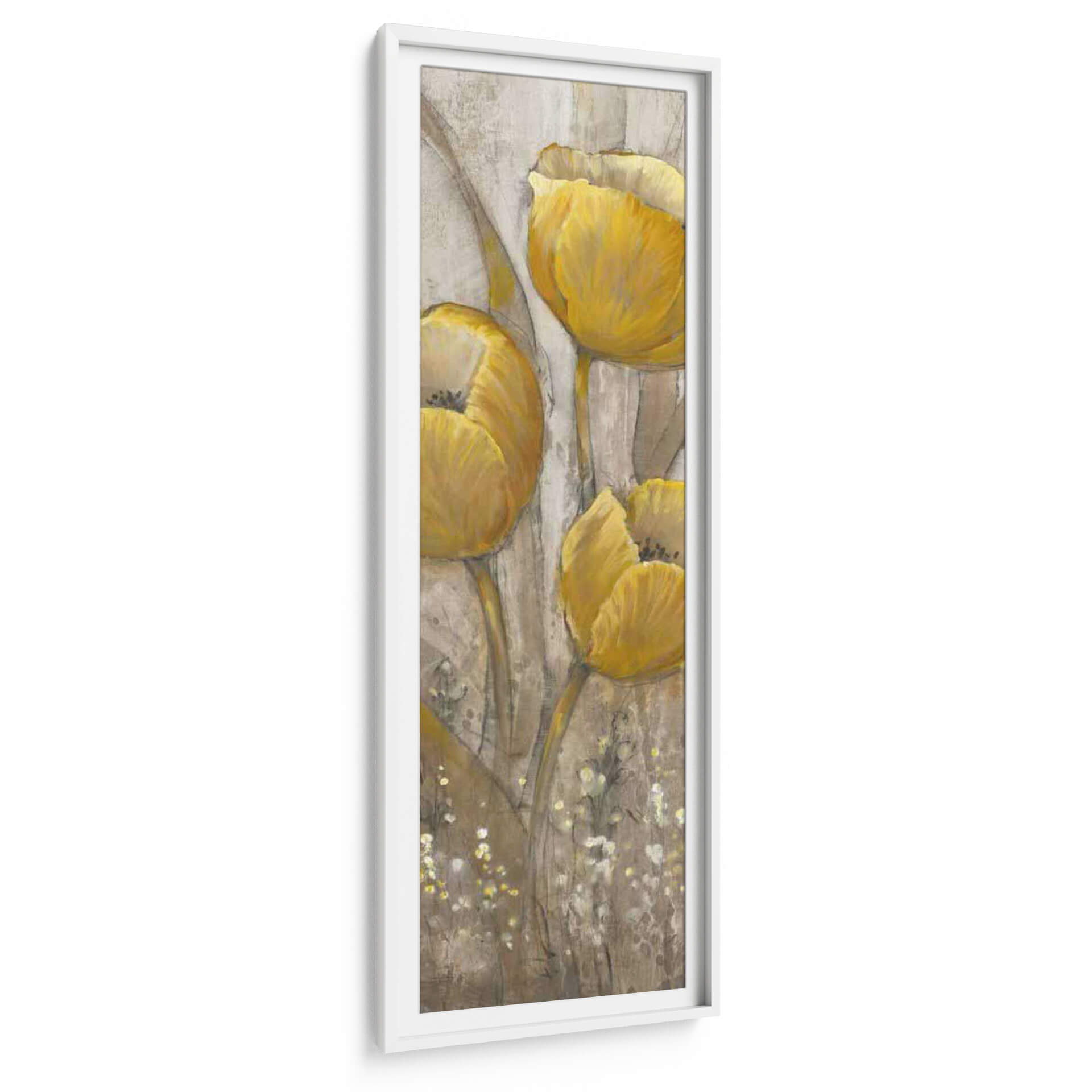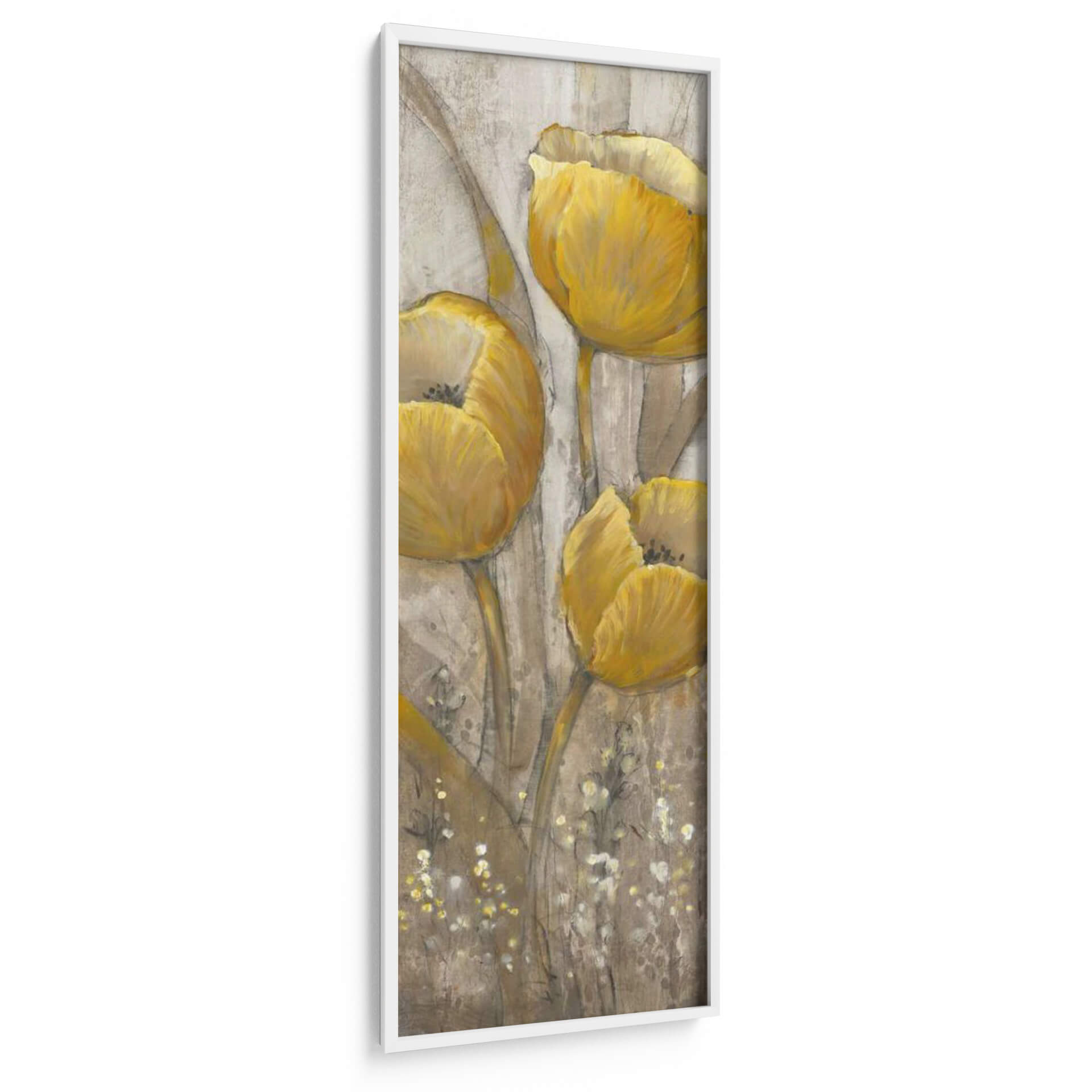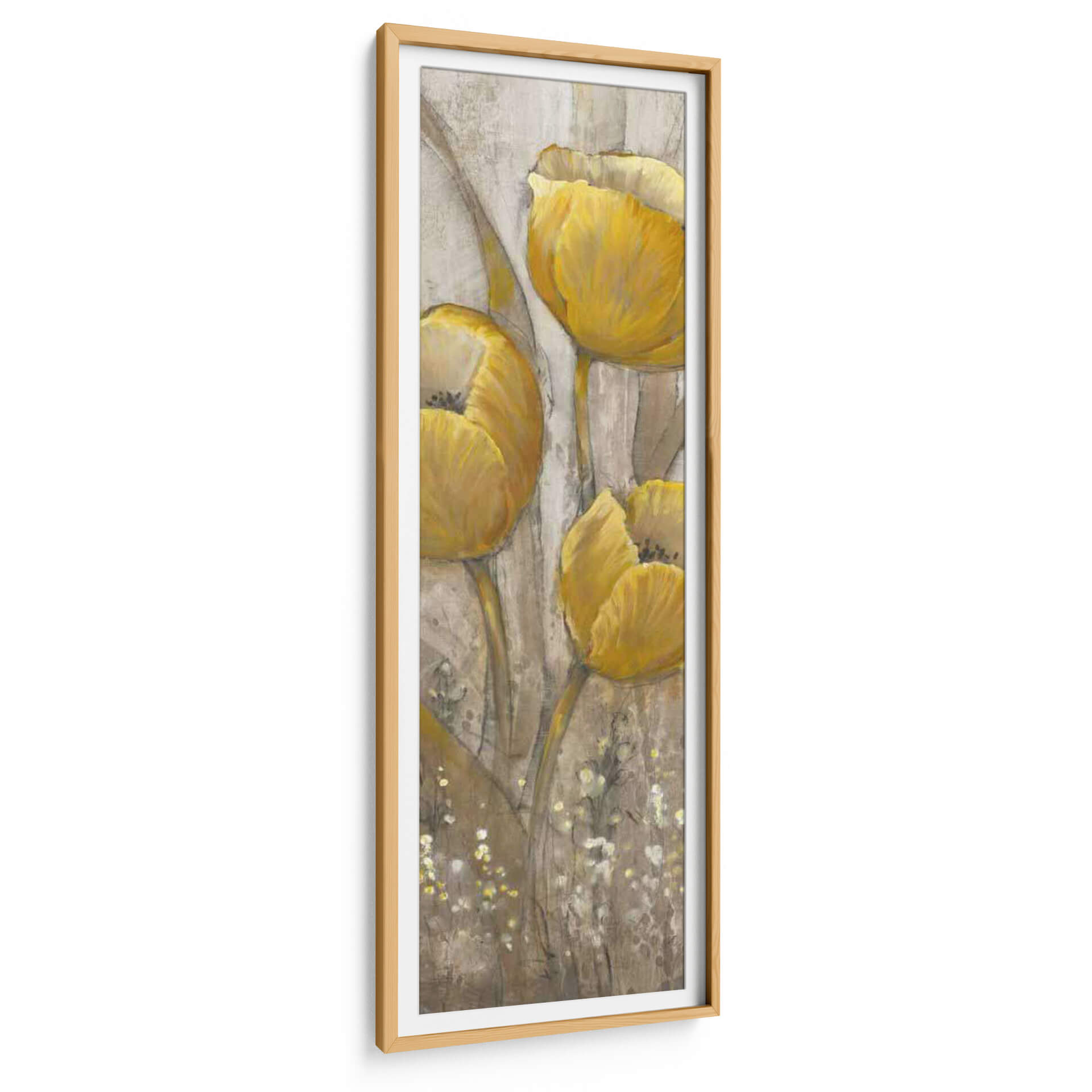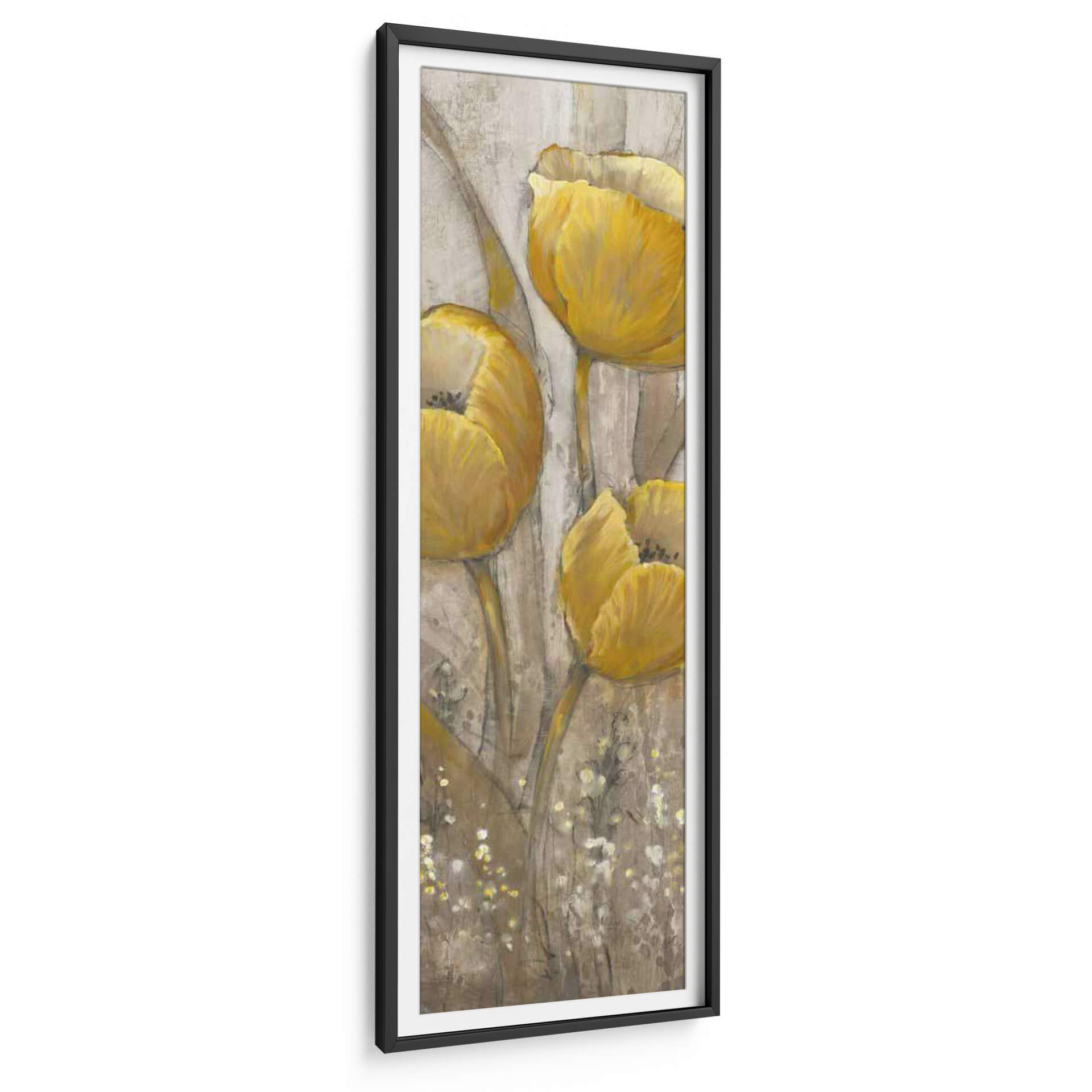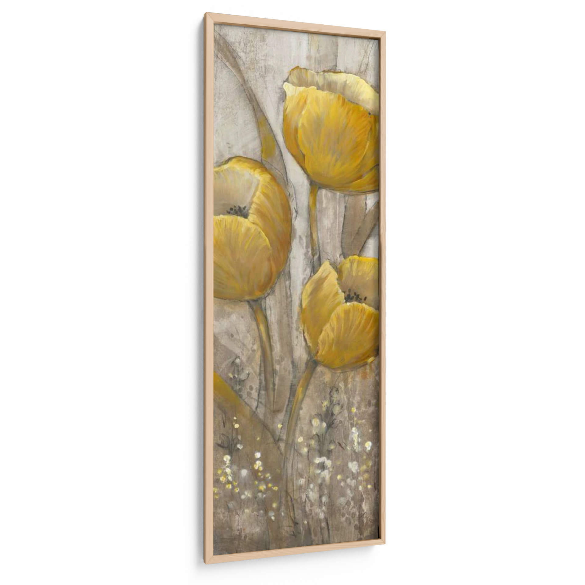 Inunda tu hogar de luz y calidez con el cuadro decorativo "Tulipanes Ocres" de Tim O'Toole. Esta obra captura la esencia de la naturaleza con una delicadeza que evoca serenidad y optimismo. Los tulipanes, representados en un vibrante tono ocre, emergen de un fondo texturizado en tonos tierra y grises, creando un contraste sutil pero impactante. La técnica pictórica, con pinceladas sueltas y expresivas, aporta profundidad y movimiento a la composición, mientras que las pequeñas salpicaduras de luz en la parte inferior sugieren un jardín bañado por el sol o un rocío matutino. Ideal para salones, dormitorios o pasillos, este cuadro decorativo es una invitación a la contemplación y un toque de sofisticación natural. Su estilo contemporáneo, con influencias botánicas, lo convierte en una pieza versátil que puede complementar desde decoraciones rústicas hasta ambientes más modernos. Añade un toque de color terroso y elegancia atemporal a tus paredes y transforma cualquier espacio en un refugio de paz y belleza. "Tulipanes Ocres" no es solo una obra de arte, es una expresión de la vitalidad de la primavera capturada para perdurar todo el año.