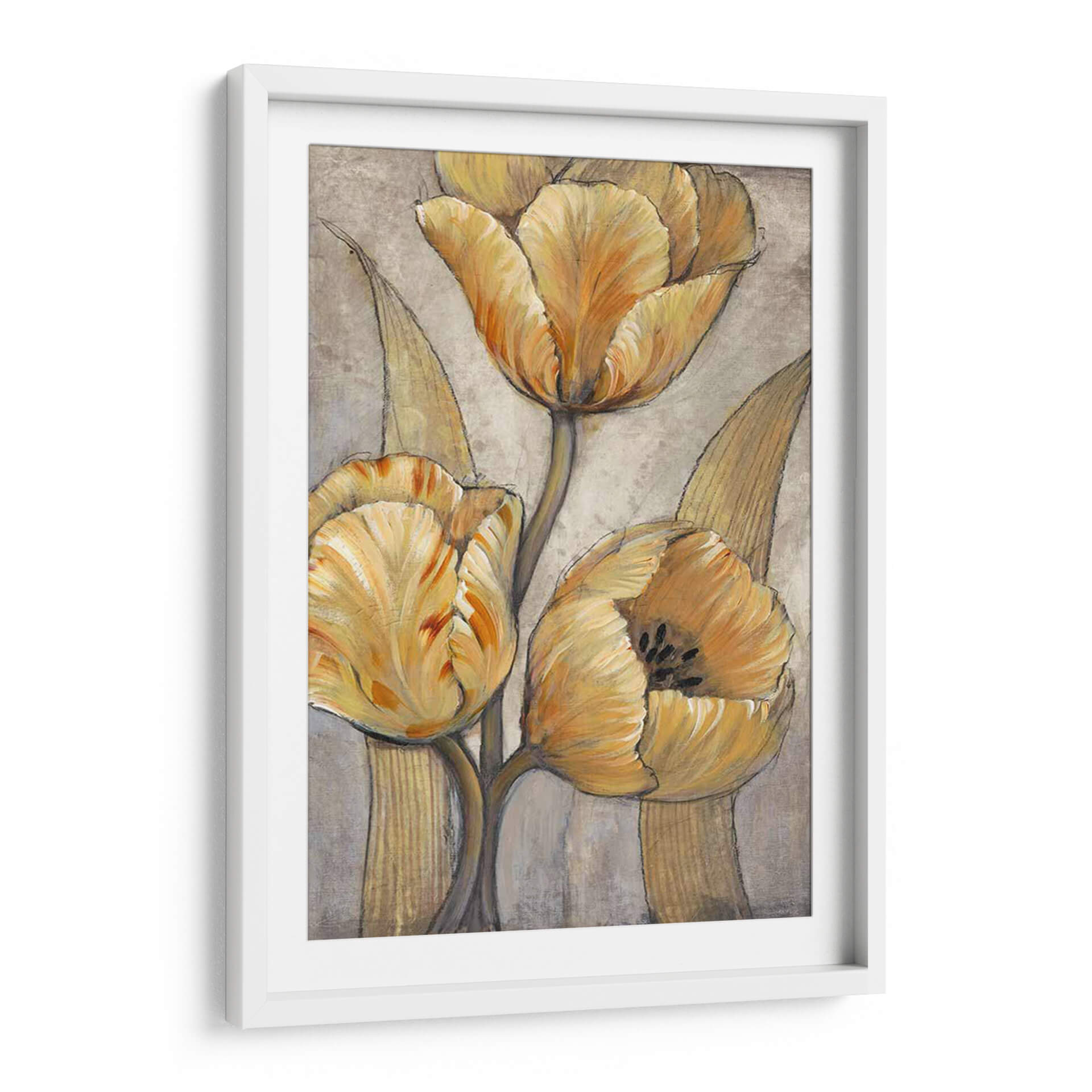 Sumérgete en la calidez y la elegancia con "Tulipanes Ocres Y Grises I", una obra de arte que captura la belleza atemporal de estas flores icónicas. El artista Tim O'Toole nos presenta un estudio vibrante donde los tulipanes, en un tono ocre profundo con sutiles matices rojizos, emergen con una presencia casi escultórica. La técnica de pintura, con trazos que sugieren tanto la delicadeza de los pétalos como la textura rústica del fondo grisáceo, crea una profundidad visual cautivadora. Esta pieza evoca una sensación de serenidad y sofisticación, ideal para añadir un toque de color y carácter a cualquier espacio. Su paleta de colores cálidos y terrosos la convierte en una adición versátil para salones, dormitorios o estudios, armonizando tanto con decoraciones modernas como clásicas. "Tulipanes Ocres Y Grises I" no es solo una representación floral, es una invitación a contemplar la belleza en los detalles y a infundir tu hogar con una atmósfera de tranquila contemplación y estilo artístico. Una elección perfecta para quienes buscan arte decorativo que inspire y embellezca, aportando una conexión con la naturaleza y la expresión artística contemporánea a tu vida diaria.