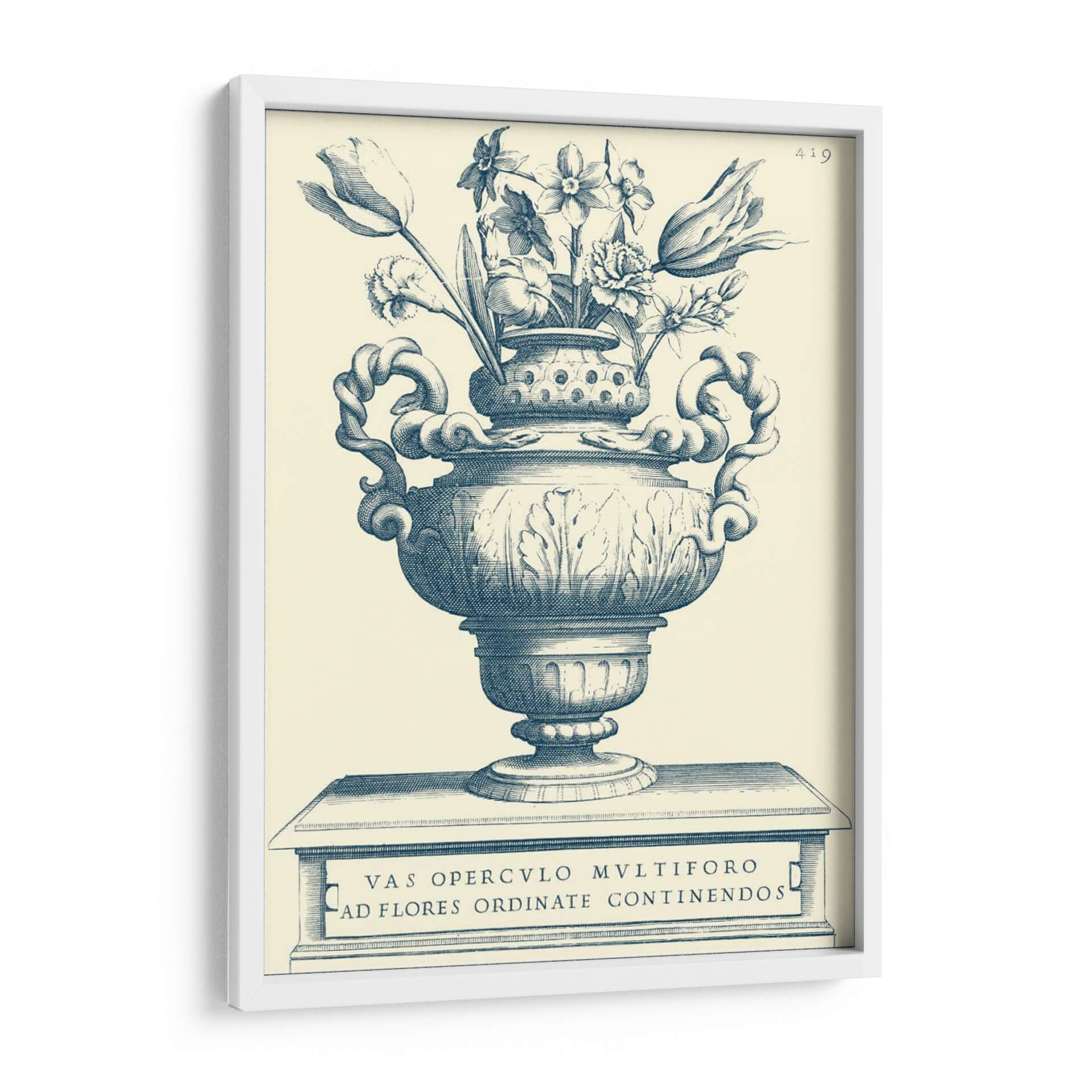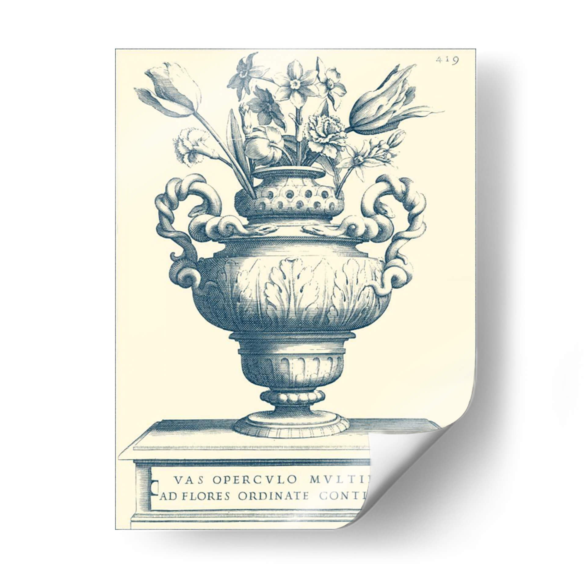 Descubre la elegancia atemporal de "Tulipiere II", una obra de arte digital que captura la belleza clásica de un jarrón ornamentado rebosante de flores. Realizada en un delicado estilo de grabado o aguafuerte, esta pieza destaca por su intrincado detalle y una paleta de colores monocromática en tonos azules sobre un fondo crema, evocando una sensación de serenidad y sofisticación. La composición se centra en un jarrón barroco con volutas y detalles florales, sosteniendo un exuberante arreglo de tulipanes, claveles y otras flores delicadas. La inscripción en latín en la base añade un toque de historia y erudición a la pieza, sugiriendo una conexión con el estudio botánico y el arte renacentista. Este cuadro decorativo es perfecto para añadir un punto de interés clásico y refinado a cualquier espacio, ya sea una sala de estar, un estudio o un dormitorio. Su diseño detallado y su atmósfera tranquila invitan a la contemplación, convirtiéndolo en una elección ideal para quienes aprecian el arte con un toque de tradición y maestría. Añade un aire de distinción y belleza duradera a tu hogar con esta impresionante representación floral.