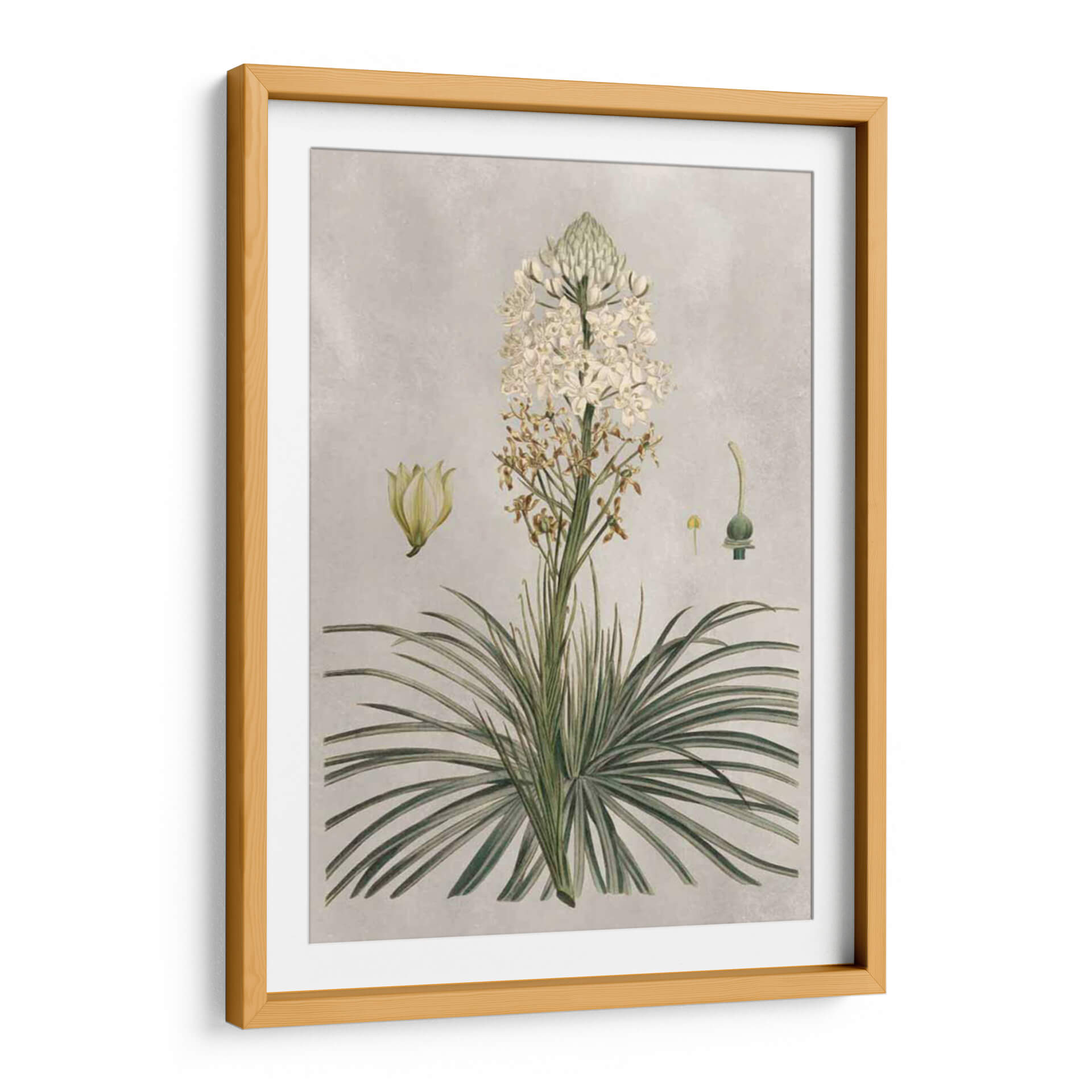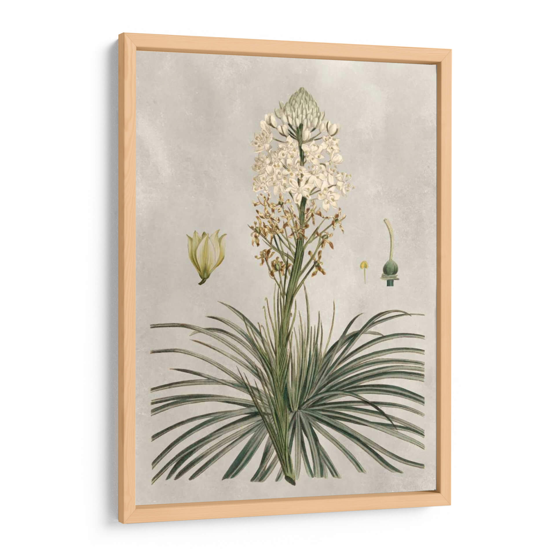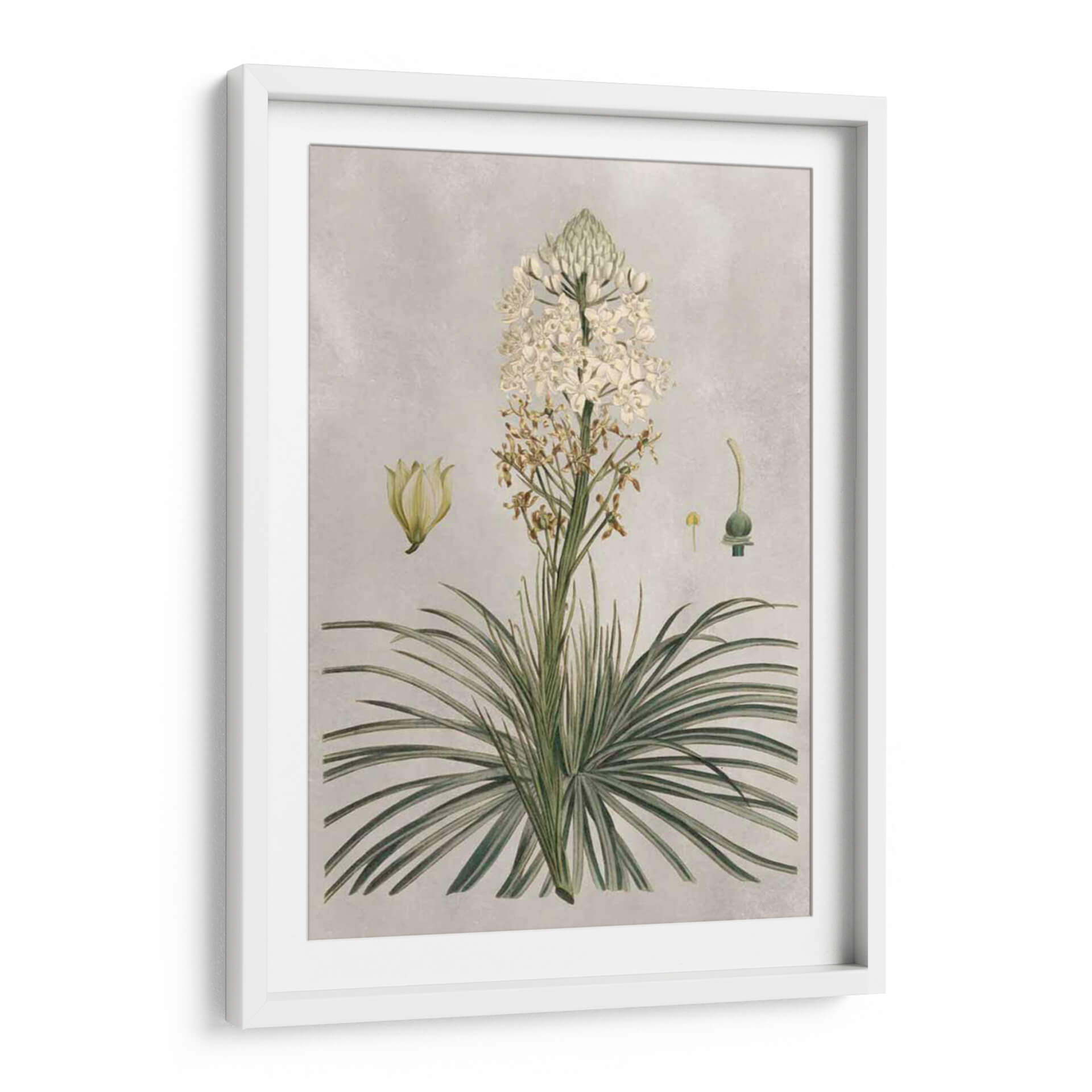 Sumérgete en la belleza botánica con "Variedades Tropicales III", una exquisita obra de arte que captura la delicadeza de la flora con un detalle asombroso. Este cuadro decorativo, inspirado en ilustraciones científicas antiguas, presenta una exuberante planta tropical con una espiga de flores blancas, acompañada de estudios de sus partes y una flor aparte. La paleta de colores suaves, dominada por tonos neutros y toques de verde y blanco, crea una atmósfera de calma y elegancia. El estilo de la obra evoca la precisión y la apreciación de la naturaleza, ideal para espacios que buscan un toque de sofisticación orgánica. Ya sea en tu sala de estar, comedor o estudio, este cuadro decorativo de inspiración botánica añadirá un aire de serenidad y un punto de interés visual que celebra la maravilla del mundo natural. Su composición detallada y su estética atemporal lo convierten en una adición perfecta para amantes del arte y la naturaleza por igual, aportando un encanto clásico y refinado a cualquier decoración.