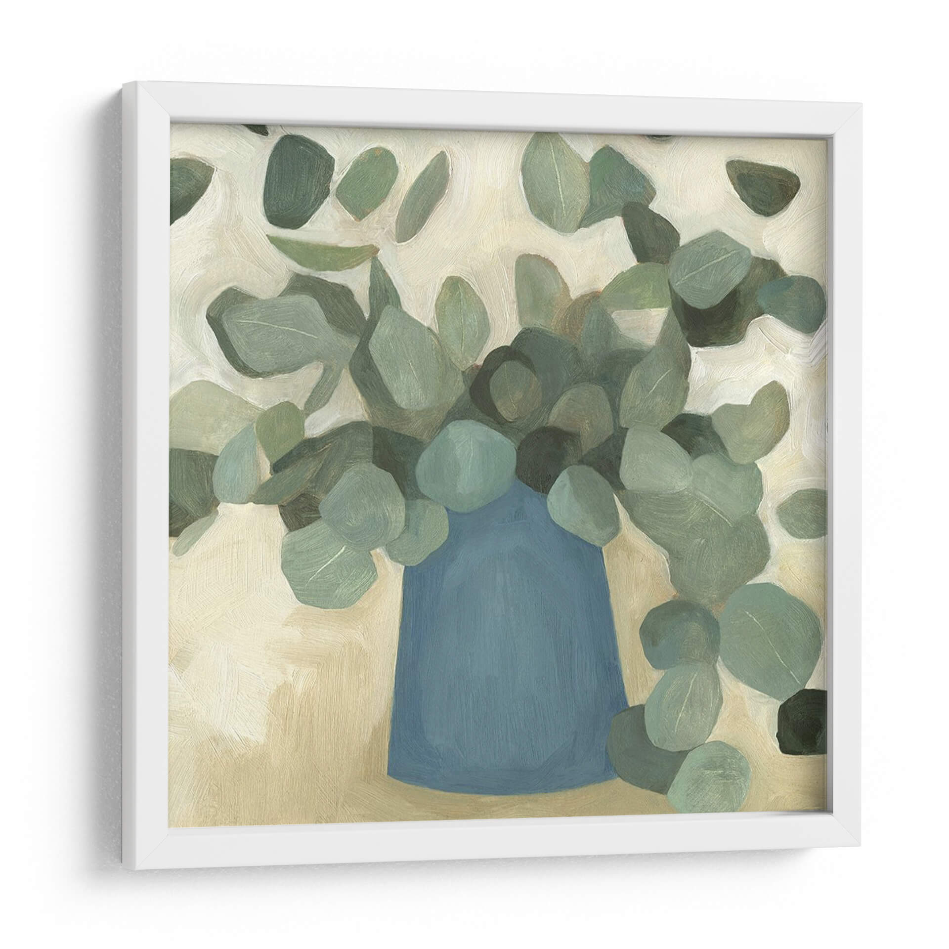 Sumérgete en la serenidad de 'Vegetación Todavía Vida Vi', una obra de arte contemporáneo de Emma Scarvey que captura la delicadeza de la naturaleza con un toque moderno. Este cuadro decorativo presenta un vibrante jarrón azul que alberga un exuberante ramo de hojas verdes, cuyo follaje se extiende con gracia, creando una atmósfera de tranquilidad y frescura. La paleta de colores, dominada por tonos verdes suaves y terrosos, complementada por el profundo azul del recipiente, evoca una sensación de calma y conexión con el entorno natural. El estilo pictórico, con pinceladas audaces pero sutiles, añade una textura visual interesante sin restarle protagonismo a la simplicidad de la composición. Es una pieza ideal para añadir un acento de color y vida a cualquier espacio, desde una sala de estar moderna hasta un sereno dormitorio o una oficina que busque un toque de inspiración botánica. 'Vegetación Todavía Vida Vi' no es solo una decoración, sino una invitación a la contemplación, aportando un aire de sofisticación y un respiro natural a tu hogar u oficina.