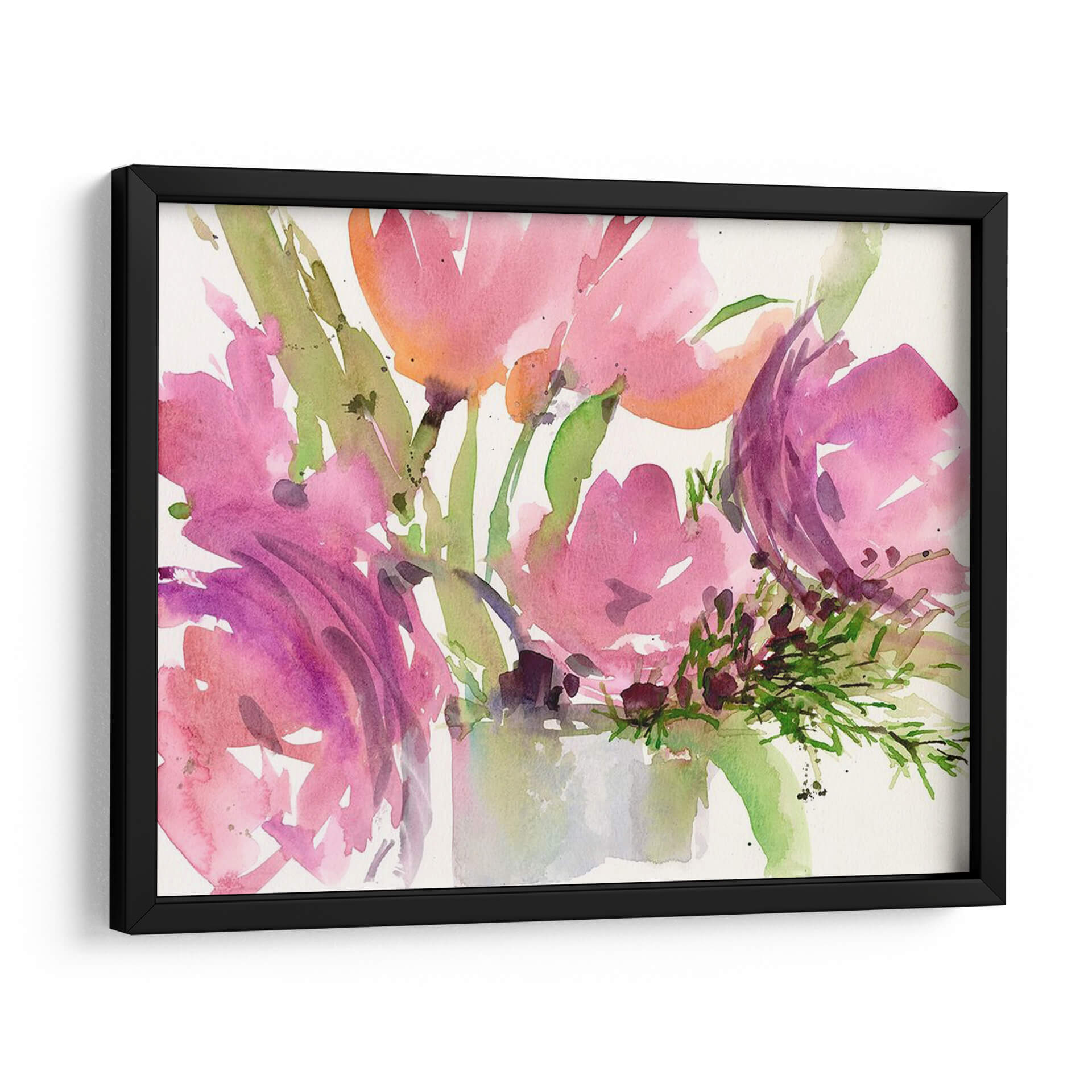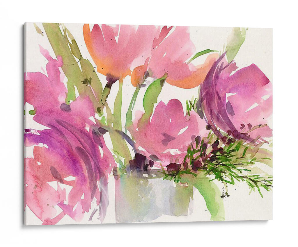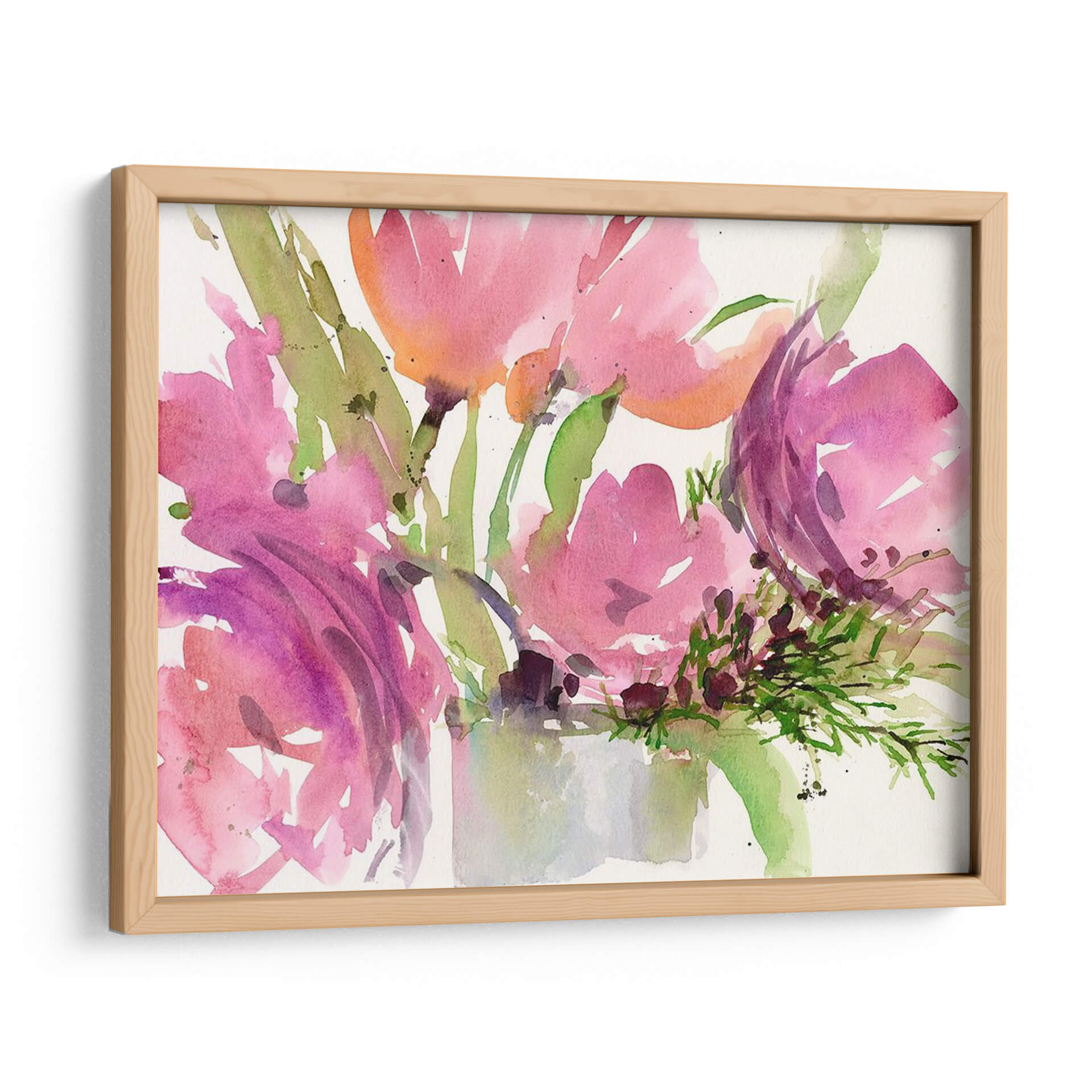 Sumérgete en la delicadeza y el color con "Velvet II", una cautivadora obra de arte que celebra la belleza efímera de las flores a través de una interpretación impresionista. Samuel Dixon captura la esencia de un vibrante ramo con pinceladas sueltas y fluidas, evocando la frescura y el movimiento de la naturaleza. La paleta de colores, dominada por tonos vibrantes de rosa, fucsia y toques de naranja, se fusiona con verdes exuberantes y sombras profundas, creando una atmósfera de alegría y vitalidad. Este cuadro decorativo es una pieza excepcional para infundir calidez y un toque de elegancia floral en cualquier espacio. Su estilo impresionista y composición dinámica lo convierten en el punto focal perfecto para una sala de estar moderna, un comedor acogedor o incluso un estudio, aportando un soplo de aire fresco y sofisticación. Ideal para quienes buscan añadir un elemento de naturaleza y arte contemporáneo a su decoración, "Velvet II" no es solo una imagen, sino una invitación a apreciar la belleza en su forma más pura y colorida. Transforma tu hogar en una galería personal con esta pieza que irradia vida y serenidad.