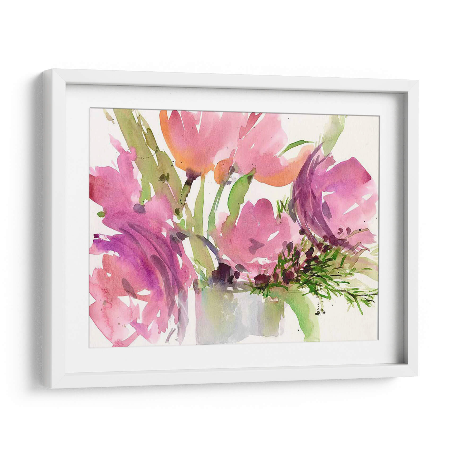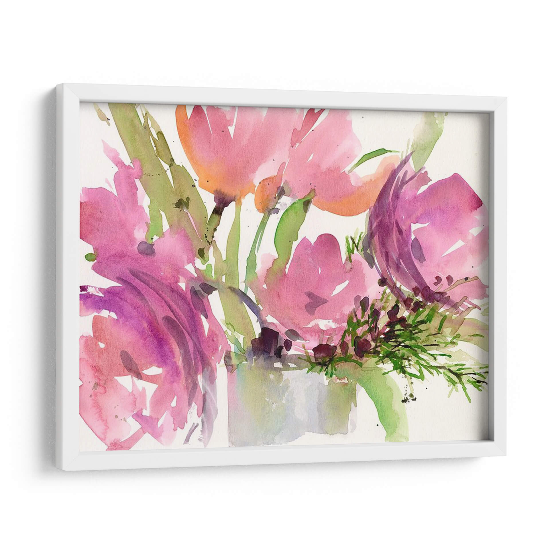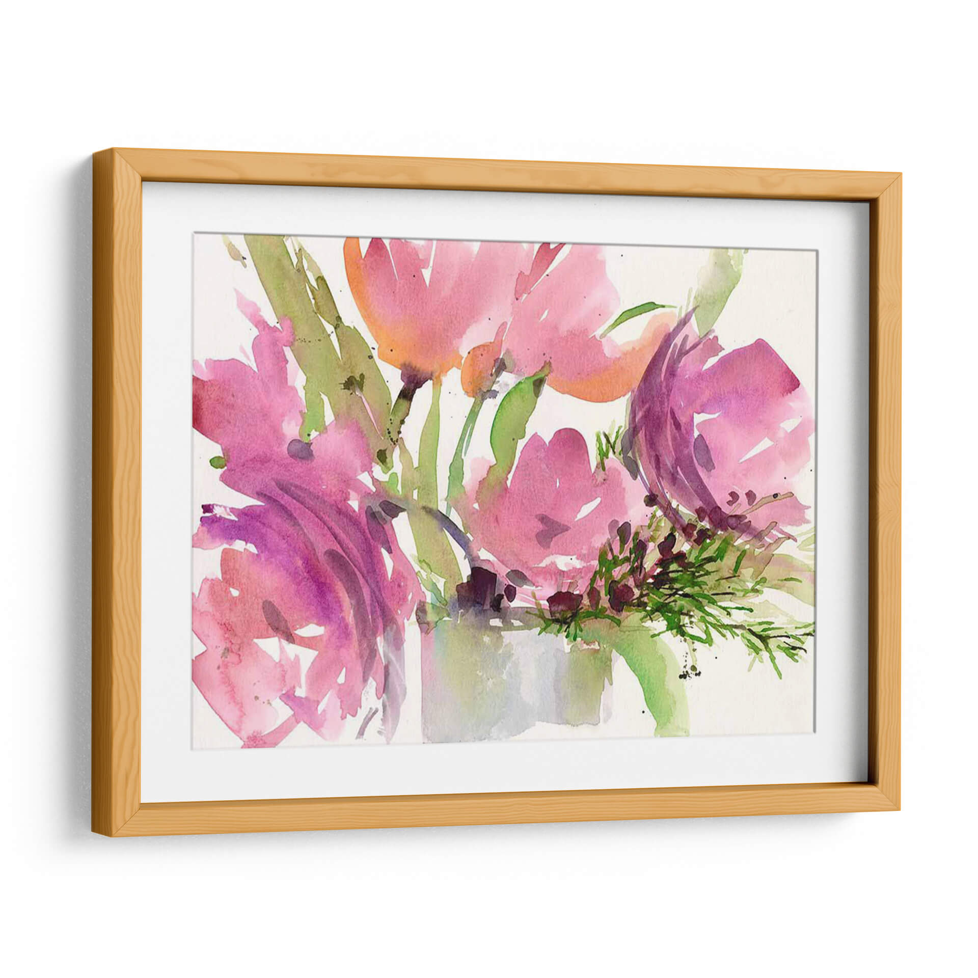 Sumérgete en la delicadeza y el color con "Velvet II", una cautivadora obra de arte que celebra la belleza efímera de las flores a través de una interpretación impresionista. Samuel Dixon captura la esencia de un vibrante ramo con pinceladas sueltas y fluidas, evocando la frescura y el movimiento de la naturaleza. La paleta de colores, dominada por tonos vibrantes de rosa, fucsia y toques de naranja, se fusiona con verdes exuberantes y sombras profundas, creando una atmósfera de alegría y vitalidad. Este cuadro decorativo es una pieza excepcional para infundir calidez y un toque de elegancia floral en cualquier espacio. Su estilo impresionista y composición dinámica lo convierten en el punto focal perfecto para una sala de estar moderna, un comedor acogedor o incluso un estudio, aportando un soplo de aire fresco y sofisticación. Ideal para quienes buscan añadir un elemento de naturaleza y arte contemporáneo a su decoración, "Velvet II" no es solo una imagen, sino una invitación a apreciar la belleza en su forma más pura y colorida. Transforma tu hogar en una galería personal con esta pieza que irradia vida y serenidad.