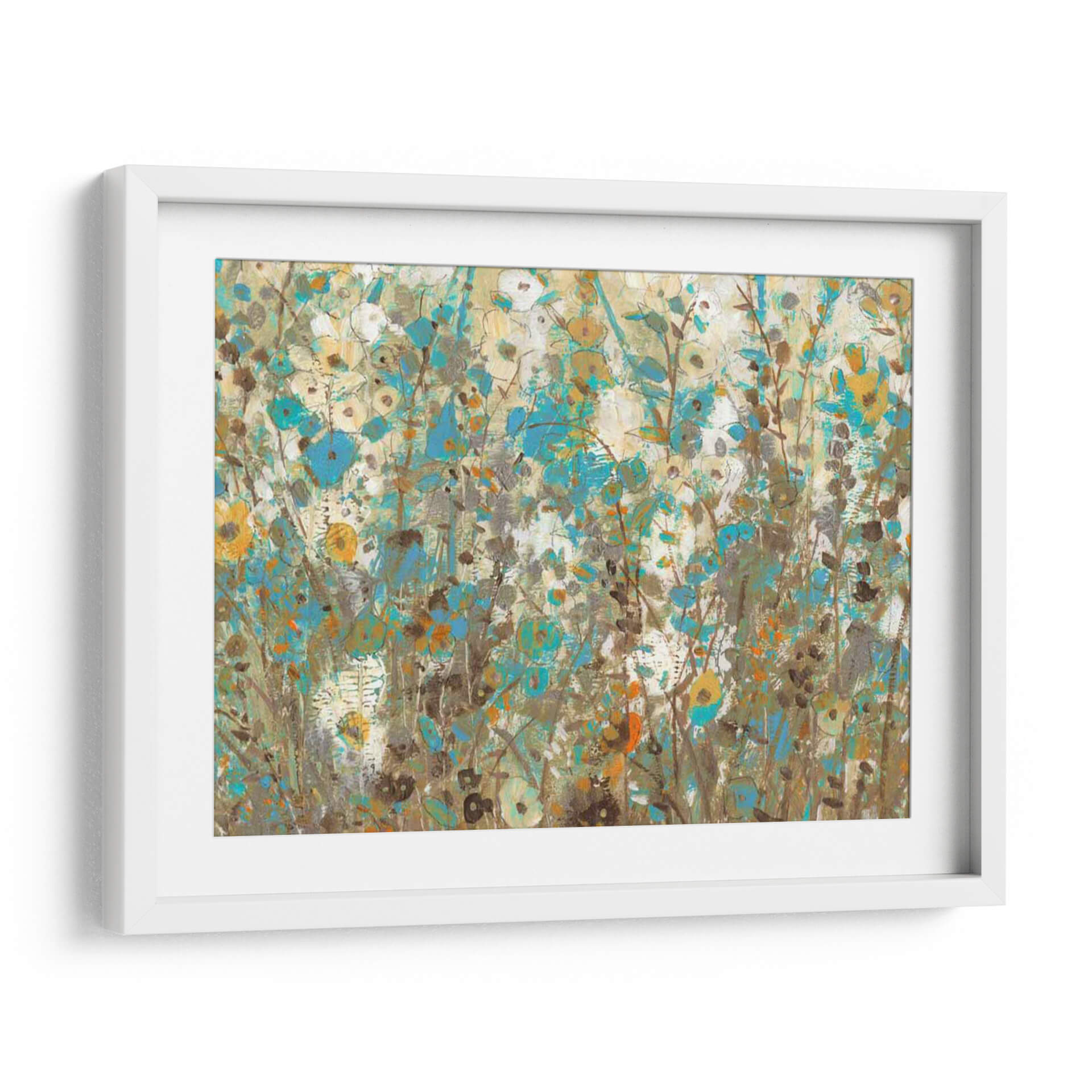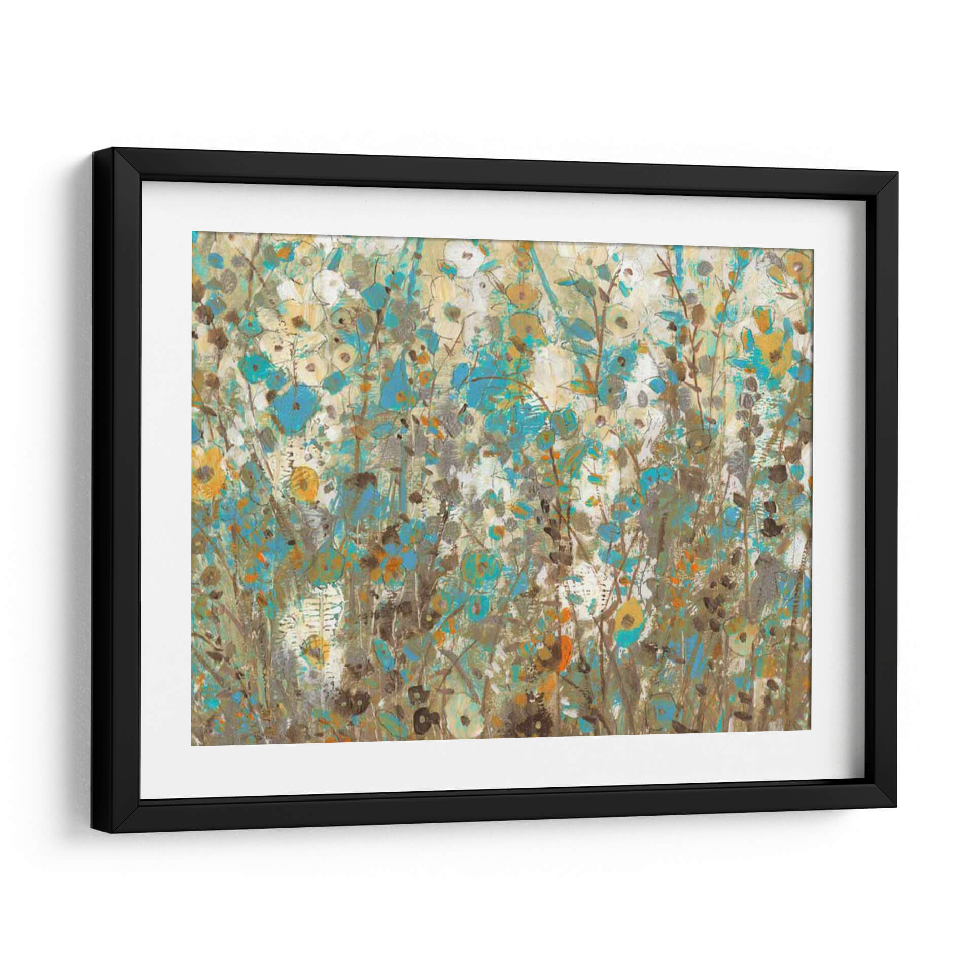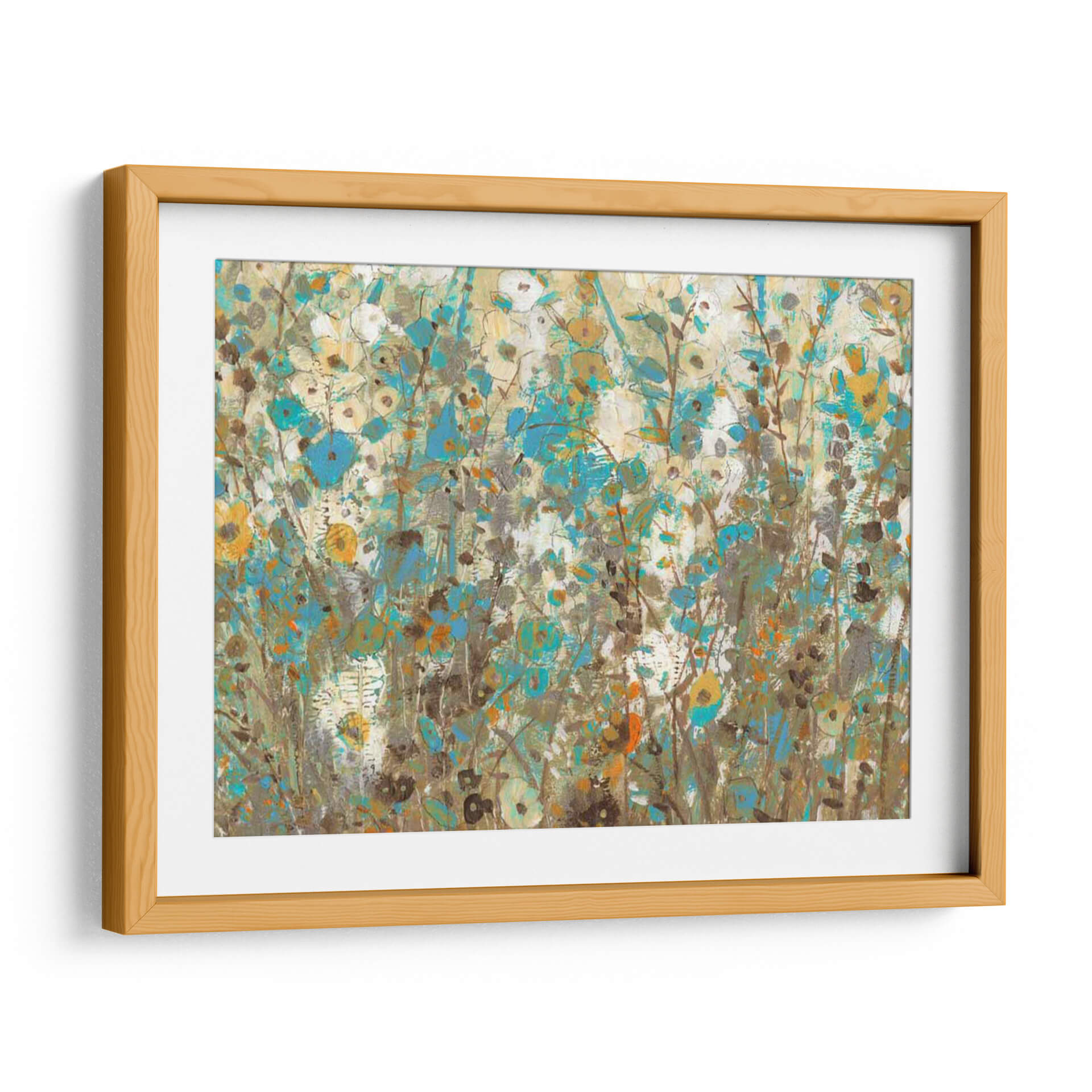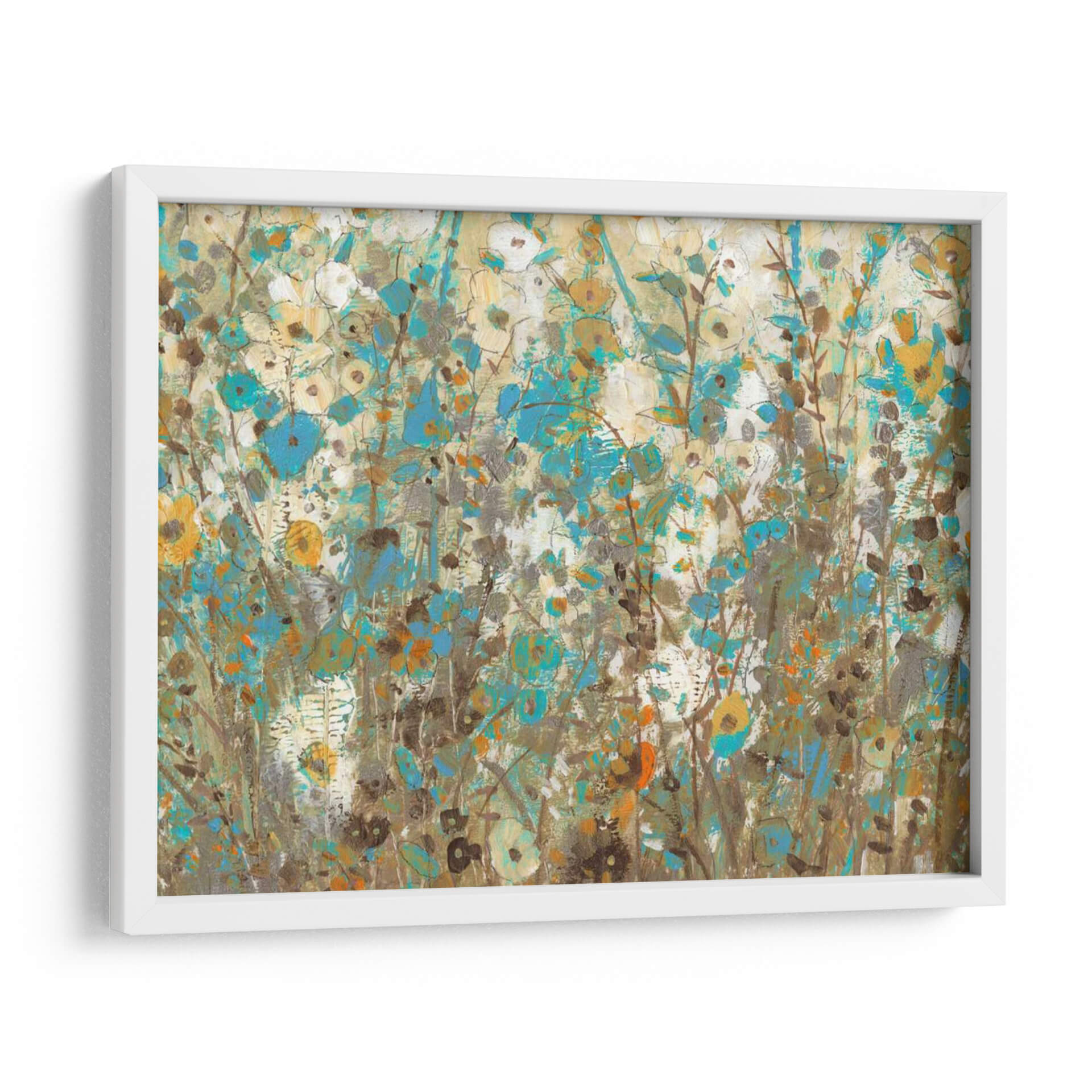 Sumérgete en la belleza etérea de "Vides Florecientes II", una obra de arte contemporáneo que captura la esencia vibrante de un jardín en plena eclosión. El artista Tim O'Toole nos presenta una composición rica en texturas y colores, donde pinceladas audaces de azul turquesa, dorado cálido y tonos tierra se entrelazan con delicadeza. Las formas florales, sugeridas con un estilo impresionista moderno, evocan una sensación de movimiento y vitalidad, como si el espectador pudiera casi sentir la brisa moviendo las plantas. El fondo, trabajado con capas de blanco y beige, aporta luminosidad y profundidad, permitiendo que los elementos botánicos destaquen con un encanto natural. Esta pieza es ideal para añadir un toque de naturaleza estilizada y serenidad a cualquier espacio, ya sea una sala de estar moderna, un dormitorio acogedor o una oficina que busque inspiración. Su paleta de colores versátil la convierte en un complemento perfecto para una variedad de estilos decorativos, desde el bohemio hasta el contemporáneo, aportando un aire fresco y orgánico. "Vides Florecientes II" es más que un cuadro decorativo; es una invitación a la contemplación y a la apreciación de la belleza efímera de la naturaleza, transformada en arte. Descubre la armonía y la frescura que esta obra puede aportar a tu hogar.