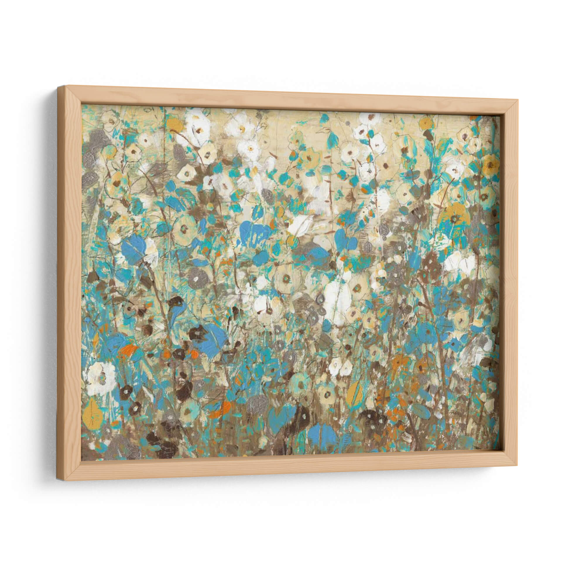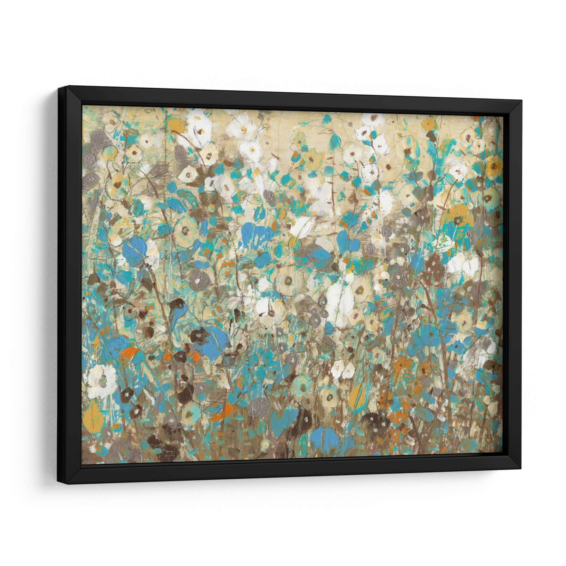 Sumérgete en la serenidad y la belleza natural de 'Vines Florecientes I', una cautivadora obra de arte de Tim O'Toole que transformará cualquier espacio. Este cuadro decorativo abstracto presenta un vibrante tapiz de flores silvestres en plena floración, ejecutado con una técnica que evoca la delicadeza de la acuarela y la textura de un lienzo pintado al óleo. La paleta de colores es una sinfonía de azules turquesas profundos, blancos puros, ocres terrosos y sutiles toques de naranja y gris, creando una atmósfera de calma y optimismo. Las pinceladas sueltas y expresivas dan vida a las formas florales y a la vegetación, invitando a la contemplación y aportando una sensación de movimiento orgánico. Ideal para añadir un toque de color y sofisticación a salones modernos, dormitorios acogedores u oficinas que buscan un ambiente inspirador. 'Vines Florecientes I' no es solo una pieza decorativa; es una ventana a un jardín imaginario, una invitación a conectar con la naturaleza y a encontrar la paz en los detalles. Haz que tu hogar o lugar de trabajo respire vida y estilo con este impresionante cuadro abstracto floral.