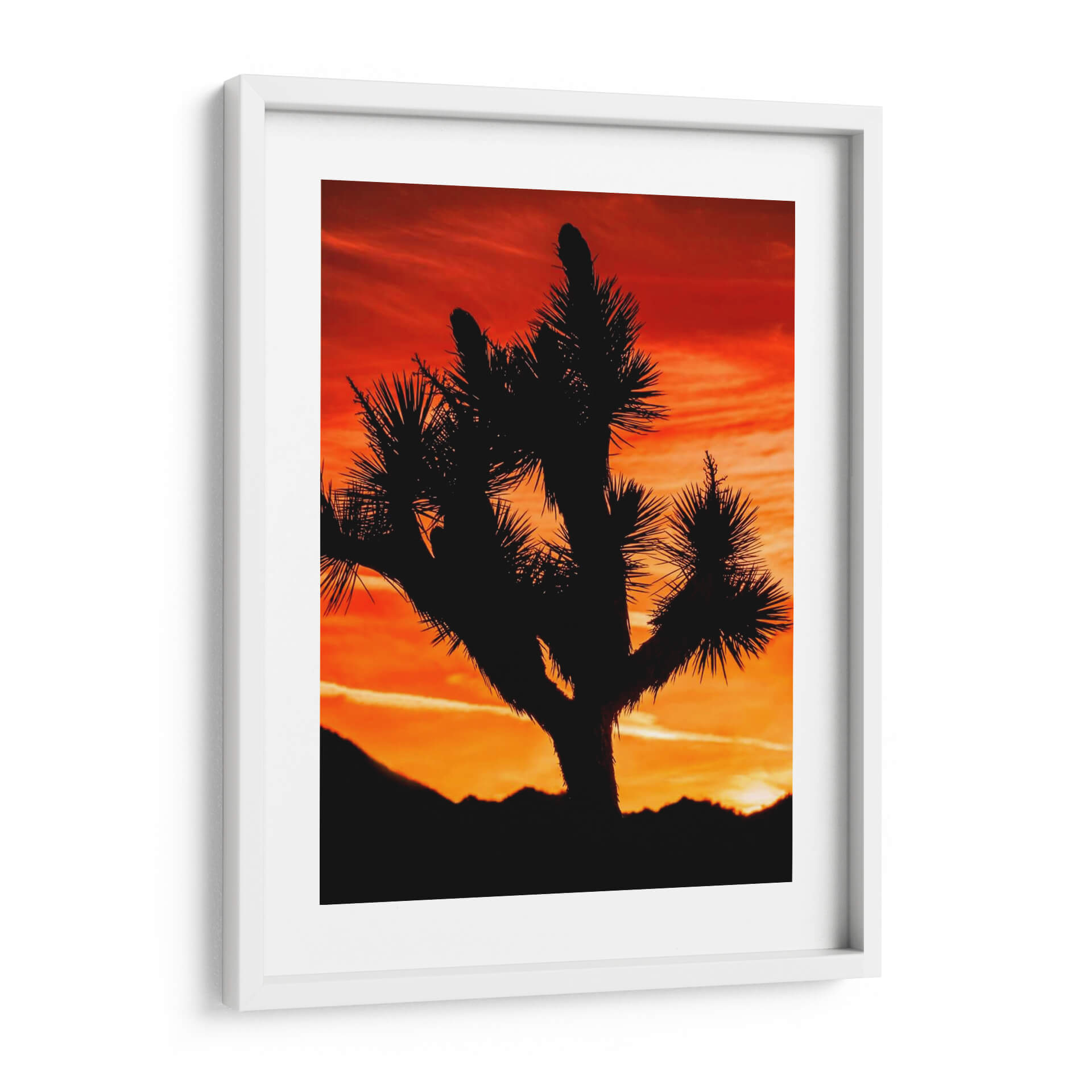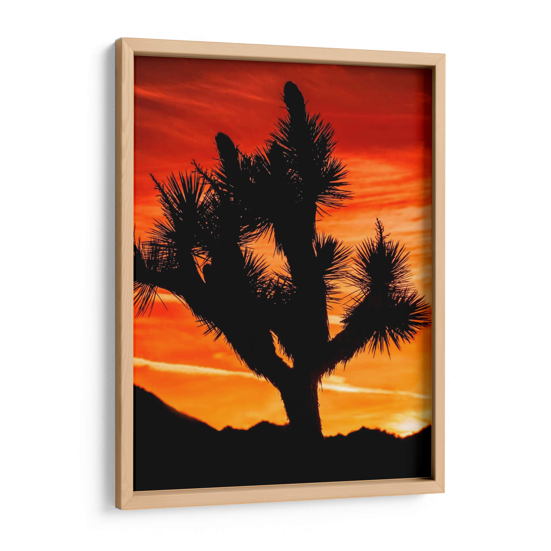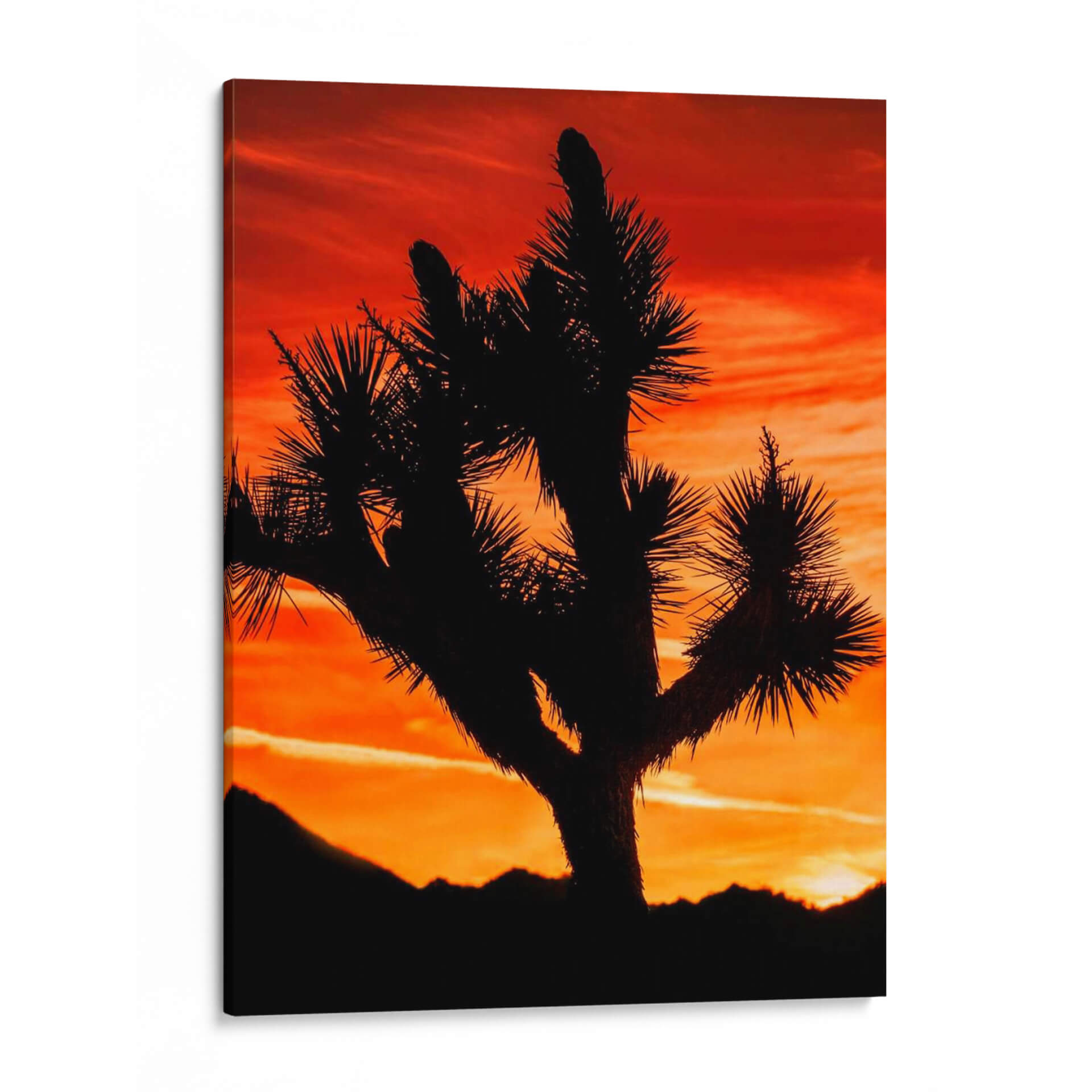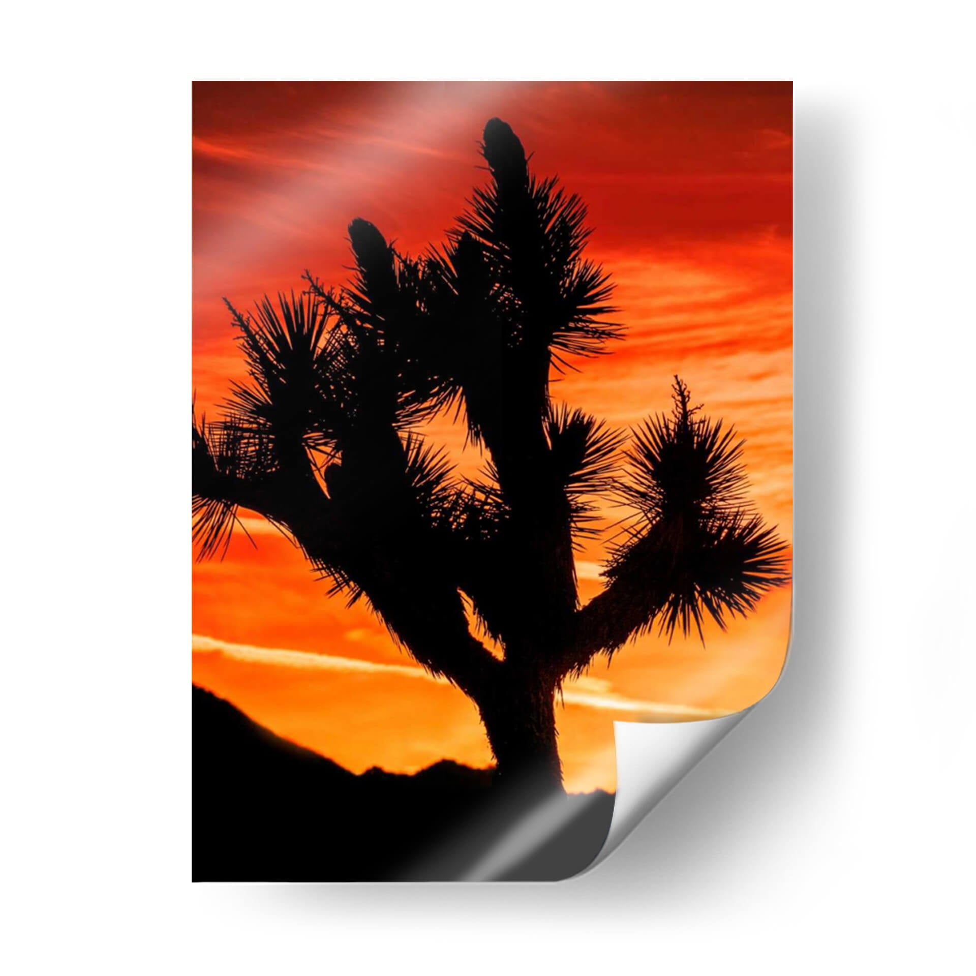 Sumérgete en la majestuosidad del desierto con "Vistas De Joshua Tree VI", una obra de arte que captura la silueta icónica de un árbol de Joshua contra un atardecer ardiente. Rachel Perry ha creado una pieza que evoca la serenidad y la fuerza indómita de la naturaleza. Los vibrantes tonos naranjas y rojos del cielo, teñidos con suaves pinceladas de amarillo y magenta, crean un telón de fondo dramático y cautivador. La silueta oscura y detallada del árbol de Joshua, con sus ramas retorcidas y sus espinosas hojas, se recorta contra este lienzo celestial, ofreciendo un contraste impactante y una sensación de misterio. Las siluetas de las montañas en la distancia añaden profundidad y perspectiva, completando una composición que es a la vez poderosa y evocadora. Este cuadro decorativo es perfecto para quienes buscan añadir un toque de drama natural y calma a su hogar u oficina. Ideal para salas de estar, dormitorios o incluso espacios de trabajo que necesiten una conexión con la belleza salvaje. La atmósfera de paz y la paleta de colores cálidos invitan a la contemplación y la tranquilidad, convirtiendo cualquier pared en una ventana a un paisaje desértico inolvidable. Integra esta pieza única en tu decoración para crear un ambiente acogedor y lleno de carácter.