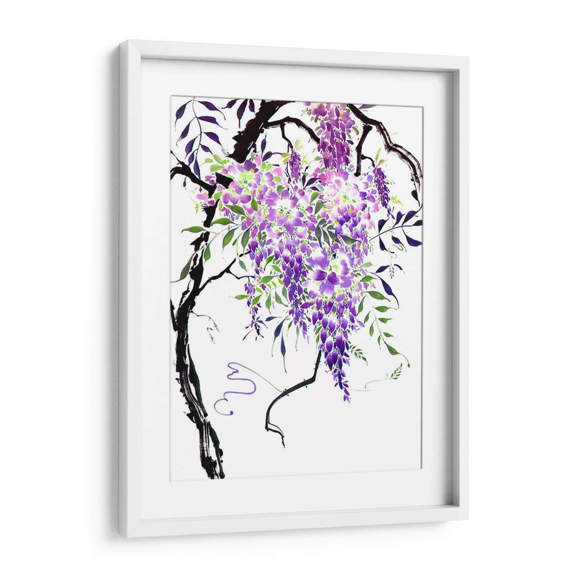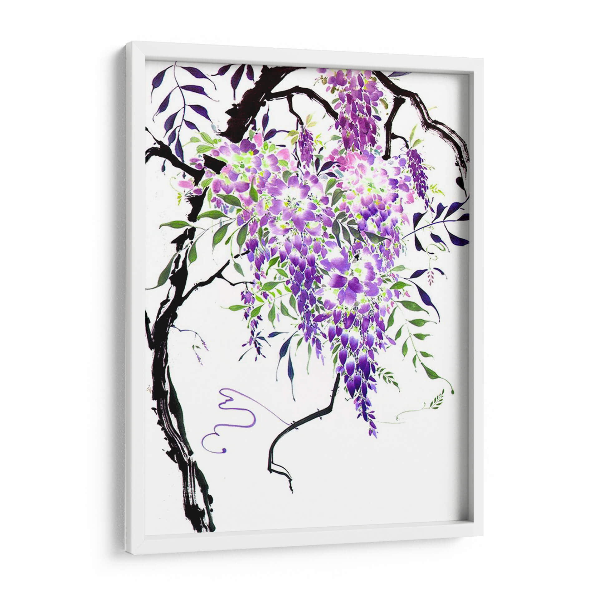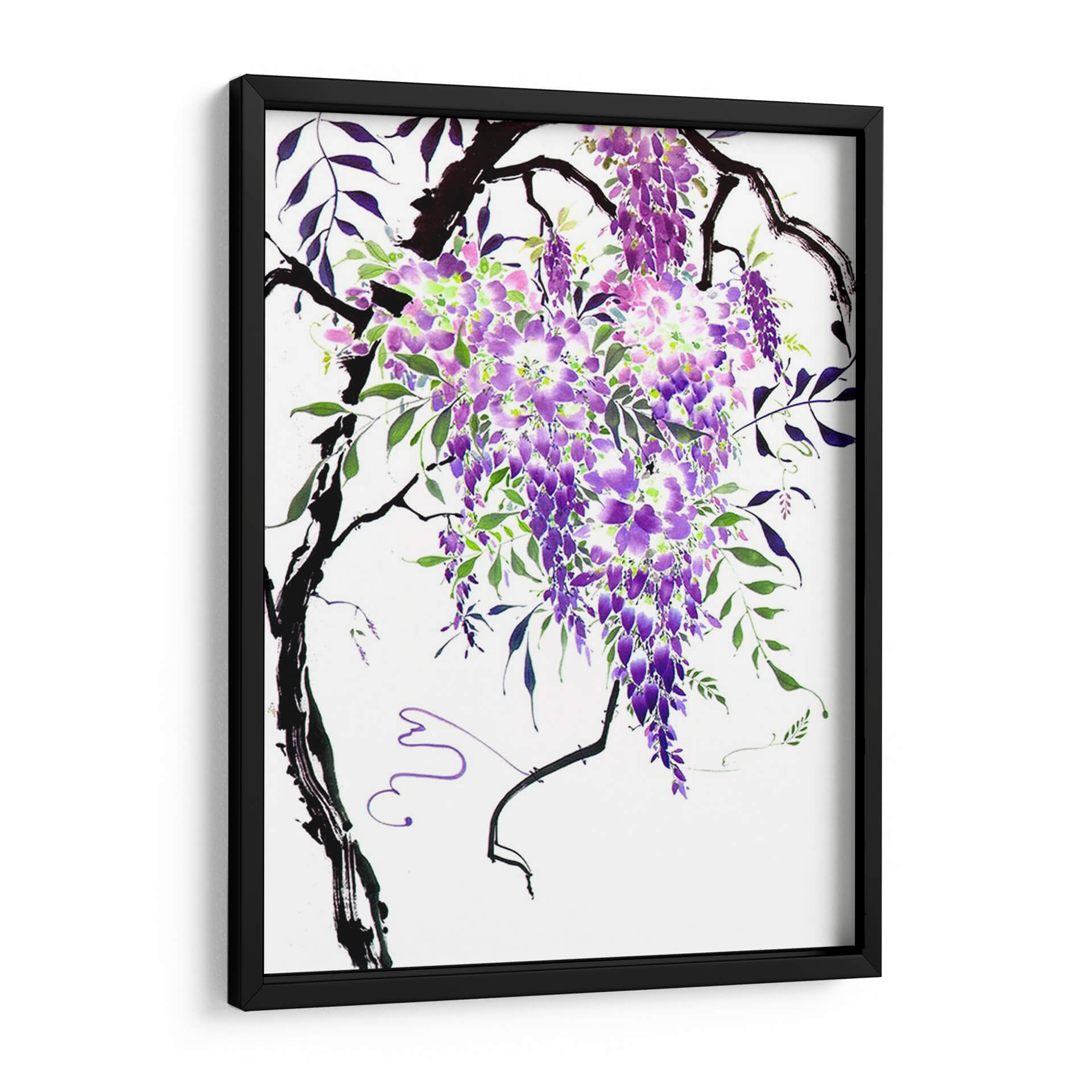 Sumérgete en la serena belleza de "Wisteria Garden I", una obra de arte exquisita que captura la delicadeza de la naturaleza con trazos evocadores. Este cuadro decorativo presenta una cascada de glicinas moradas y lilas vibrantes, suspendidas de ramas oscuras y estilizadas que contrastan con un fondo limpio y luminoso. La técnica de acuarela o tinta evoca un estilo oriental, fusionando la delicadeza floral con la fuerza expresiva de la caligrafía en las ramas. Cada pétalo y hoja está pintado con una fluidez que transmite movimiento y vida, invitando a la contemplación y la paz. La paleta de colores, dominada por morados intensos, rosas suaves y verdes frescos, aporta una sensación de frescura y sofisticación. Ideal para añadir un toque de color y serenidad a tu sala de estar, dormitorio o estudio, este cuadro transformará cualquier espacio en un remanso de tranquilidad y elegancia natural. Es la pieza perfecta para aquellos que buscan una conexión con la belleza efímera de las flores y desean infundir sus hogares con un espíritu calmado y artístico. Transforma tu pared en una ventana a un jardín encantado.