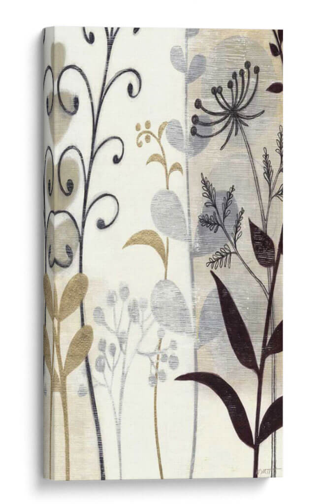 Sumérgete en la serenidad botánica de 'Zephyr I', una obra de arte contemporáneo que captura la delicadeza de la naturaleza con un estilo etéreo y moderno. Este cuadro decorativo presenta un delicado arreglo de elementos florales y botánicos estilizados, con tallos esbeltos y formas orgánicas que se entrelazan suavemente. La paleta de colores se centra en tonos neutros y terrosos, como cremas, beiges, grises suaves y toques sutiles de dorado y marrón oscuro, creando una atmósfera de calma y sofisticación. El contraste entre las líneas finas y oscuras de algunas ramas y las formas más suaves y translúcidas de otras aporta profundidad y dinamismo a la composición. Ideal para espacios que buscan un toque de elegancia natural y tranquilidad, este cuadro es perfecto para salones, dormitorios o estudios que anhelan una conexión serena con el exterior. 'Zephyr I' no es solo una decoración, es una invitación a la contemplación y un refugio visual en tu hogar u oficina, aportando una sensación de frescura y armonía. Su diseño versátil lo convierte en un punto focal sutil pero impactante, capaz de complementar una variedad de estilos decorativos, desde el minimalista hasta el bohemio.