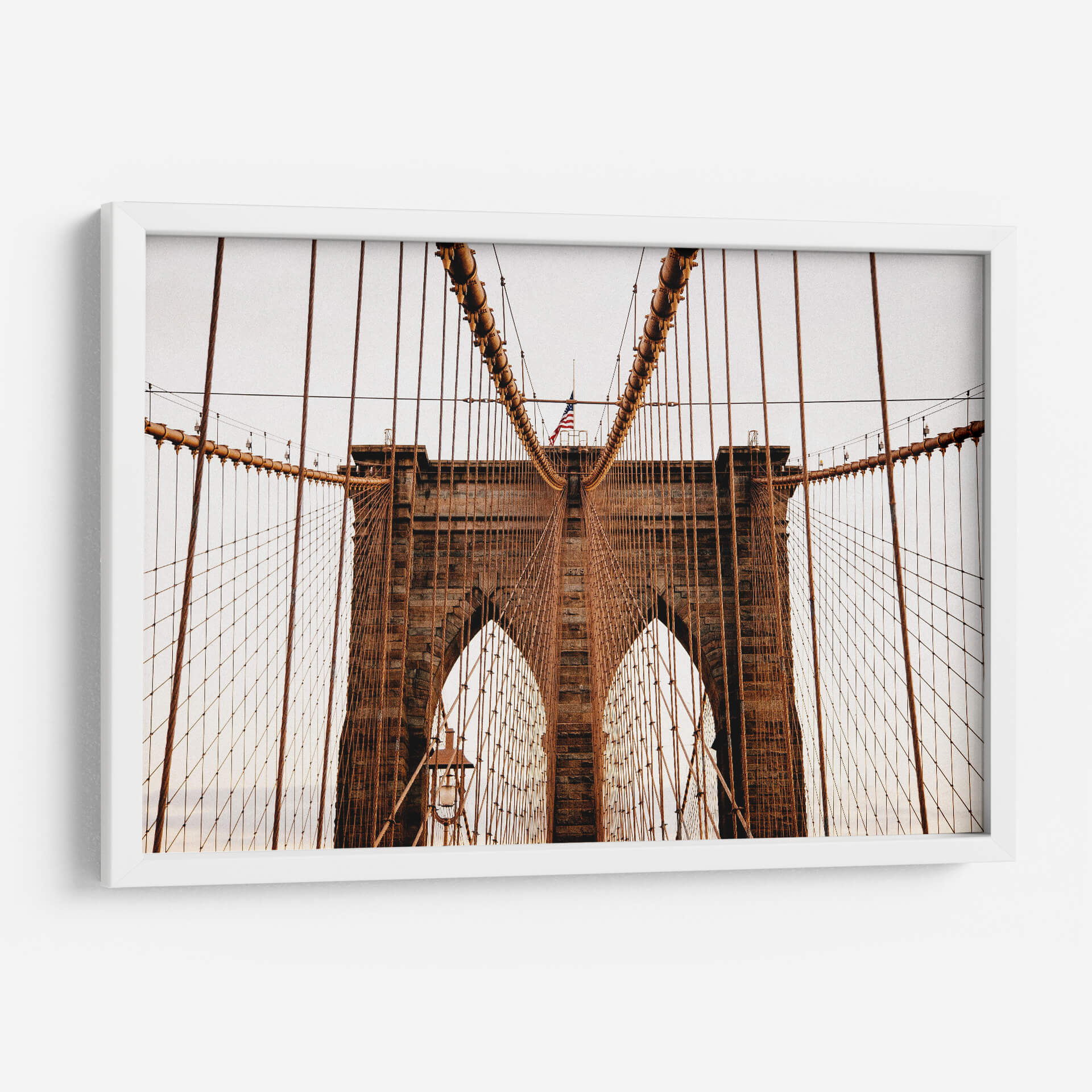 Captura la majestuosidad icónica de Nueva York con este impresionante lienzo del Puente de Brooklyn. Esta obra de arte, centrada en la imponente arquitectura gótica del puente, te transportará directamente a las vibrantes calles de la ciudad. La paleta de colores, dominada por tonos tierra y ocres, evoca una sensación de calidez y robustez, contrastando sutilmente con el cielo grisáceo de fondo. La composición fotográfica, tomada desde un ángulo bajo que enfatiza la escala monumental de la estructura, está reforzada por las líneas convergentes de los cables de suspensión que guían la mirada hacia el centro. Se aprecia una bandera estadounidense ondeando sutilmente, añadiendo un toque patriótico y de identidad nacional. El estilo fotográfico, con un ligero enfoque en la textura de la piedra y el metal, resalta la ingeniería y la historia de esta maravilla arquitectónica. Es la pieza perfecta para añadir un toque de carácter urbano y sofisticación a tu sala de estar, estudio u oficina, creando un punto focal que inspira y evoca la energía de la Gran Manzana.