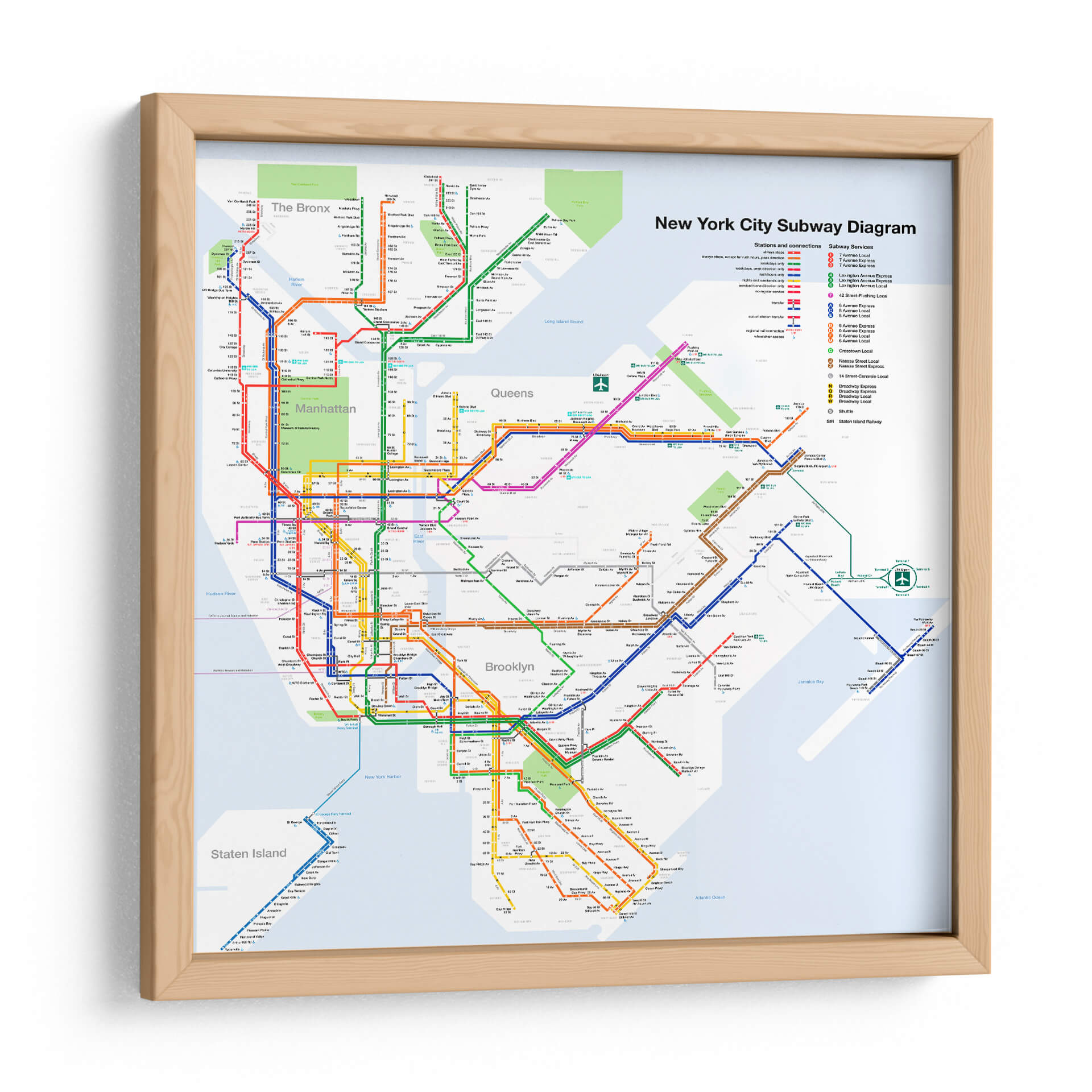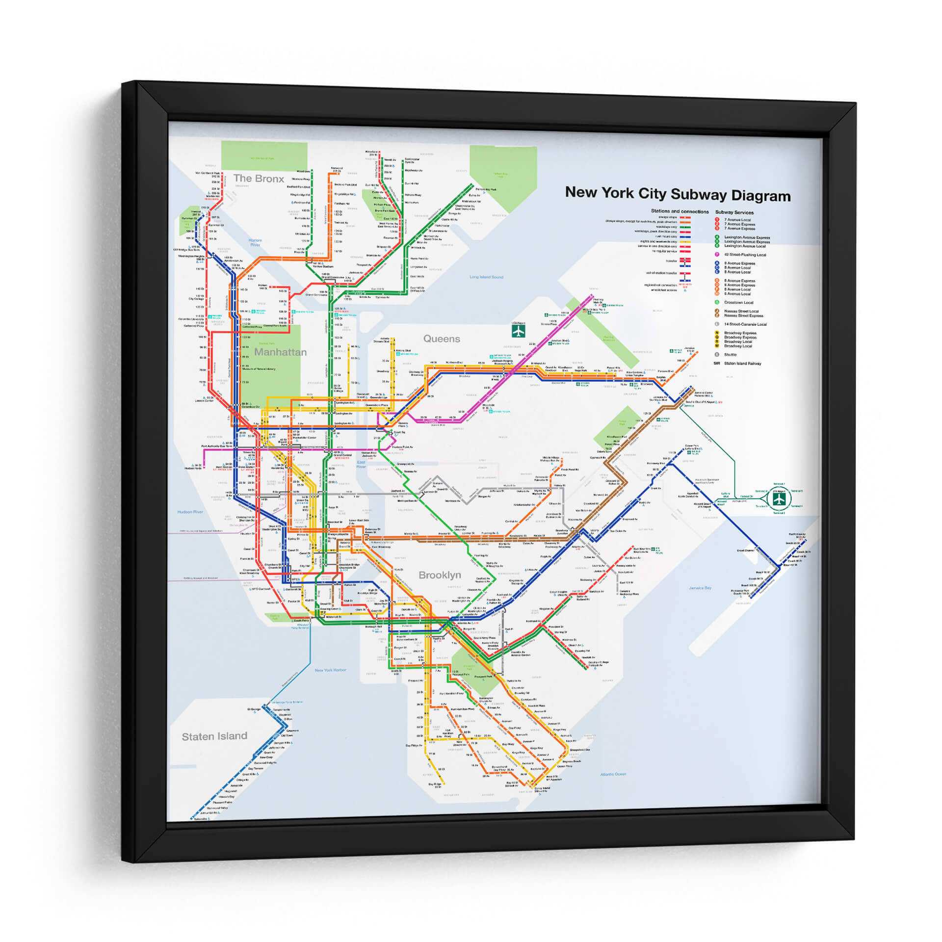 Sumérgete en la vibrante complejidad de la ciudad de Nueva York con este detallado cuadro decorativo del mapa del metro. Cada línea de color representa una arteria vital de la metrópoli, entrelazándose a través de los icónicos distritos de Manhattan, Brooklyn, Queens, El Bronx y Staten Island. La obra captura la esencia del movimiento y la conectividad, esencial para la vida urbana. Con una paleta de colores vivos y una composición clara y organizada, este mapa de metro es más que una simple representación geográfica; es una pieza de arte moderno que evoca el dinamismo, la energía y el espíritu indomable de una de las ciudades más fascinantes del mundo. Ideal para añadir un toque de carácter urbano y sofisticación a tu hogar u oficina, este cuadro decorativo es perfecto para amantes de la arquitectura, viajeros empedernidos o cualquiera que admire el ingenio del diseño funcional. Transforma tu espacio con este icónico diagrama que celebra la intrincada red que une a millones.