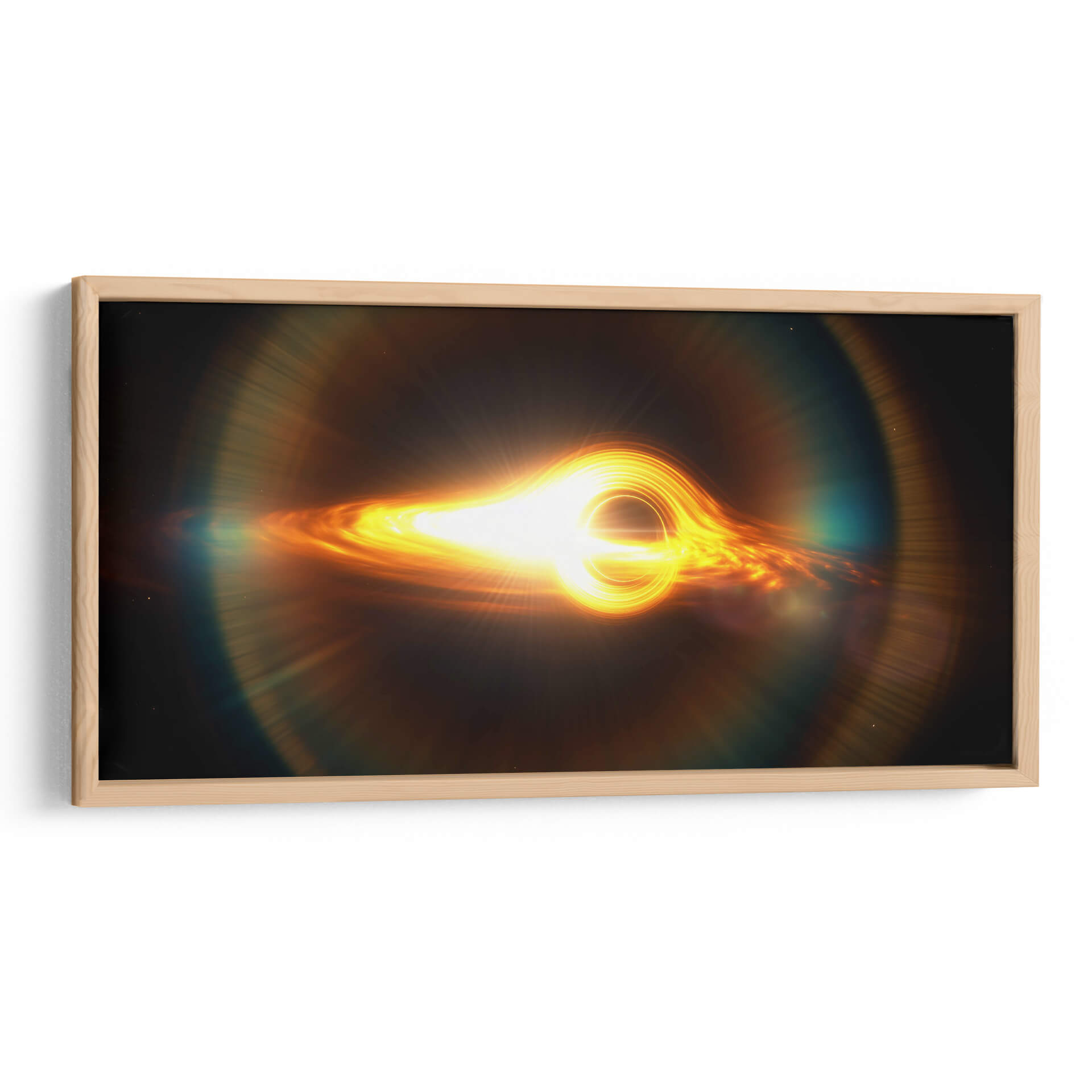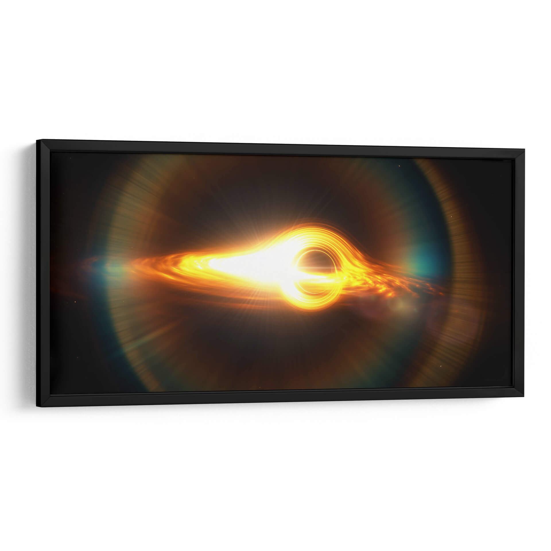Sumérgete en la majestuosidad del cosmos con nuestro impresionante cuadro decorativo 'Agujero Negro con Disco de Acreción'. Esta obra de arte digital captura la fascinante energía y el misterio de uno de los fenómenos más enigmáticos del universo. La pieza presenta un vibrante disco de acreción, un torbellino de gas y polvo incandescente, orbitando alrededor de un punto de oscuridad absoluta. Los intensos tonos dorados, naranjas y amarillos dominan la paleta, creando un contraste dramático con el fondo oscuro, evocando una sensación de poder cósmico y maravilla. La luz brillante que emana del disco de acreción parece distorsionarse, sugiriendo las fuerzas extremas en juego. El estilo abstracto y la composición dinámica hacen de este cuadro una pieza central ideal para cualquier espacio moderno, desde salas de estar y estudios hasta oficinas o áreas de entretenimiento. "Agujero Negro con Disco de Acreción" no es solo una decoración; es una invitación a contemplar la inmensidad del espacio y la belleza de las leyes físicas que lo rigen. Añade un toque de ciencia y arte a tu hogar y deja que esta obra inspire conversaciones y admiración.