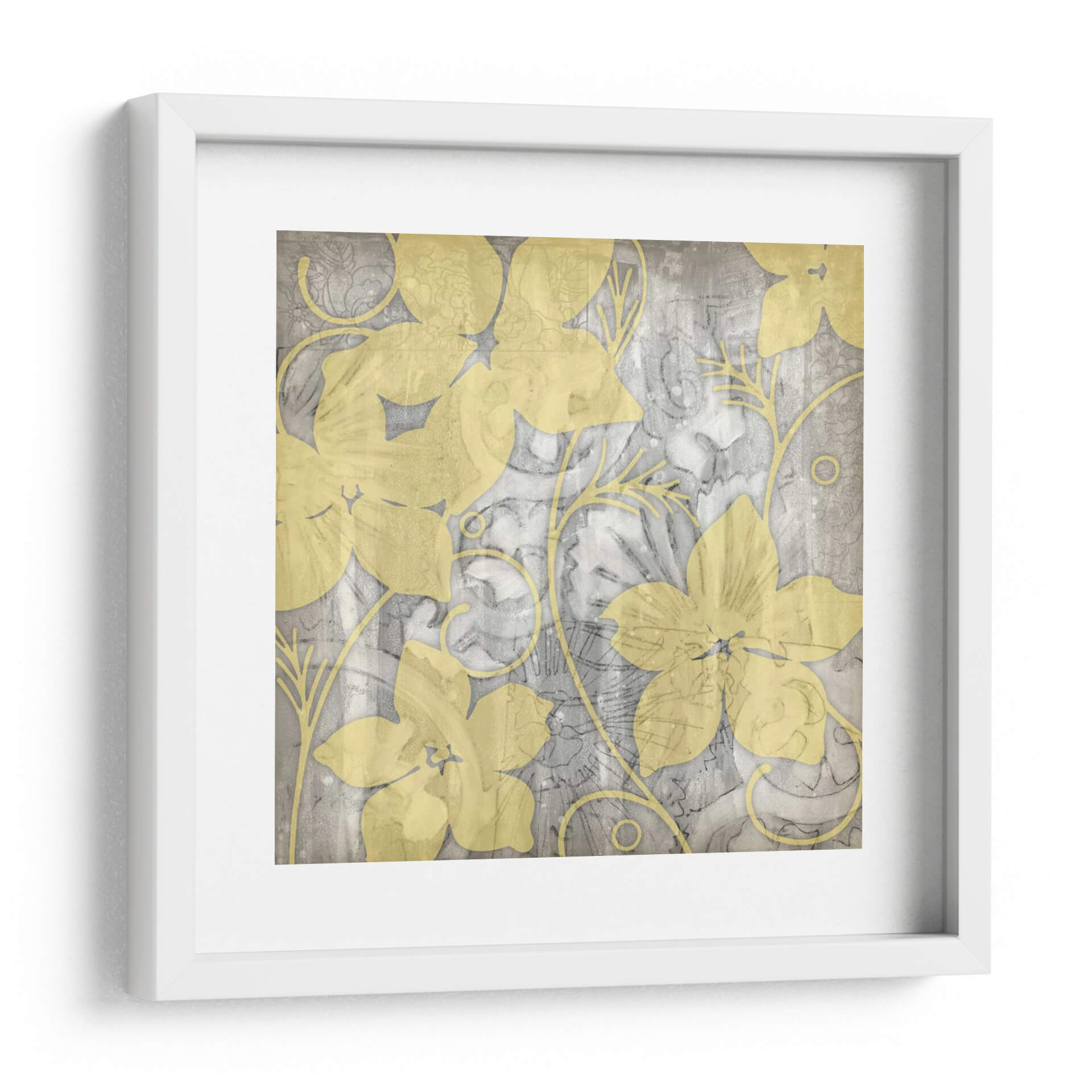Descubre la serenidad y el encanto floral con "Amarillo Y Gris I", una obra de arte contemporáneo de Jennifer Goldberger. Este cuadro decorativo presenta una delicada danza de formas botánicas en un vibrante tono amarillo sobre un fondo texturizado en grises y plateados. Las formas de flores y enredaderas, ejecutadas con un estilo semi-abstracto, evocan una sensación de primavera perpetua y elegancia sutil. La composición, con sus superposiciones y variaciones de textura, añade profundidad y un toque artístico único. Ideal para quienes buscan infundir calma y un toque de color sofisticado en sus espacios, este cuadro es perfecto para salones modernos, dormitorios acogedores o incluso oficinas que anhelan un soplo de naturaleza estilizada. Su paleta de colores, que combina la calidez del amarillo con la neutralidad del gris, lo convierte en una pieza versátil capaz de complementar una amplia gama de decoraciones interiores. Añade una dimensión de arte contemporáneo y serenidad a tu hogar con esta pieza inspiradora que combina lo orgánico con lo abstracto.